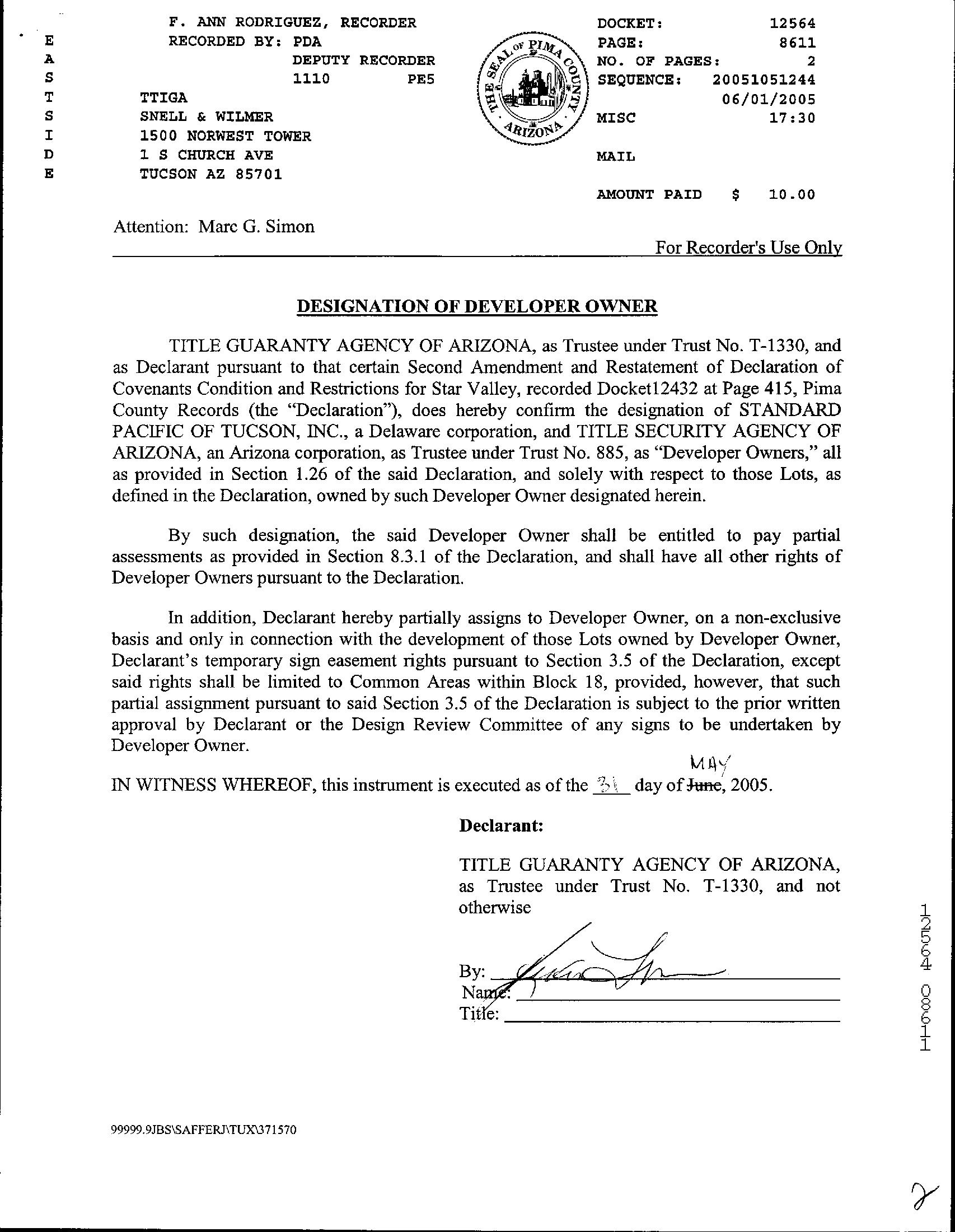Mailing Address : 6964 S Spring Walk Dr, Tucson AZ 85757-6909 R165