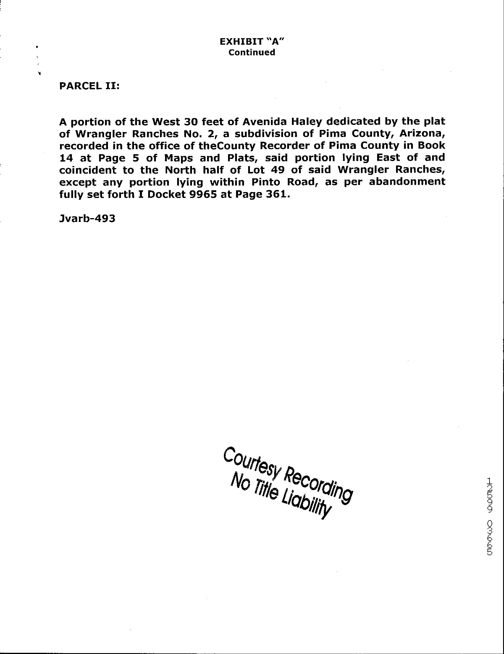 Legal Description : Wrangler Ranches No 2 Lot 49 Exc S306.15' & That Ptn Of 30' Aband Rd Avenida