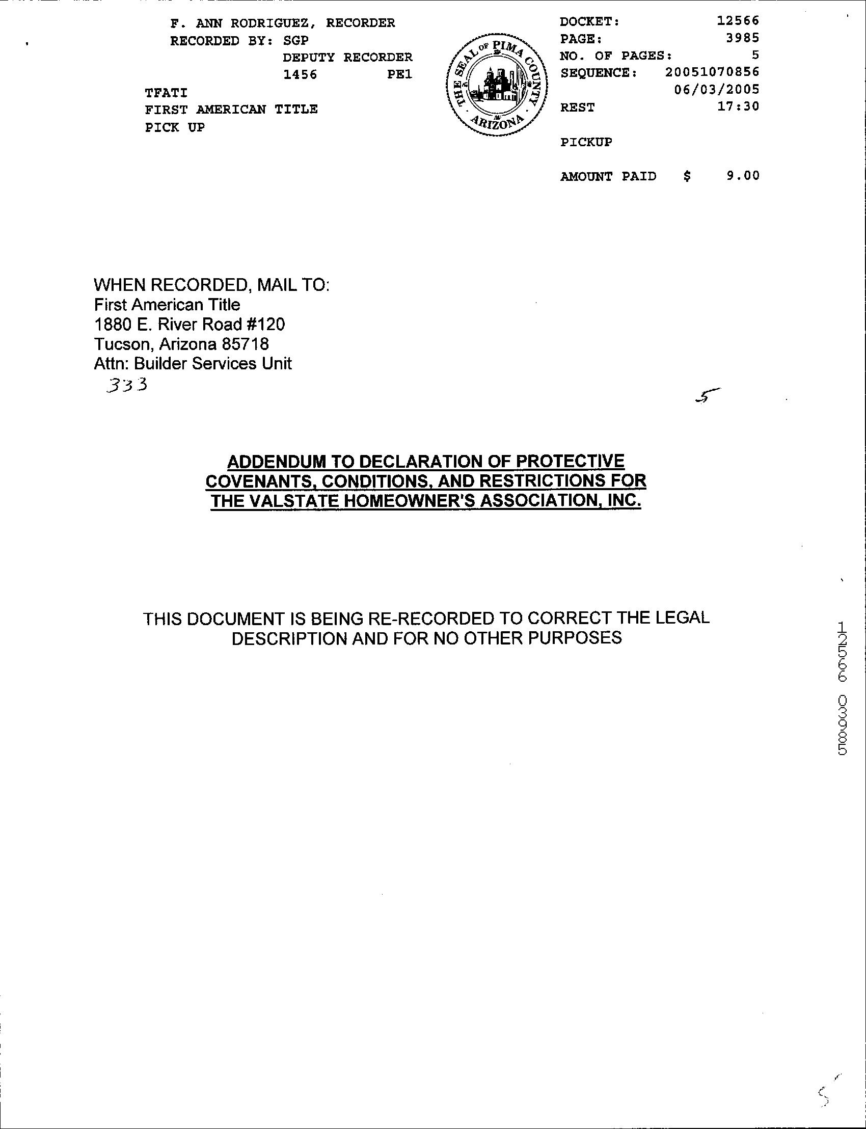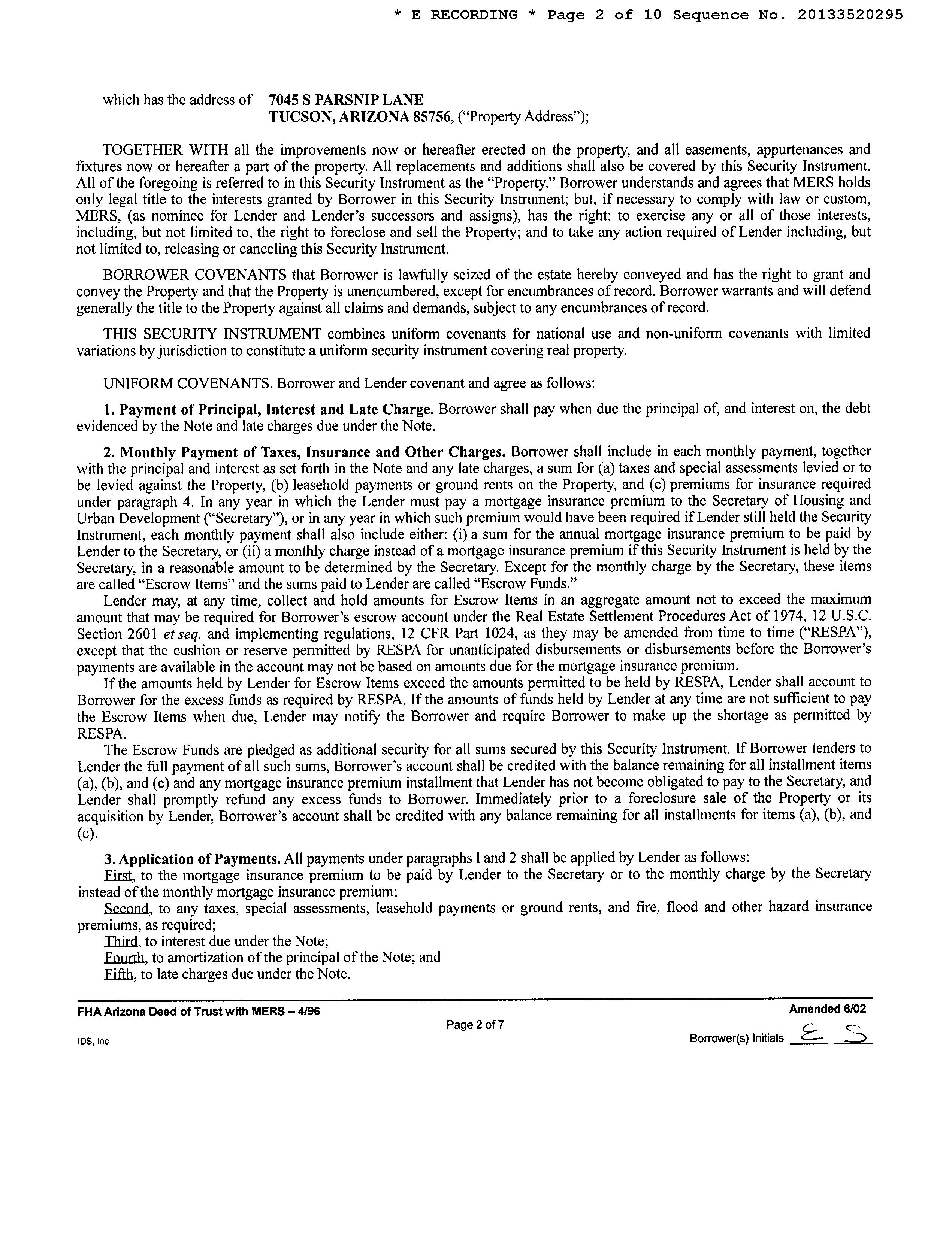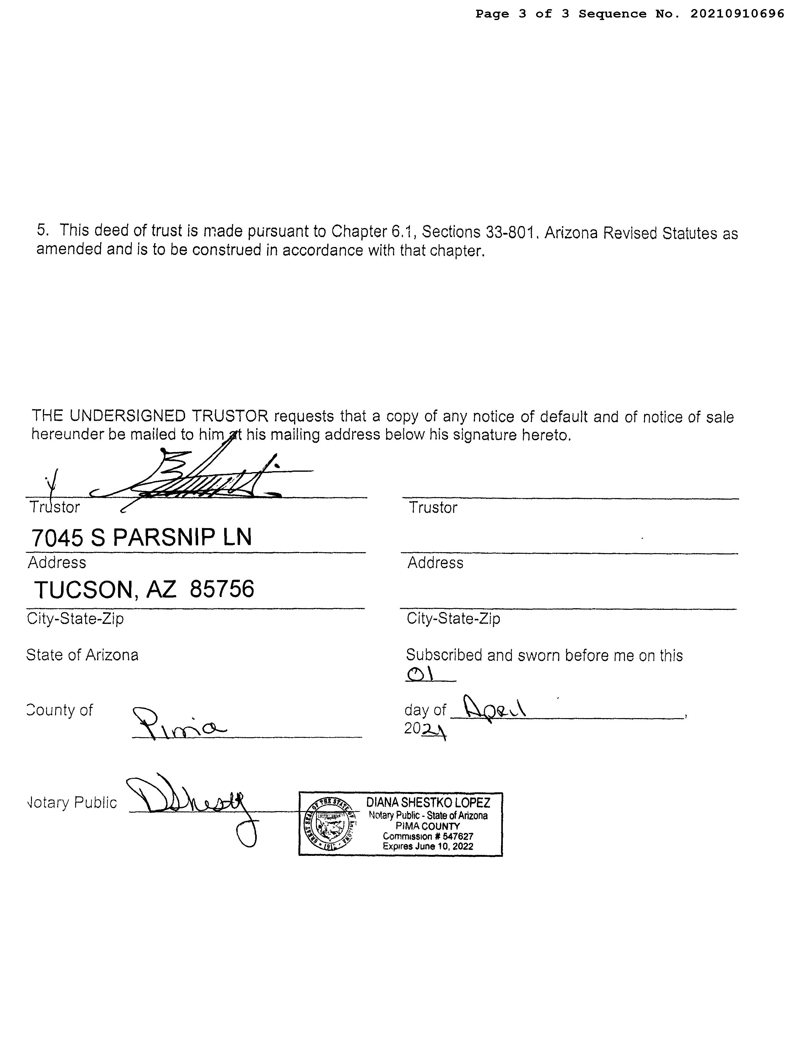 Mailing Address : 7045 S Parsnip Ln, Tucson AZ 85756-5122 C026