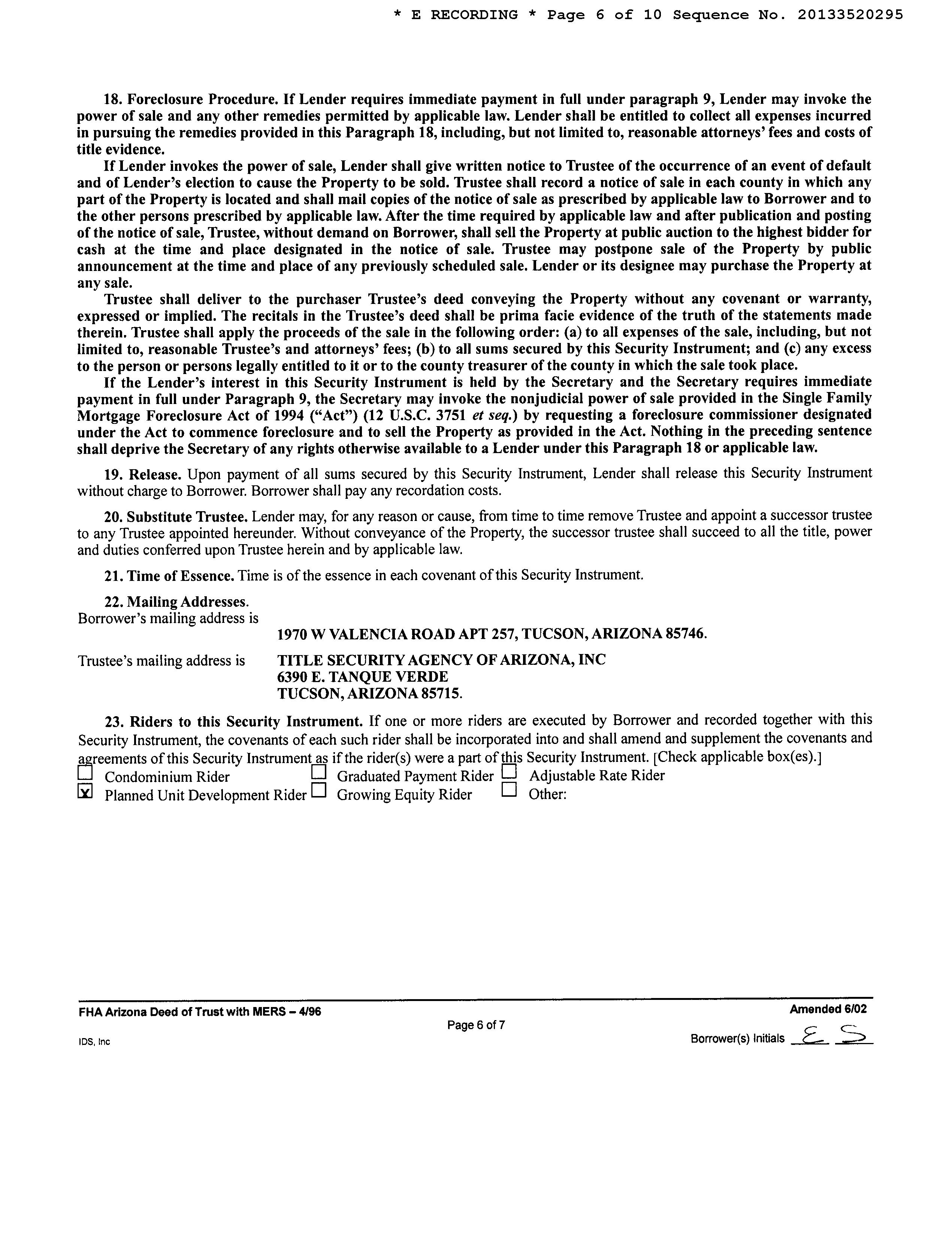 #17 7041 S Ladys Thumb Ln Tucson Az 85756 Owner Name: Armm Asset Co 1