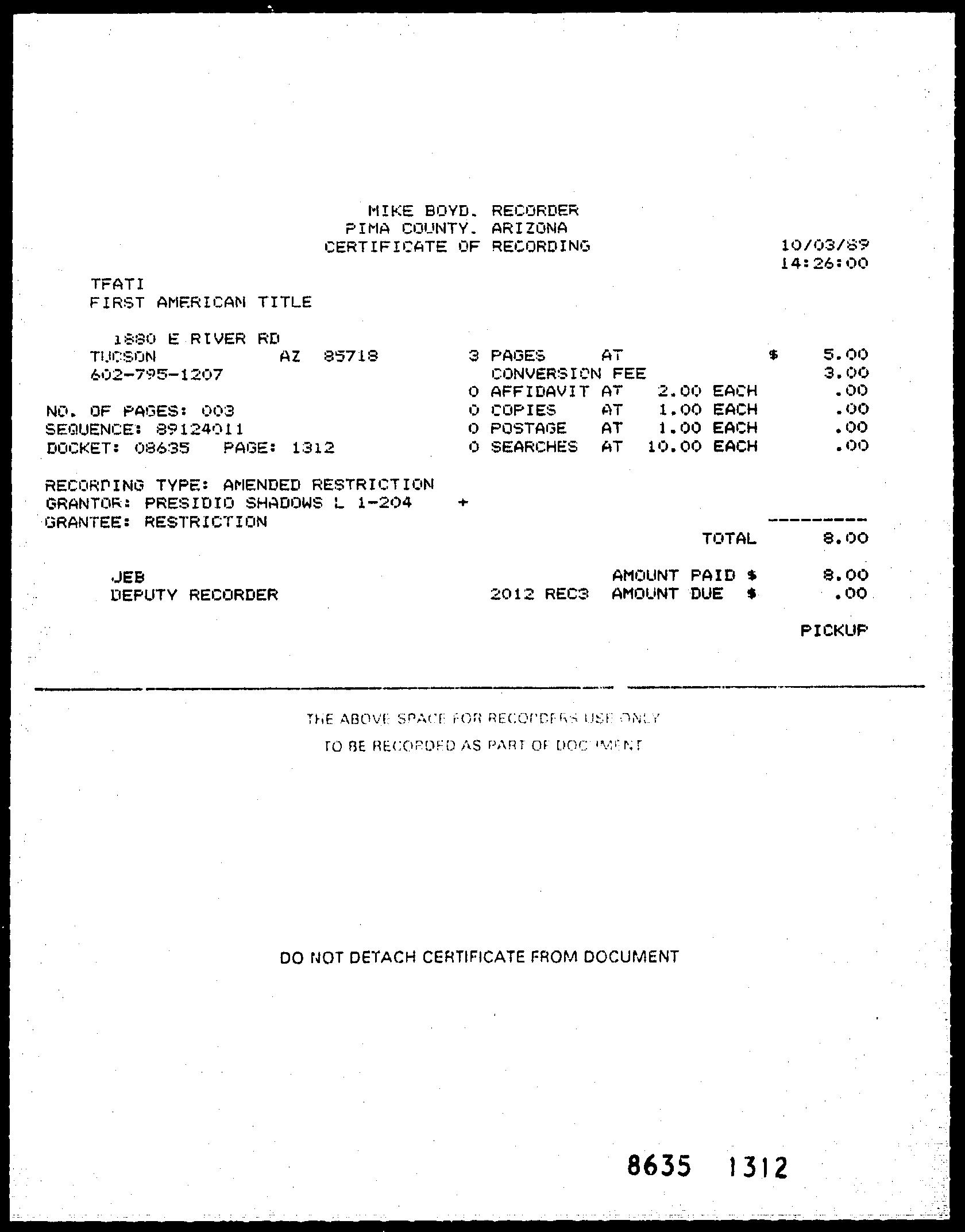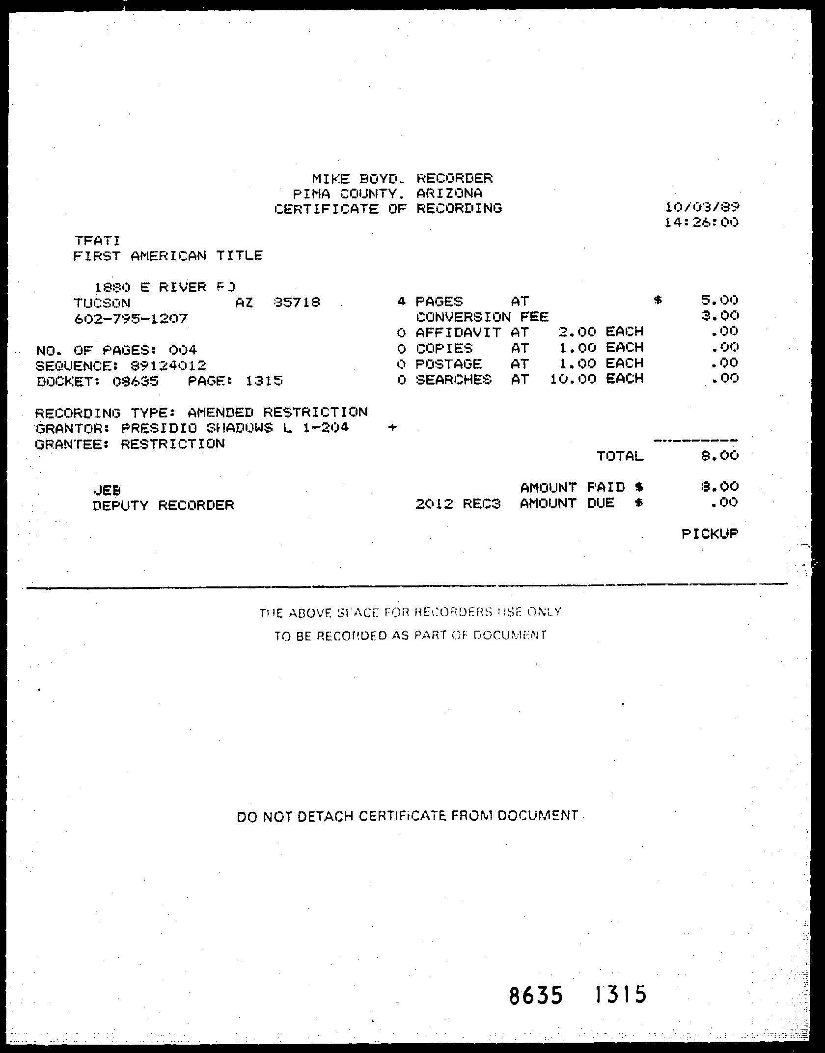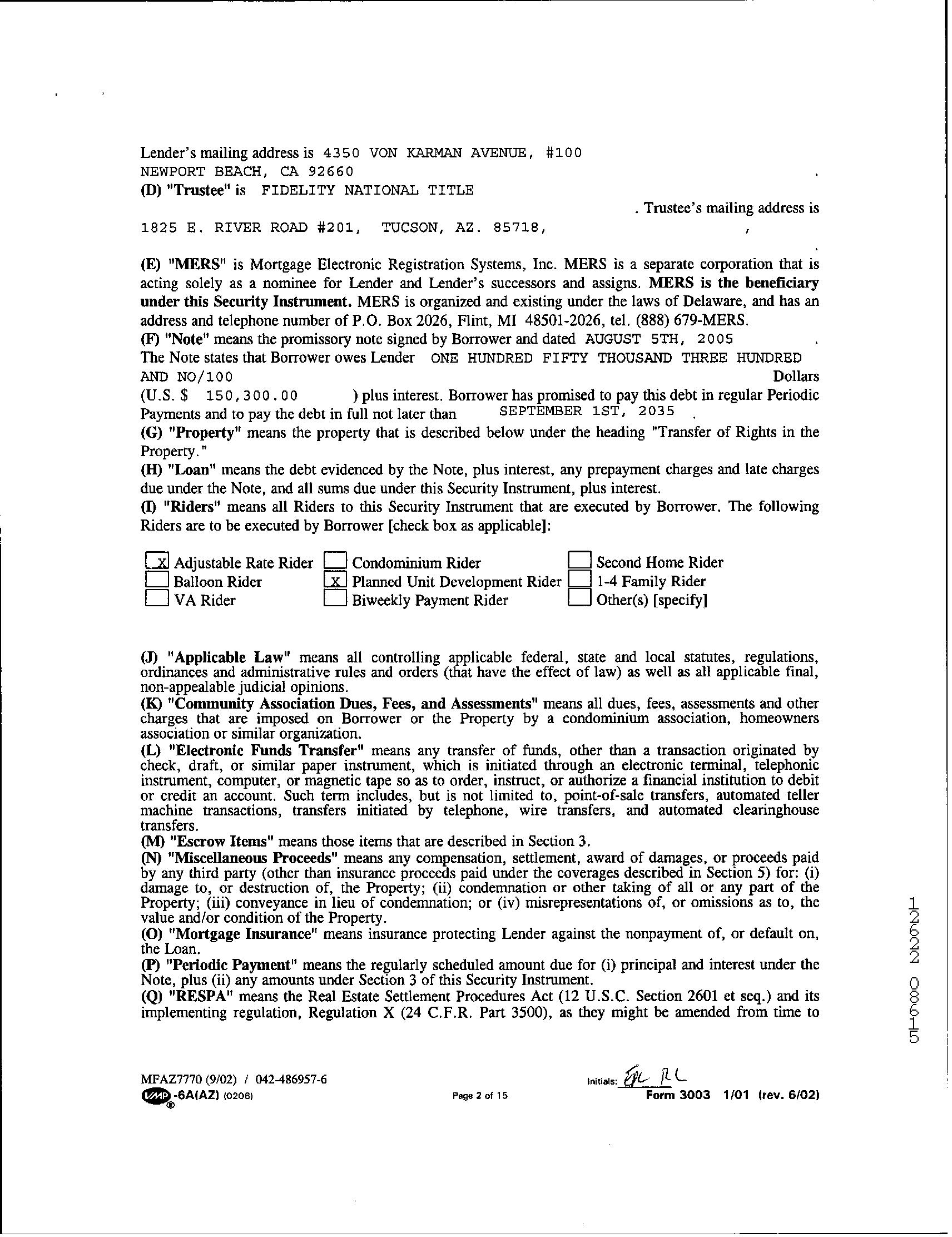 Mailing Address : 7065 S Camino Triste, Tucson AZ 85746-7985 C006