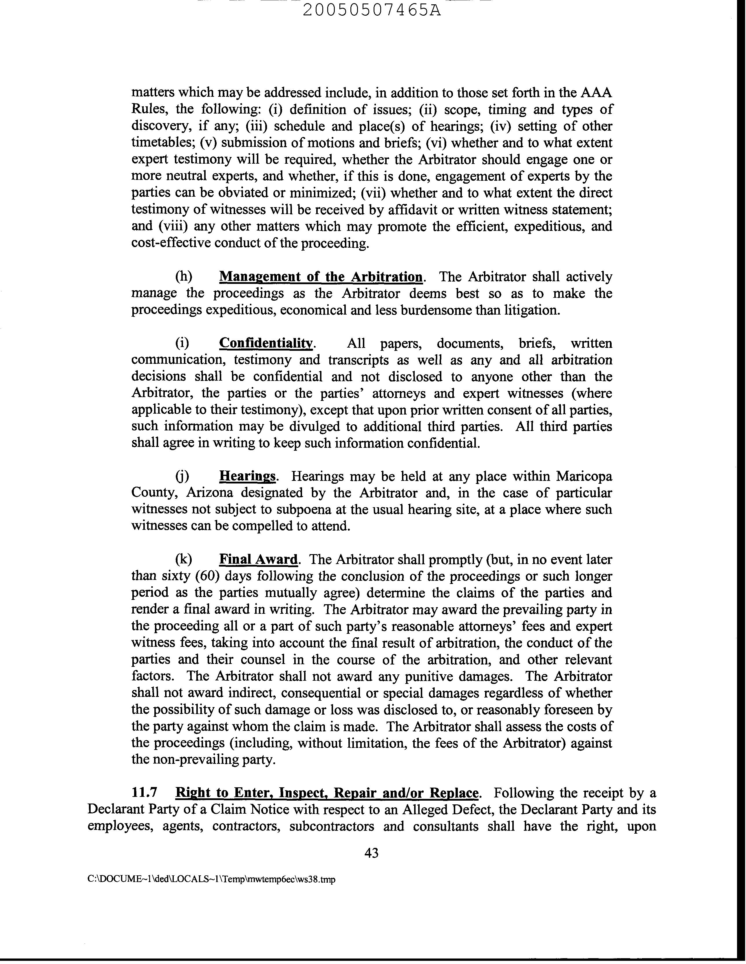 MARICOPA, AZ Document:RES 2005.507465A Page:43 of 63 Printed on:3/7/2024 12:53 PM Branch :FC0 User :JSTI