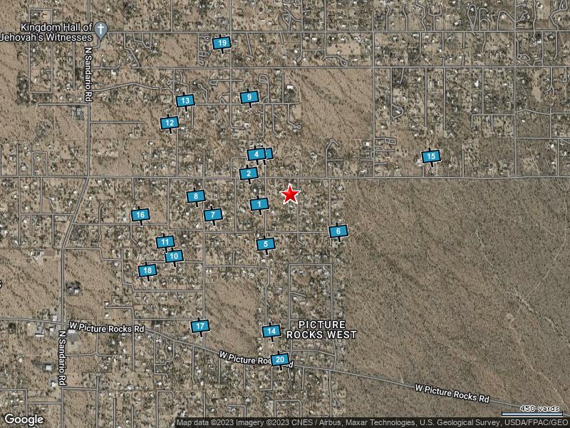 12 7265 N Aloe Green Dr 282,000 46,487 03/07/2023 55,757 1990 0.49 GR-1 13 7345 N Diamond Hills Ln 81,551 49,867 12/01/2022 89,734 1974 0.49 GR-1 14 11230 W Picture Rocks Rd 240,000 63,153 01/20/2023 92,347 1994 0.49 GR-1 15 10850 W Ina Rd 101,808 77,307 12/20/2022 35,284 1984 0.51 GR-1 16 11585 W Dusty Rocks Ln 255,000 51,848 07/29/2022 43,560 1995 0.54 GR-1 17 6745 N Pelto Path 235,000 71,333 02/17/2023 43,996 1995 0.57 GR-1 18 11546 W Royalty Dr 154,000 41,066 02/06/2023 43,996 1994 0.58 GR-1 19 7445 N Gemstone Rd 233,421 28,727 06/06/2022 43,996 1997 0.58 GR-1 20 11145 W Picture Rocks Rd 250,000 63,757 03/24/2023 90,169 1981 0.59 Distressed Sales =