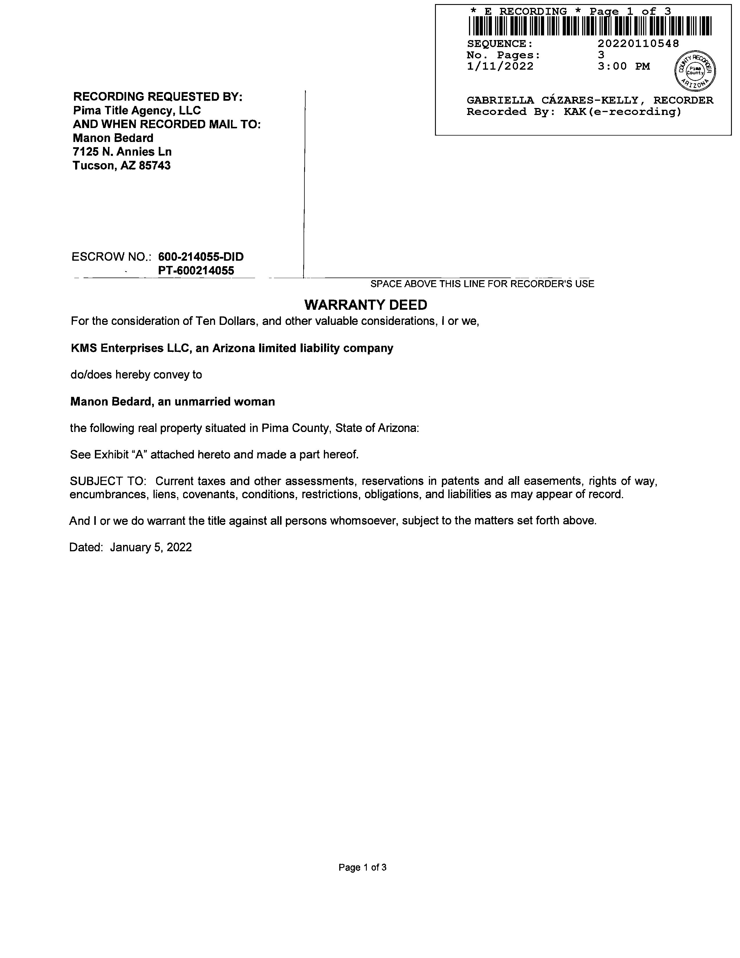 Recording/Sale Date : 01/11/2022 / 01/05/2022