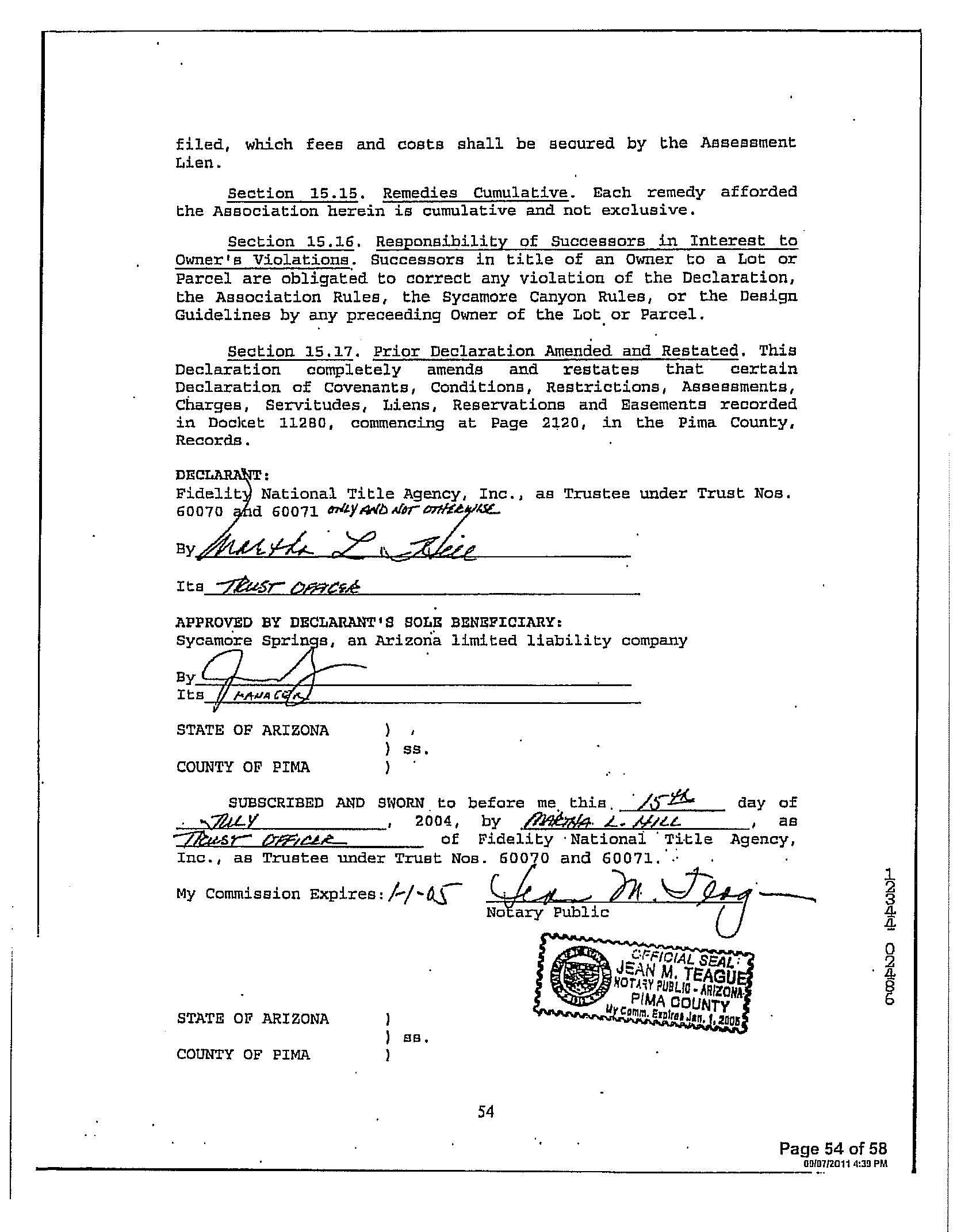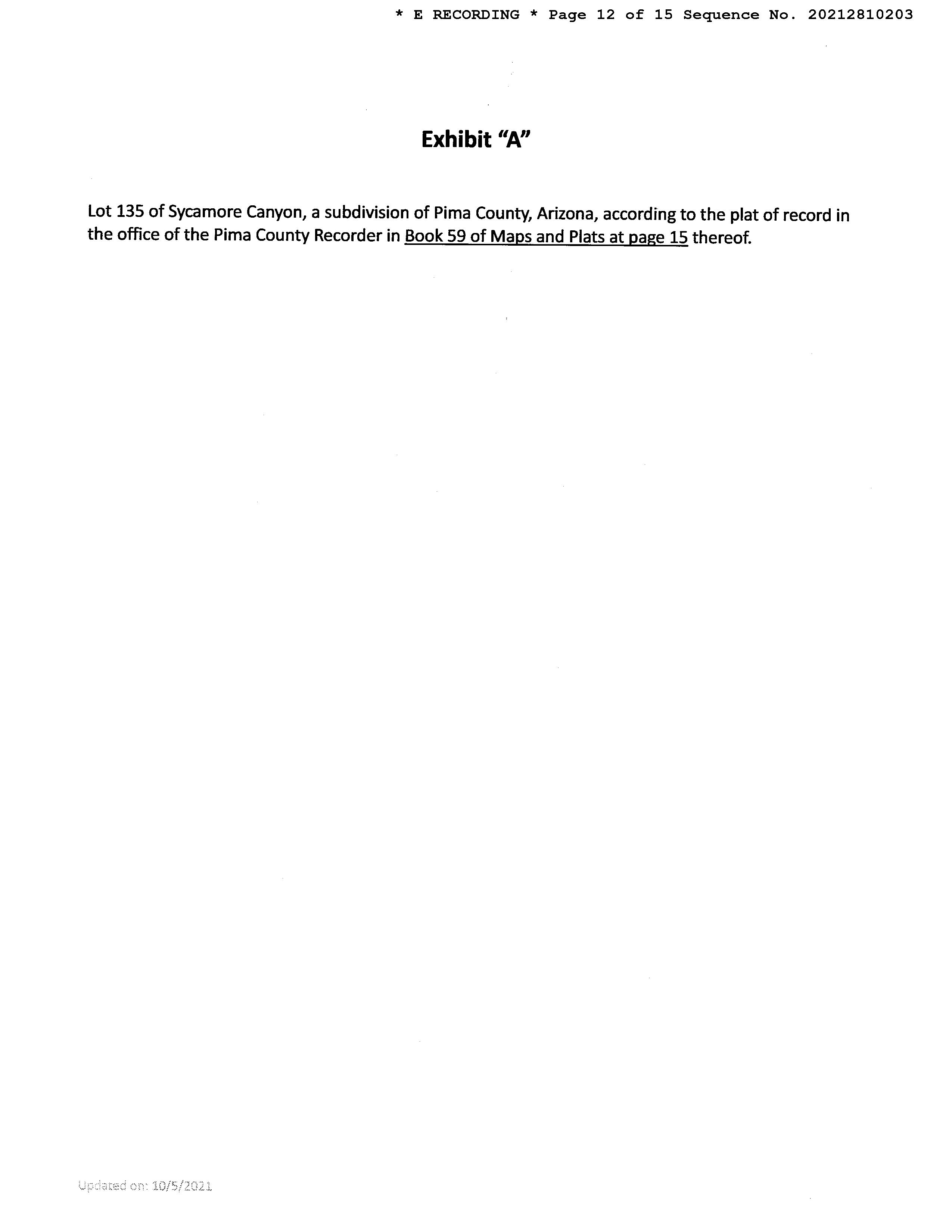 Legal Description : Sycamore Canyon Lot 135