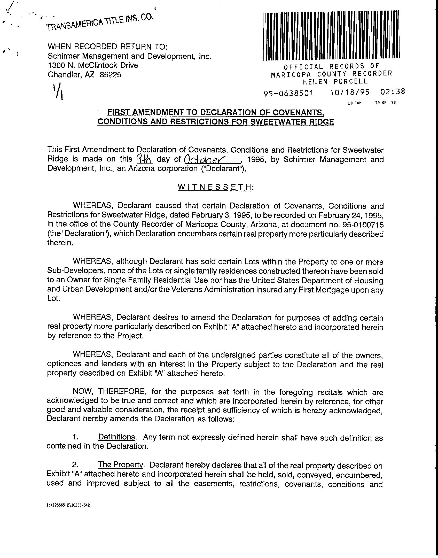 MARICOPA, AZ Document:RES 1995.100715 Page:1 of 38 Printed on:4/2/2024 4:56 PM Branch :FC0 User :JSTI