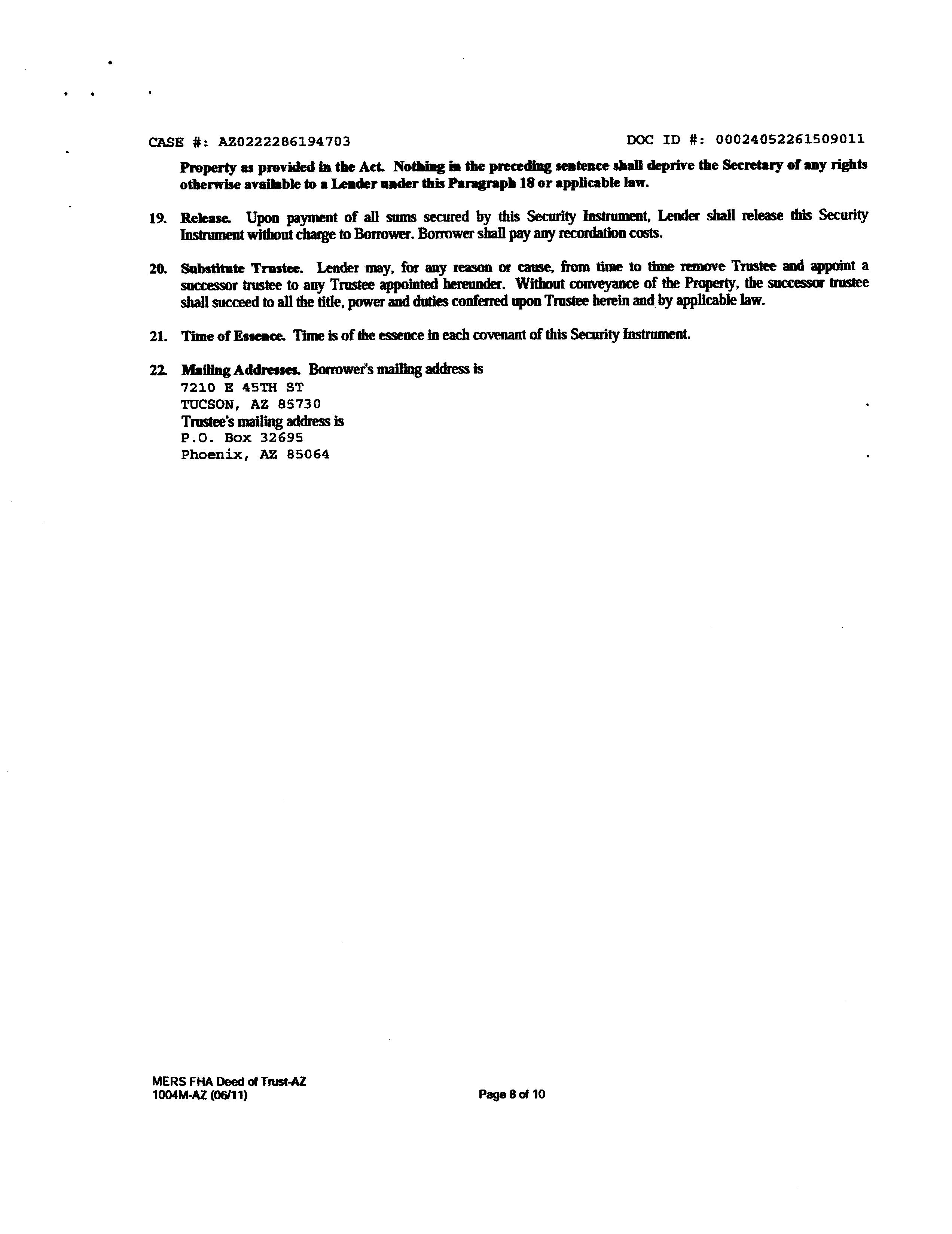 Mailing Address : 7210 E 45th St, Tucson AZ 85730-2306 C052