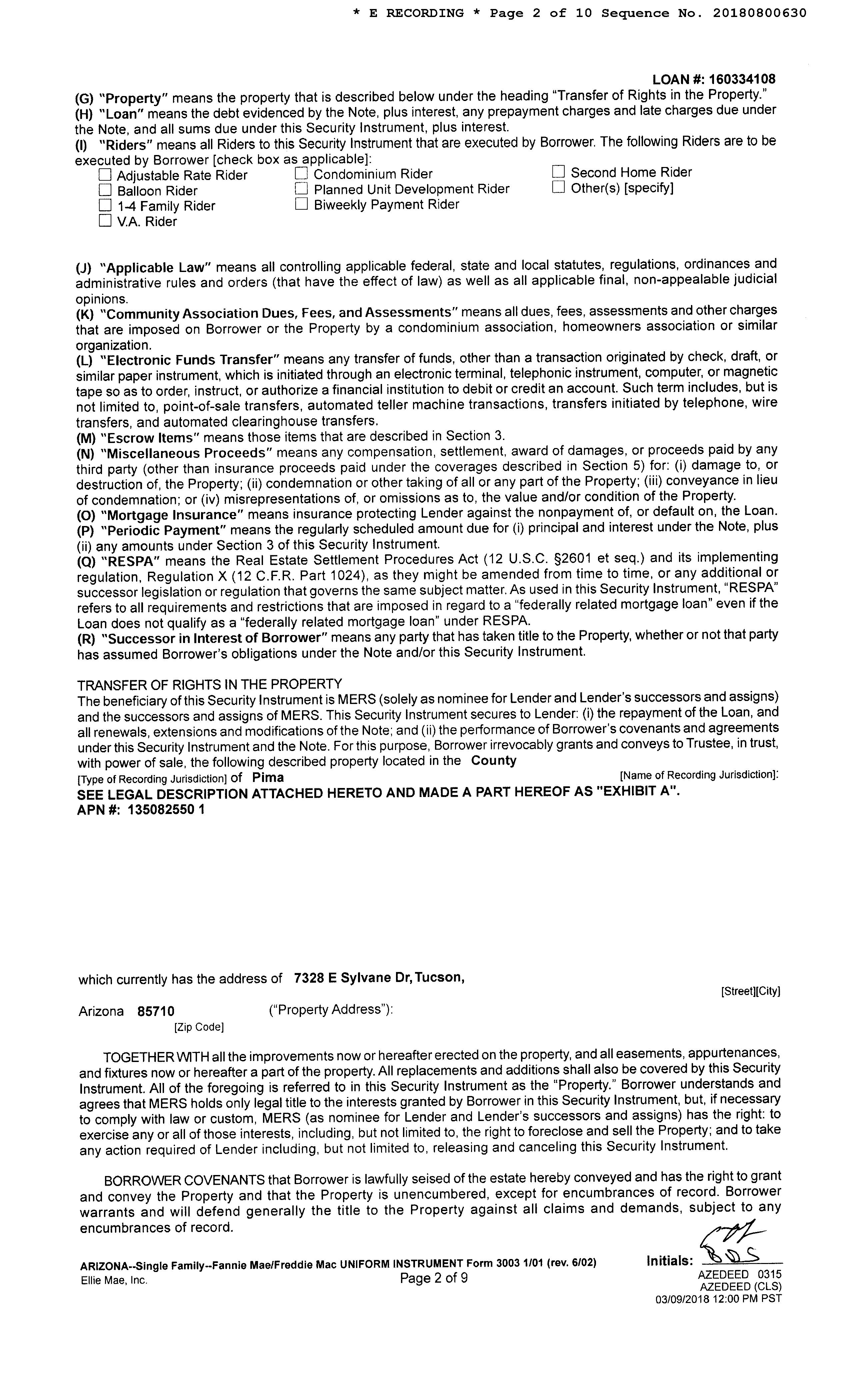 Subject Property : 7328 E Sylvane Dr Tucson AZ 85710