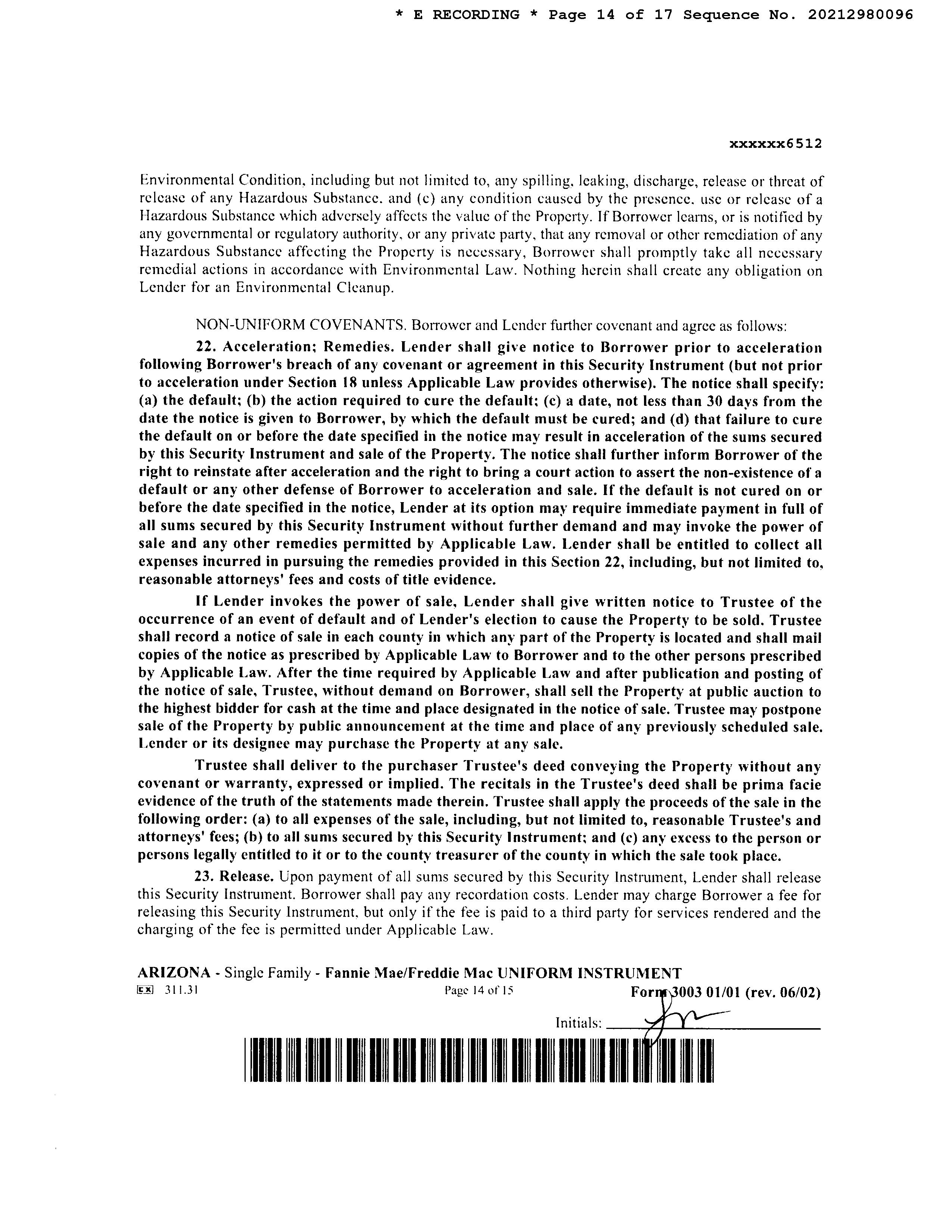 22 Covenant violation resulting in your title reverting to a previous owner