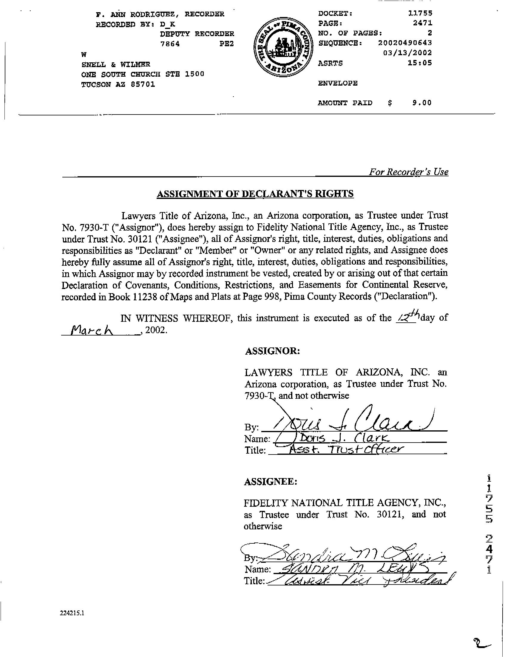 Prior Rec/Sale Date : 10/30/2003 / 05/15/2003