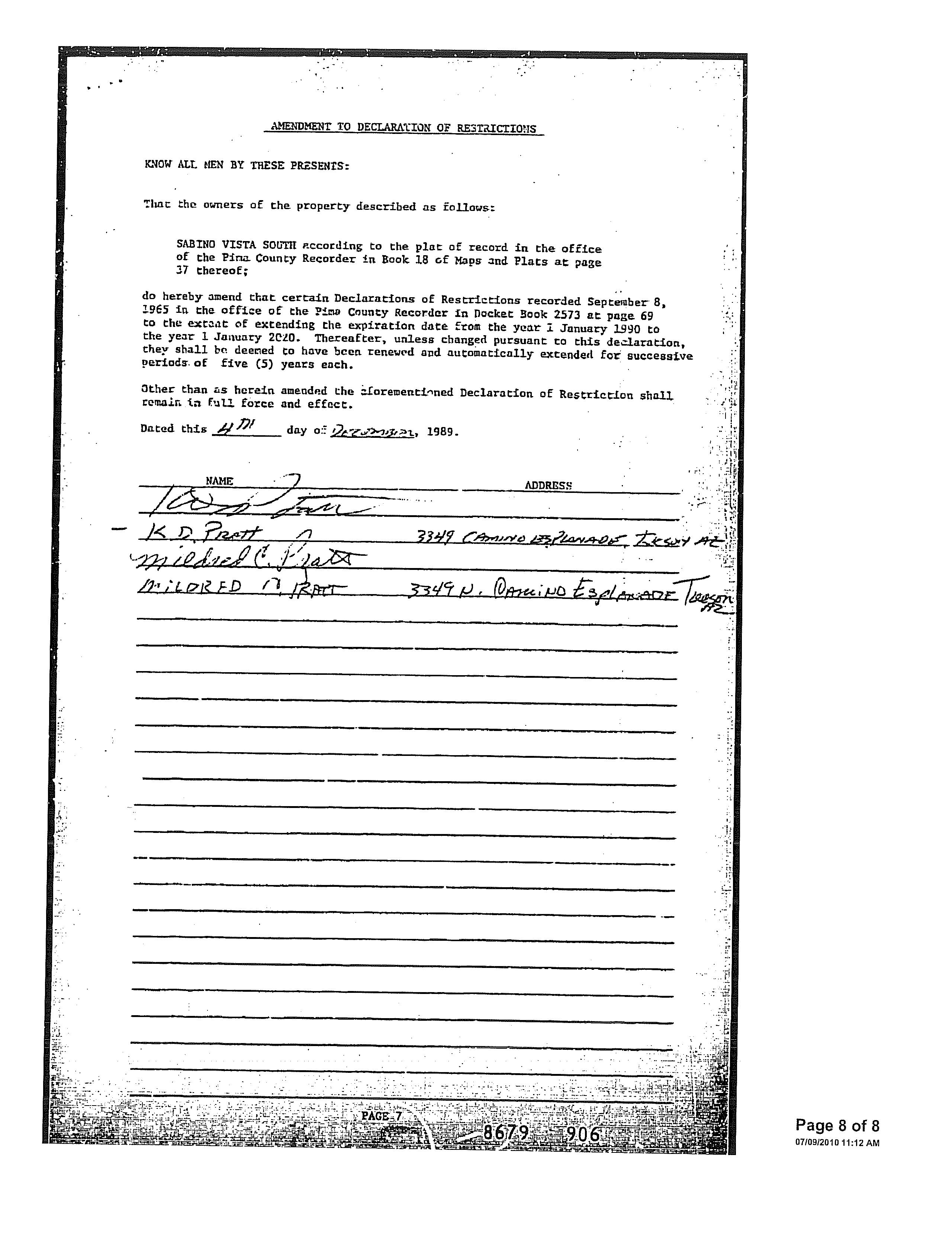 Mailing Address : 7412 E Calle Los Arboles, Tucson AZ 85750-2619 C039