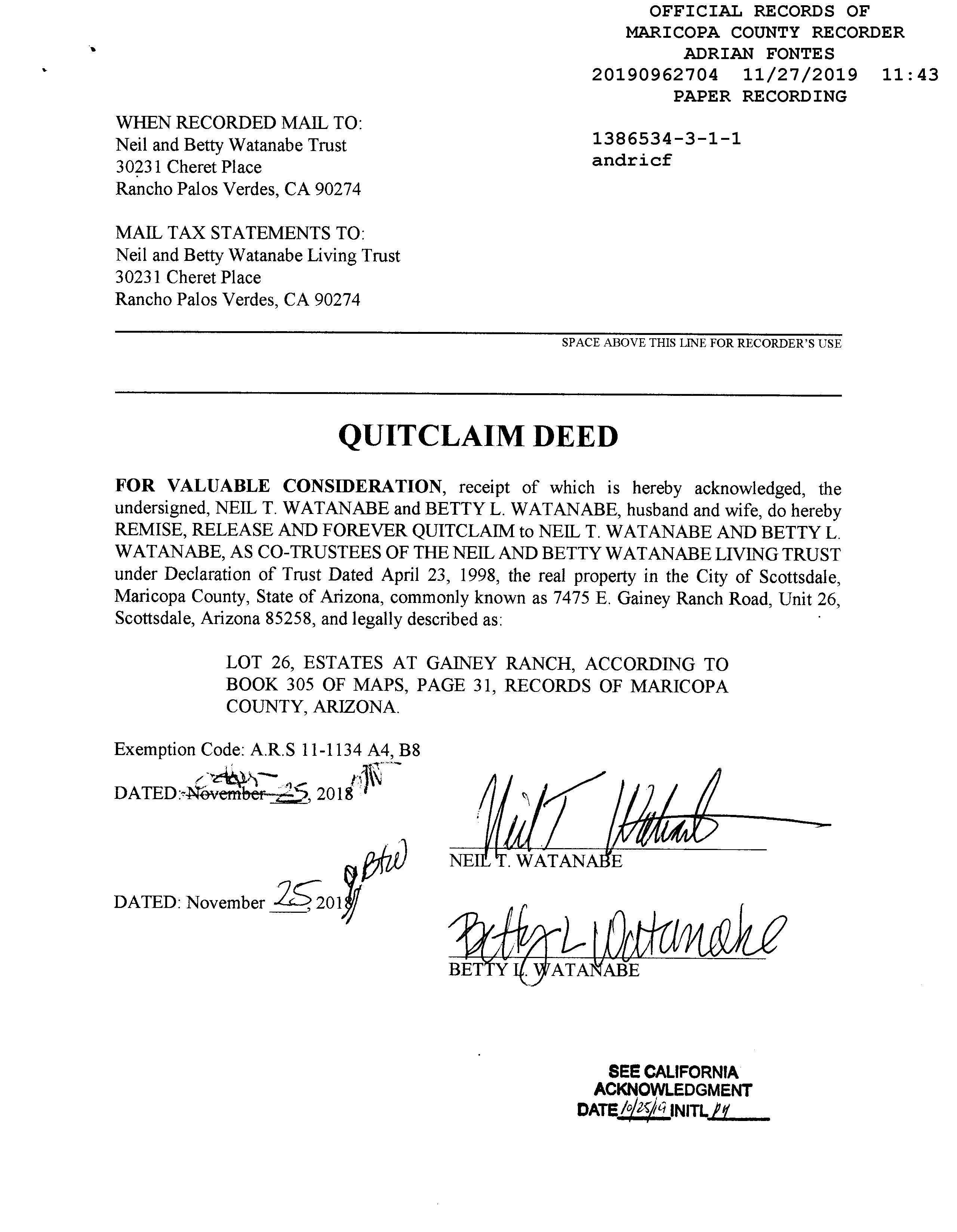 Subject Property : 7475 E Gainey Ranch Rd # 26 Scottsdale AZ 85258