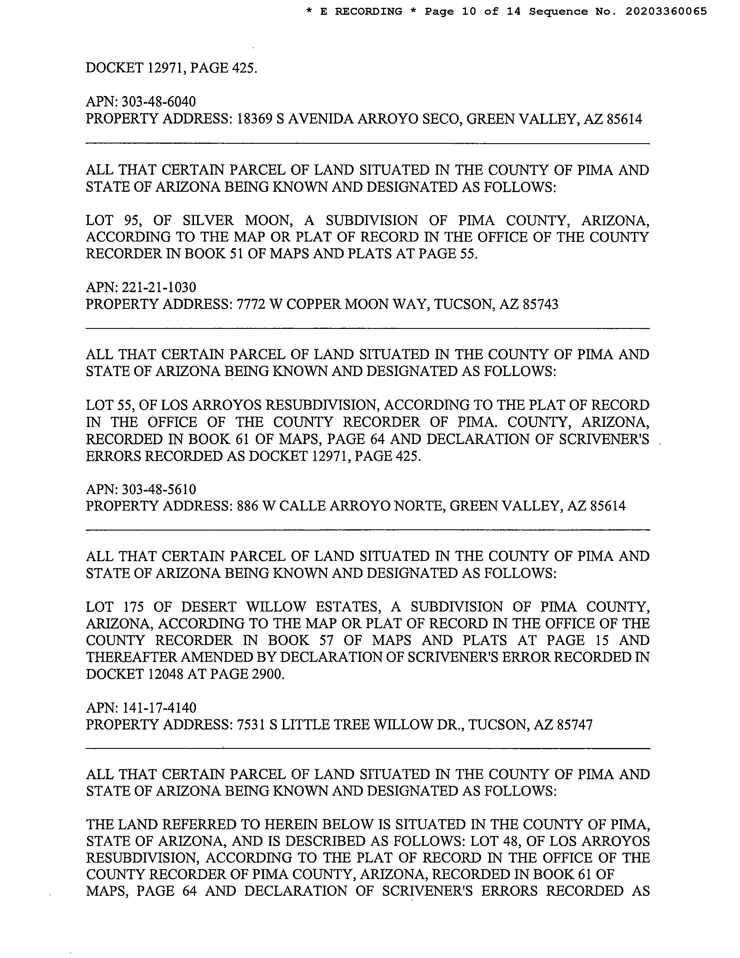 Subject Property : 7584 W Pepper Ridge Rd Tucson AZ 85743