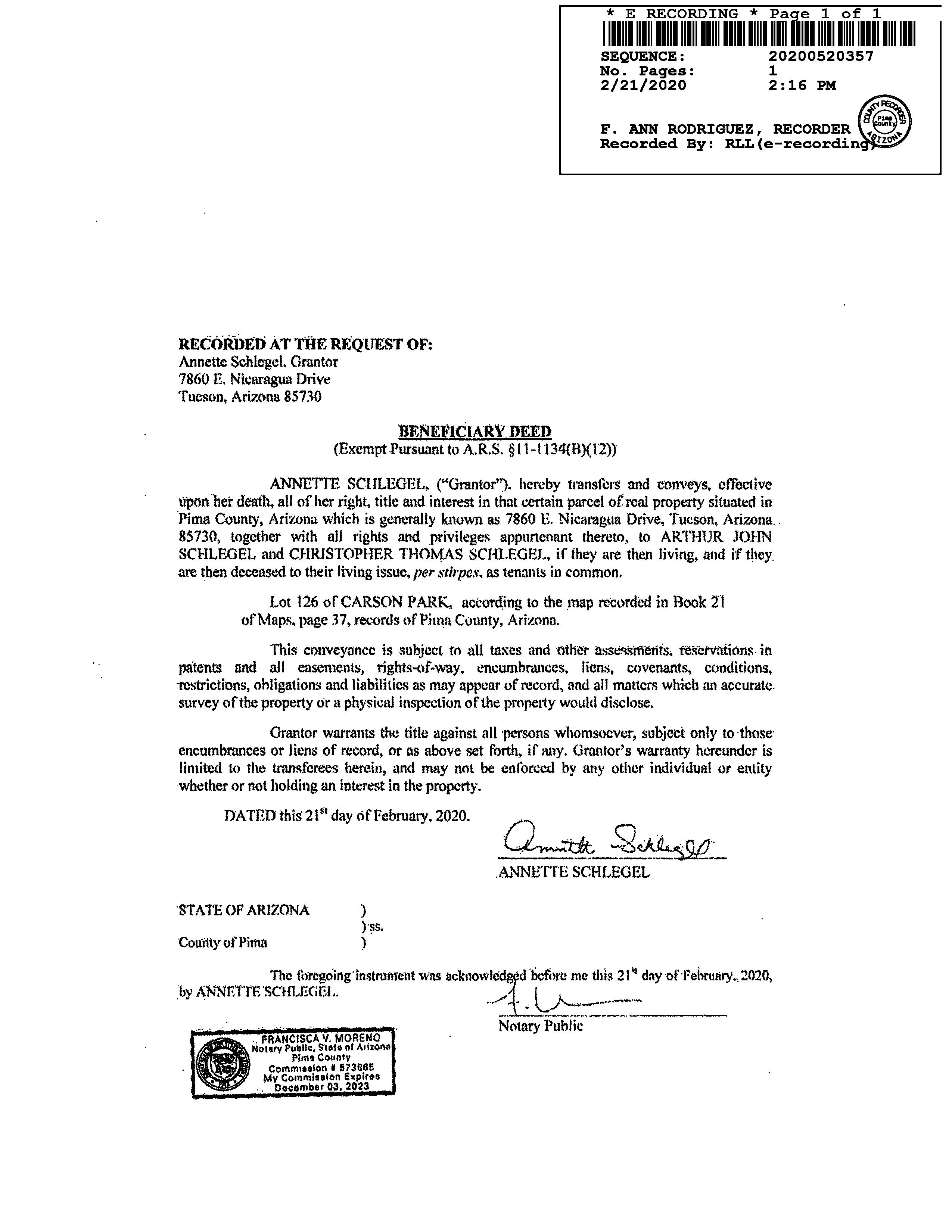 Legal Description : Carson Park Lot 126