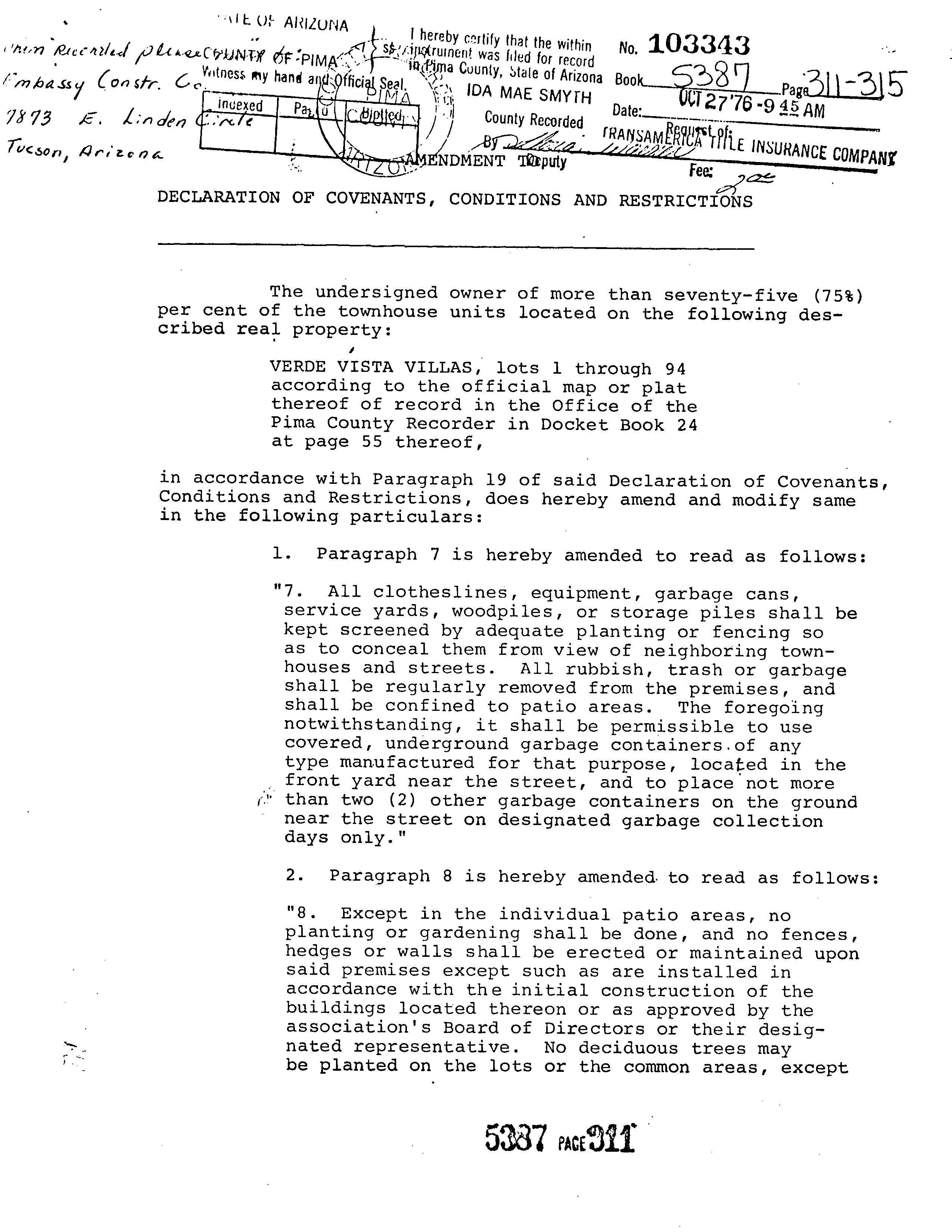 Owner Name : Adams Konna Subdivision : Verde Vista Villas