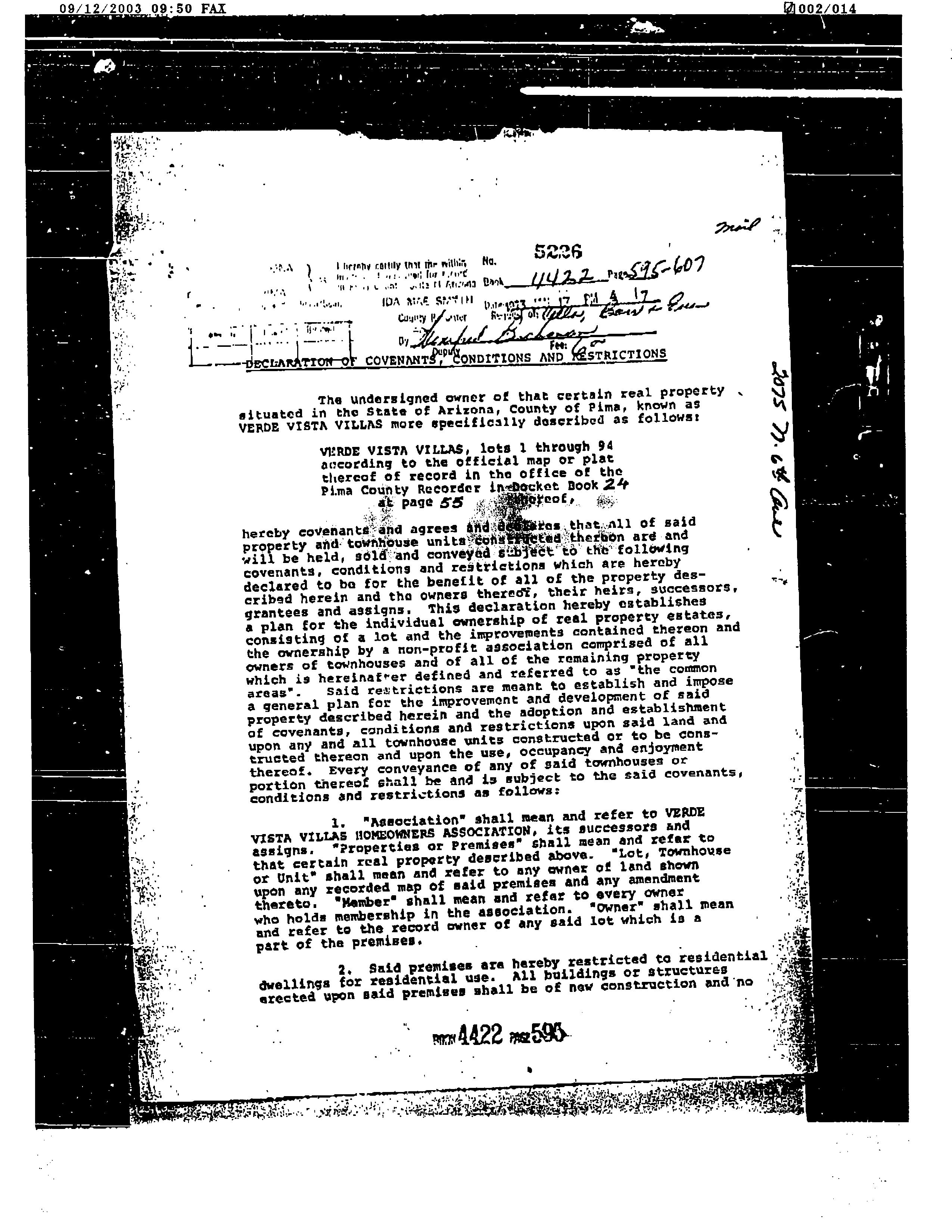 Owner Name : Willis Elizabeth Subdivision : Verde Vista