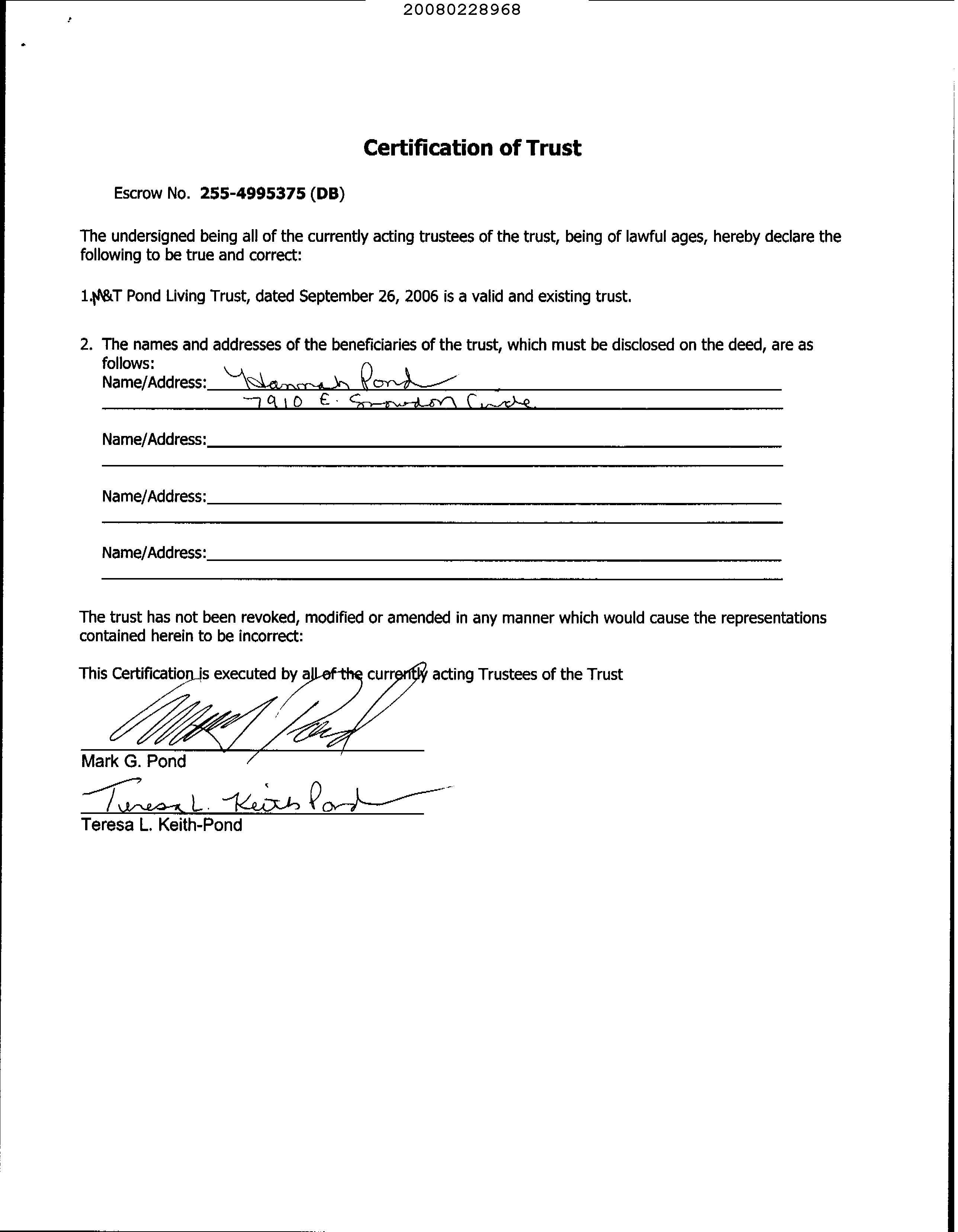 Mailing Address : 7910 E Snowdon Cir, Mesa AZ 85207-1139 R046