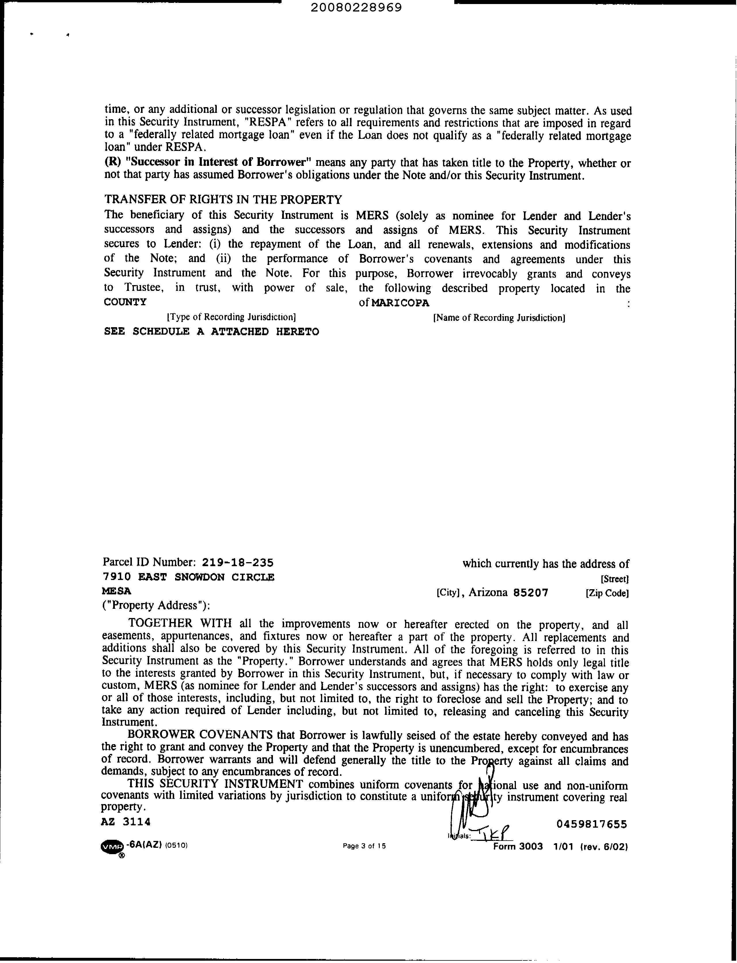 #4 7642 E Sandia Cir Mesa Az 85207 Owner Name: Suhr Brent M /Howell April