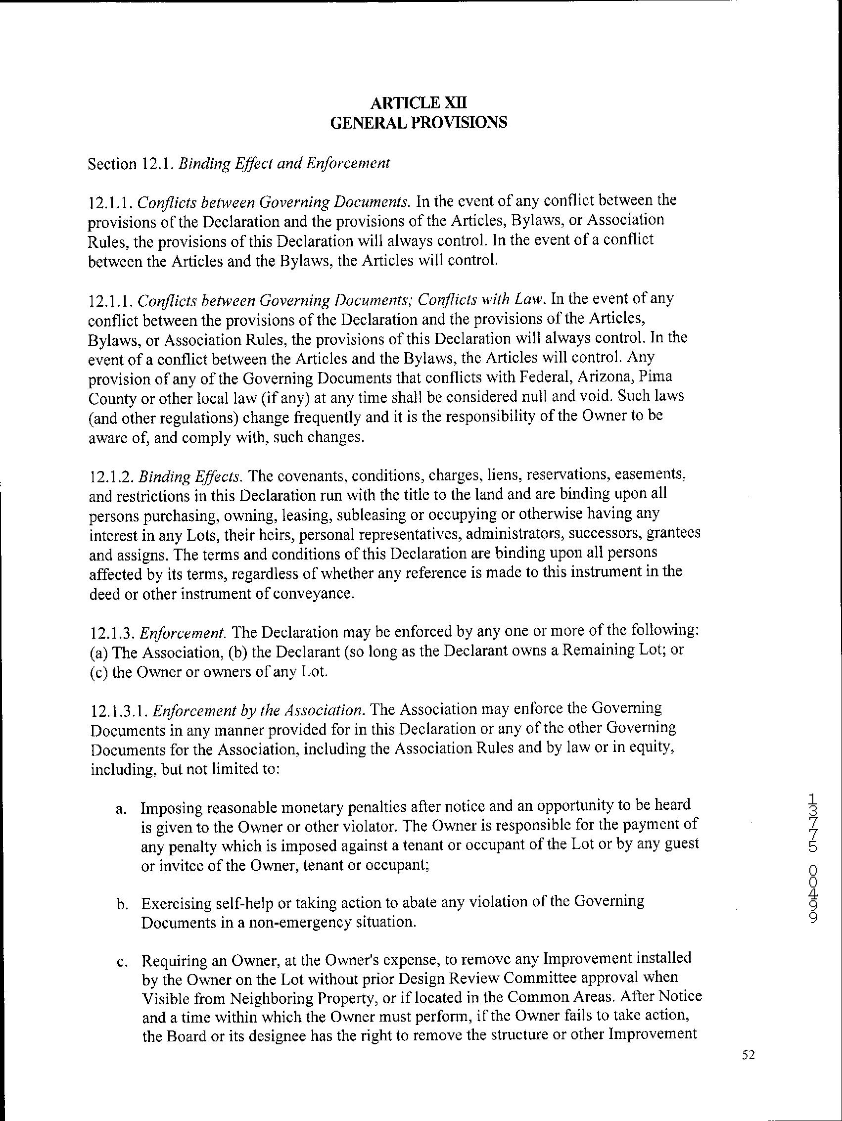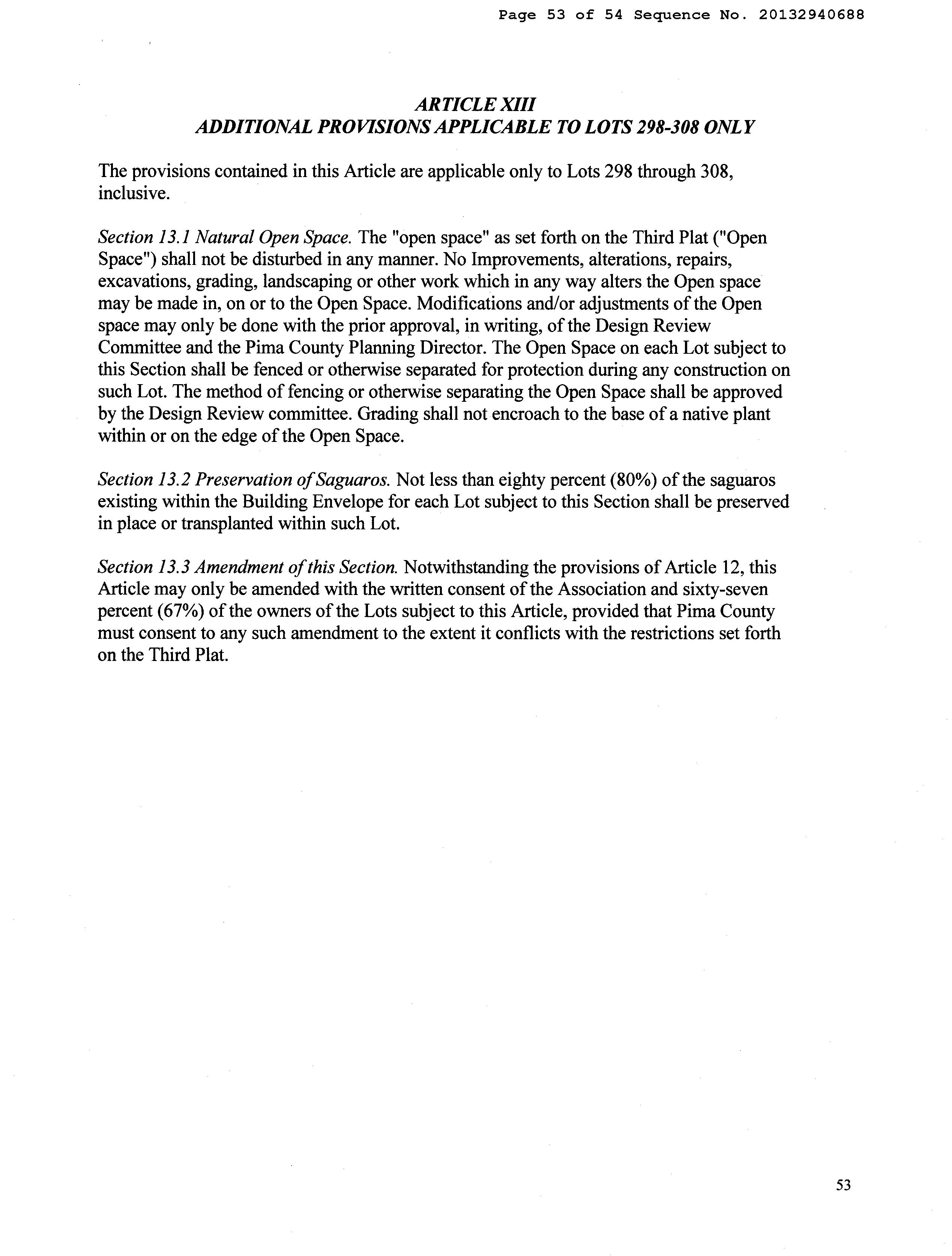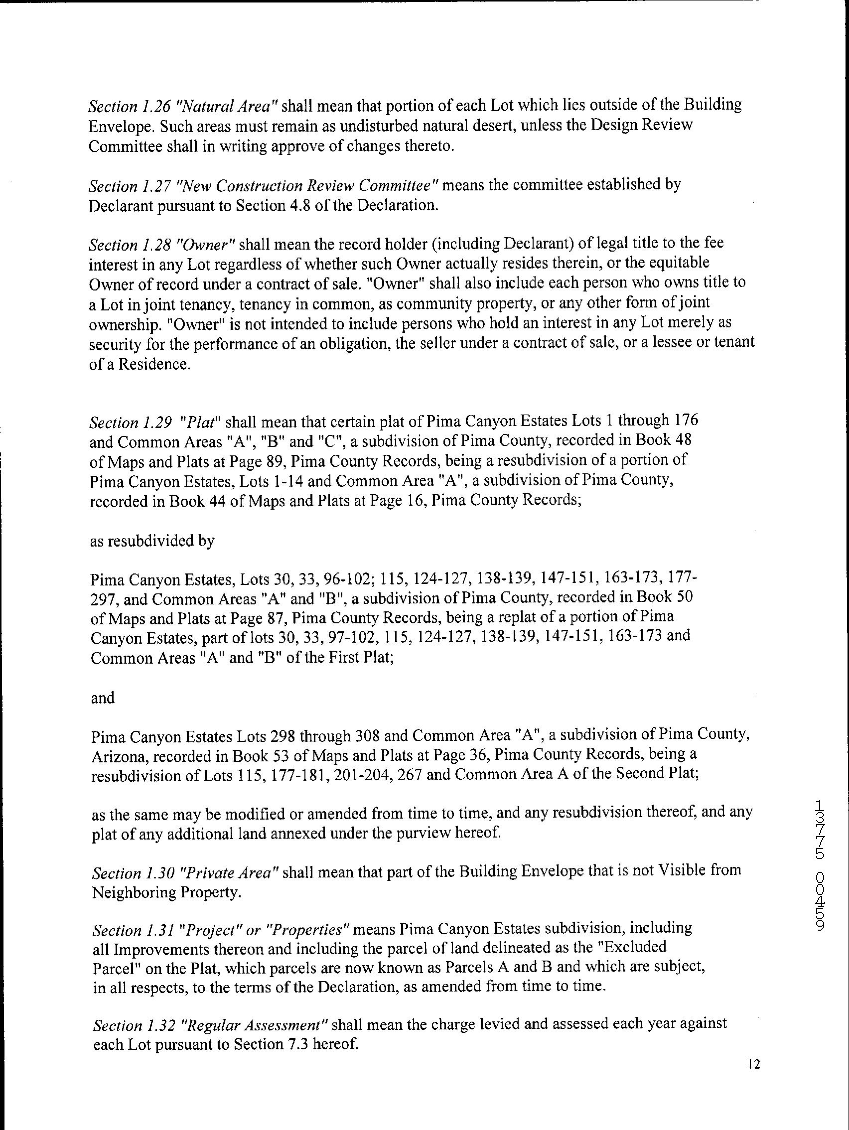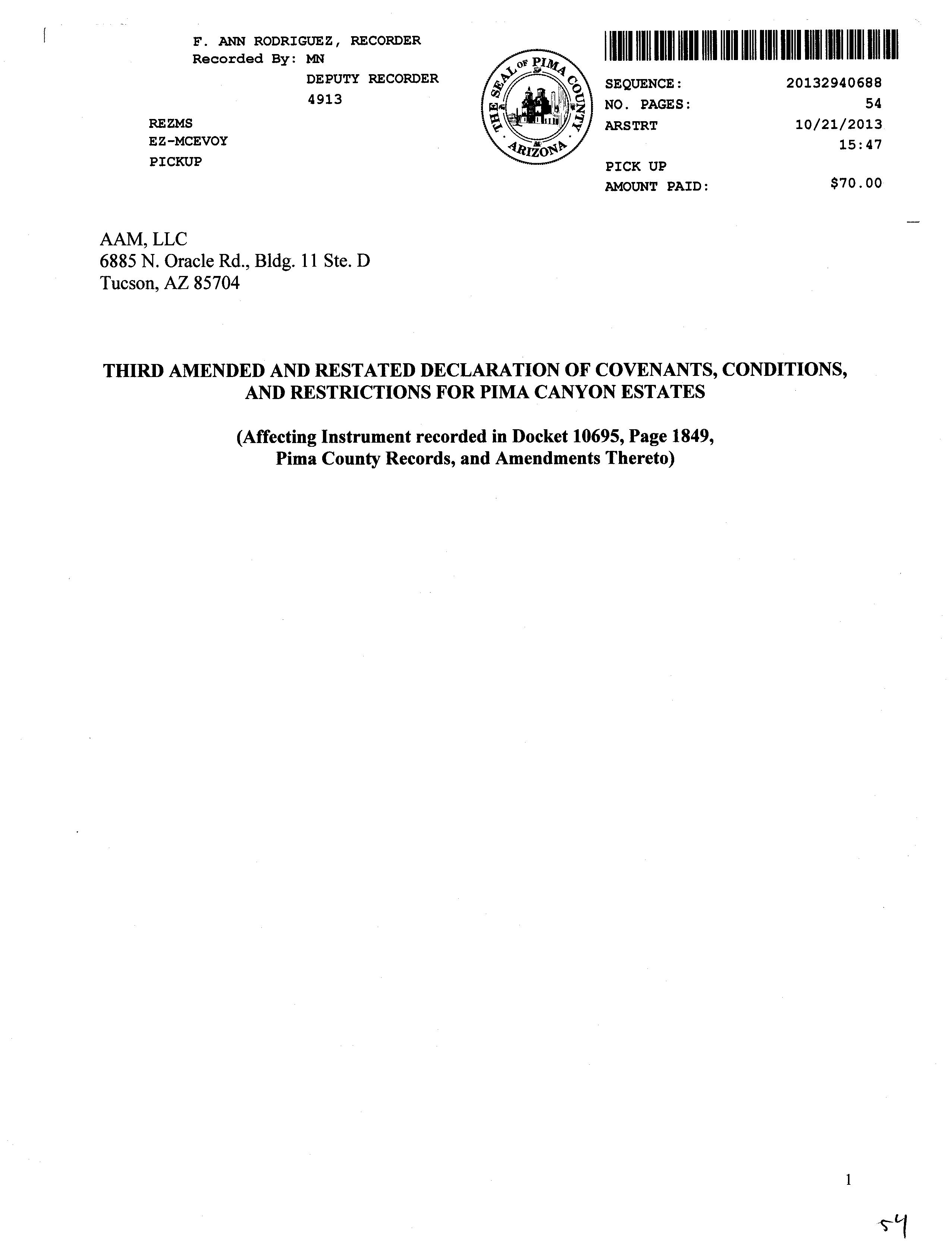 ©2021 First American Financial Corporation and/or its affiliates. All rights reserved. NYSE: FAF 05252610821 COVENANTS, CONDITIONS & RESTRICTIONS PREPARED FOR : First American Title Insurance Company, and the operating divisions thereof, make no express or implied warranty respecting the information presented and assume no responsibility for errors or omissions. First American, the eagle logo, First American Title, and firstam.com are registered trademarks or trademarks of First American Financial Corporation and/or its affiliates. 7973 North Pima Village Court Tucson, AZ 85718