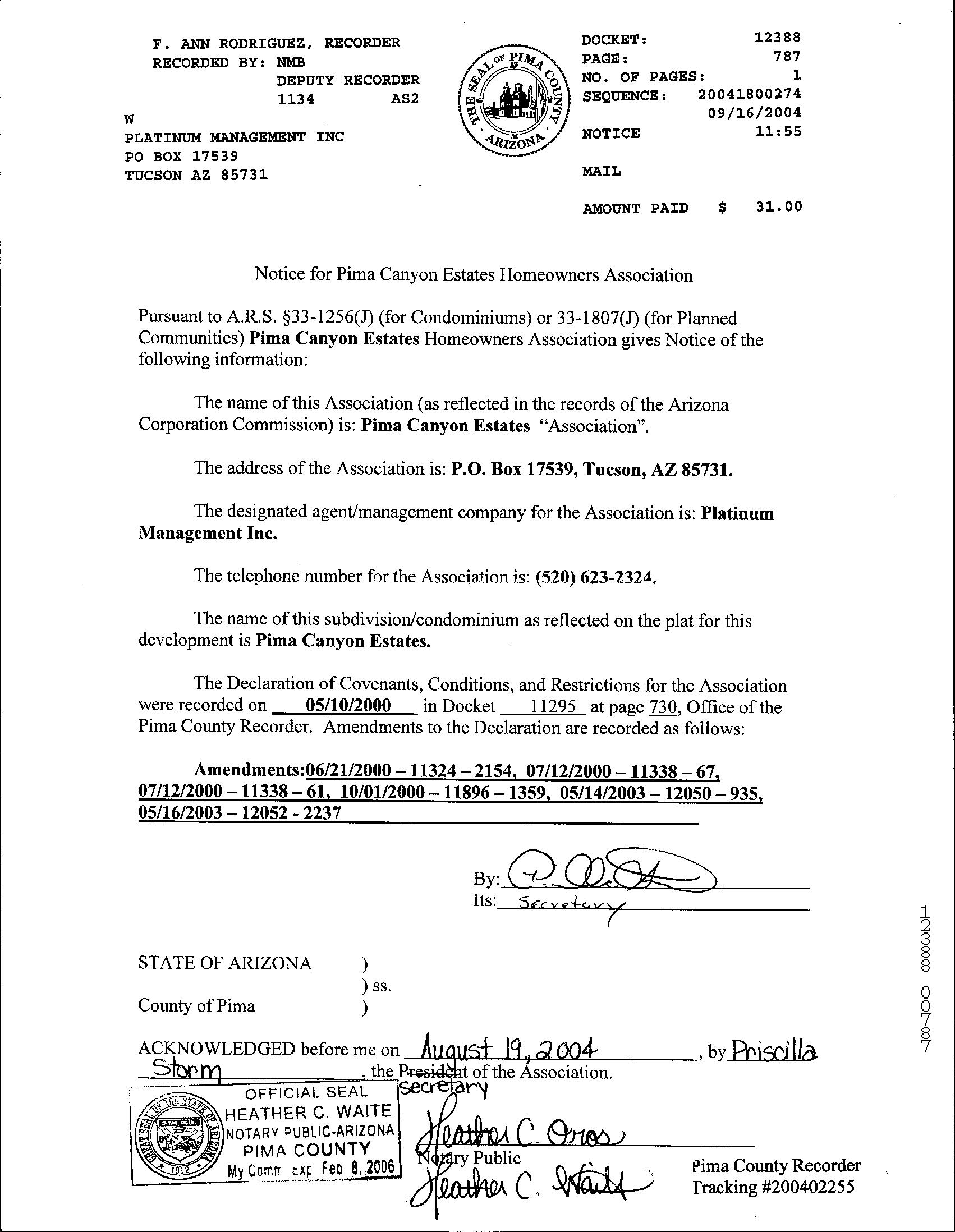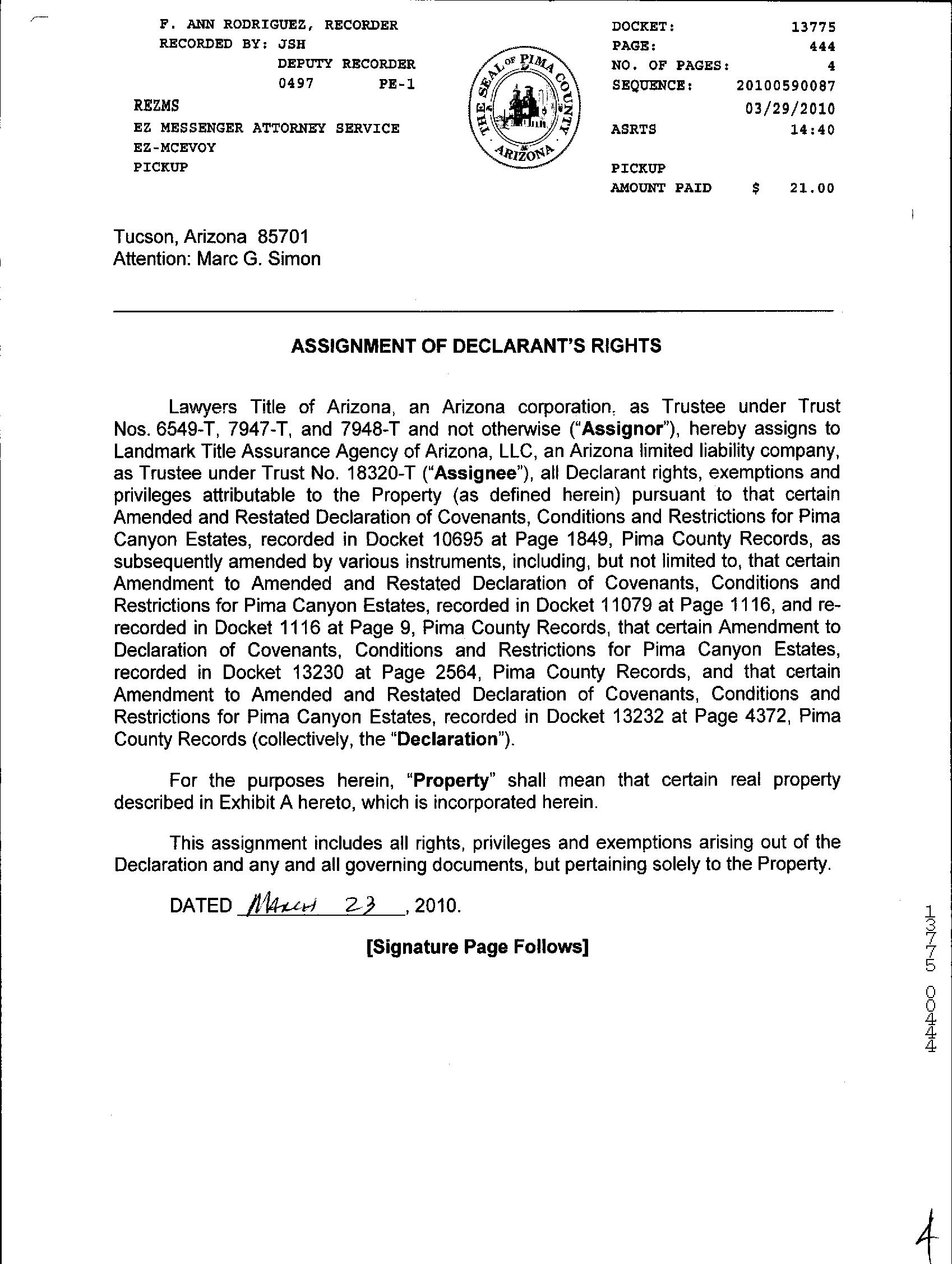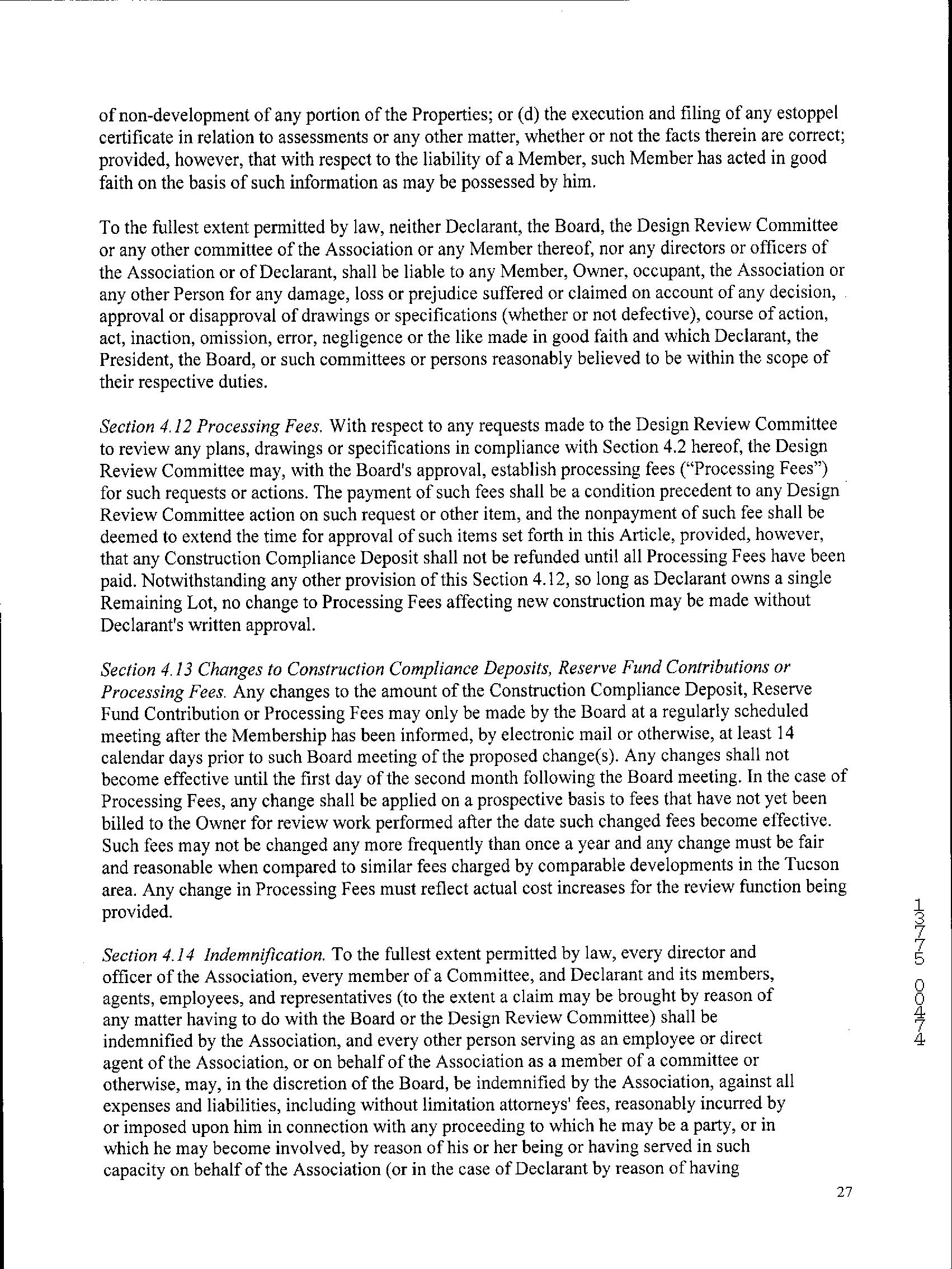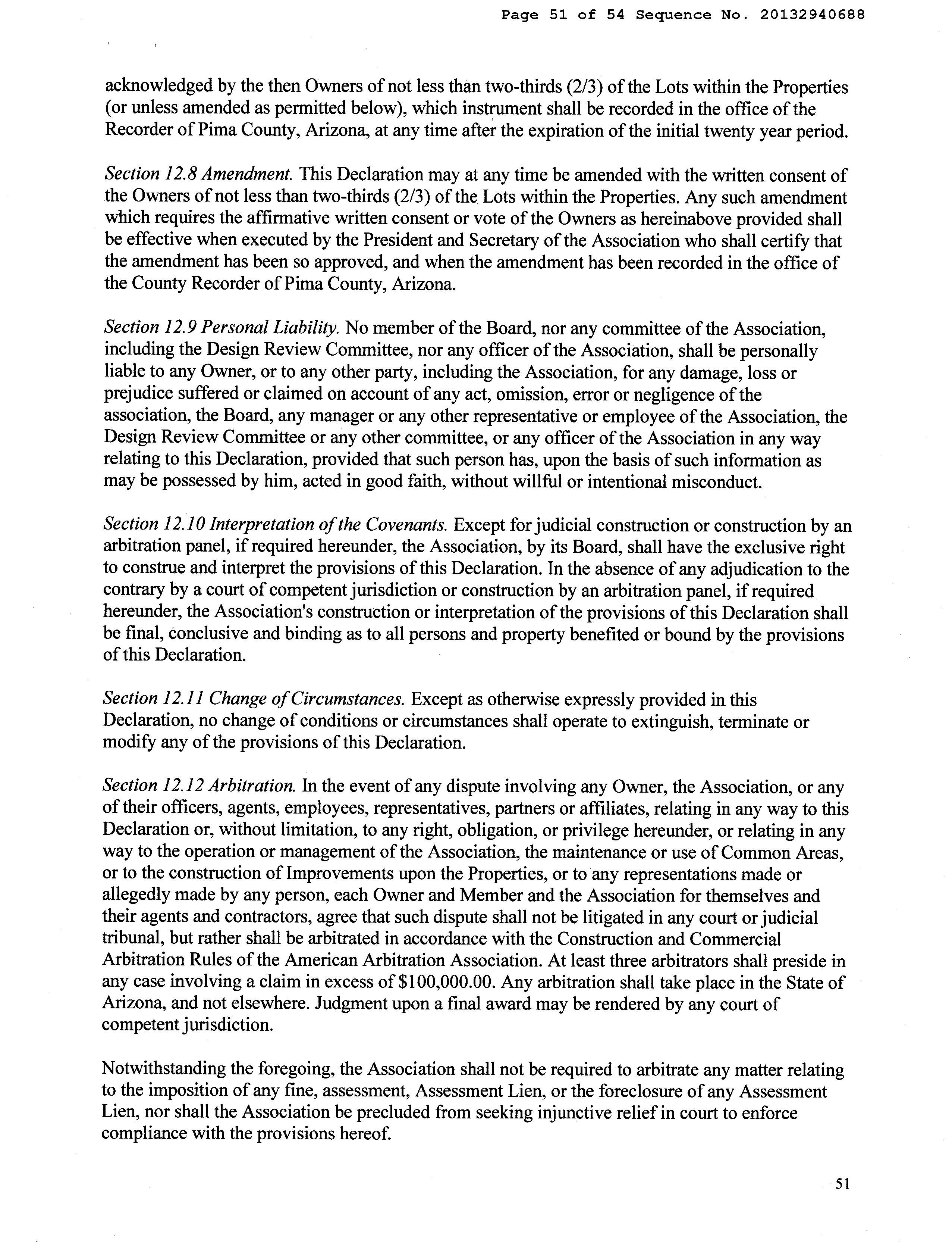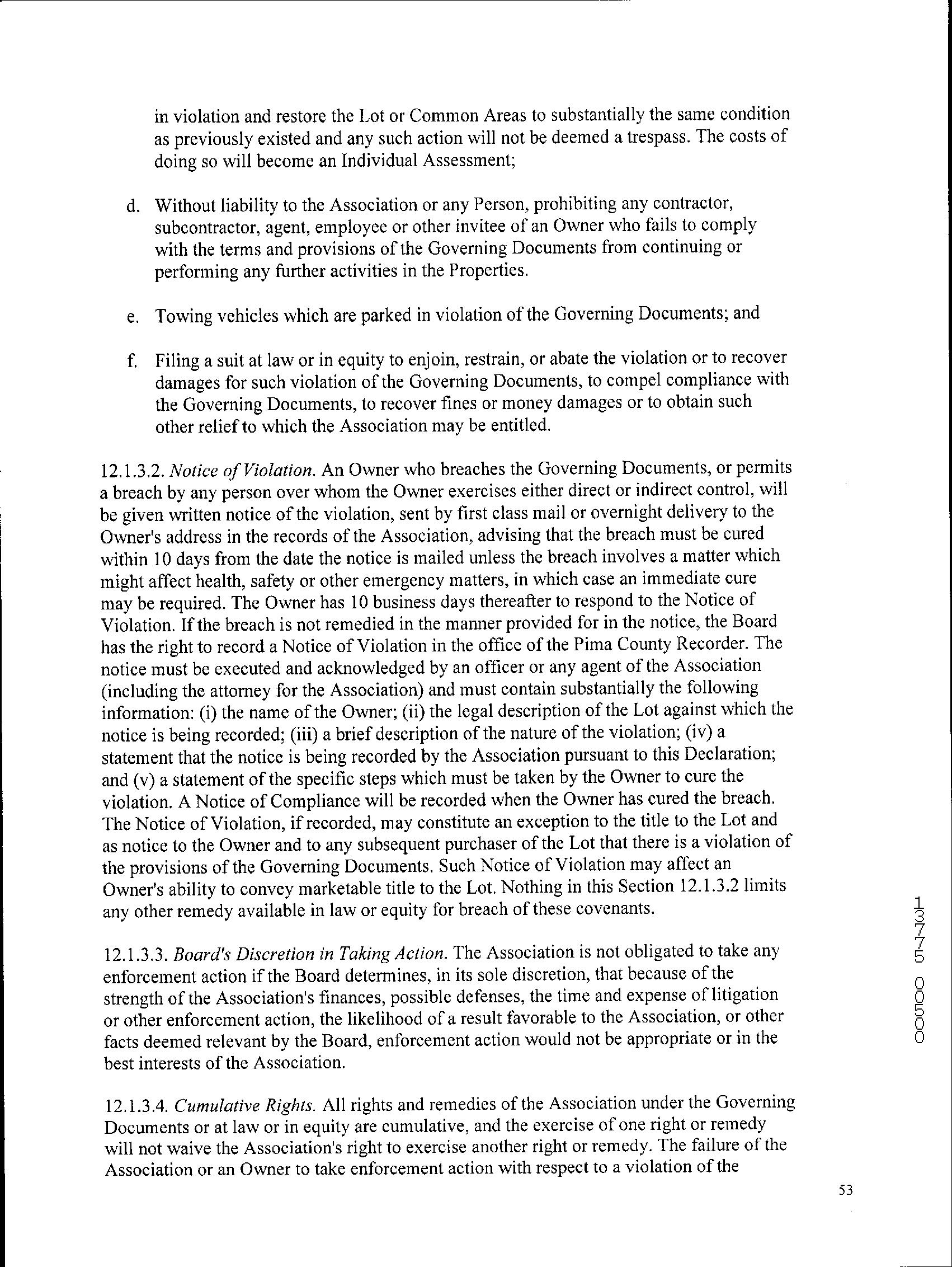 ©2021 First American Financial Corporation and/or its affiliates. All rights reserved. NYSE: FAF 05252610821 COVENANTS, CONDITIONS & RESTRICTIONS PREPARED FOR : First American Title Insurance Company, and the operating divisions thereof, make no express or implied warranty respecting the information presented and assume no responsibility for errors or omissions. First American, the eagle logo, First American Title, and firstam.com are registered trademarks or trademarks of First American Financial Corporation and/or its affiliates. 7973 North Pima Village Court Tucson, AZ 85718