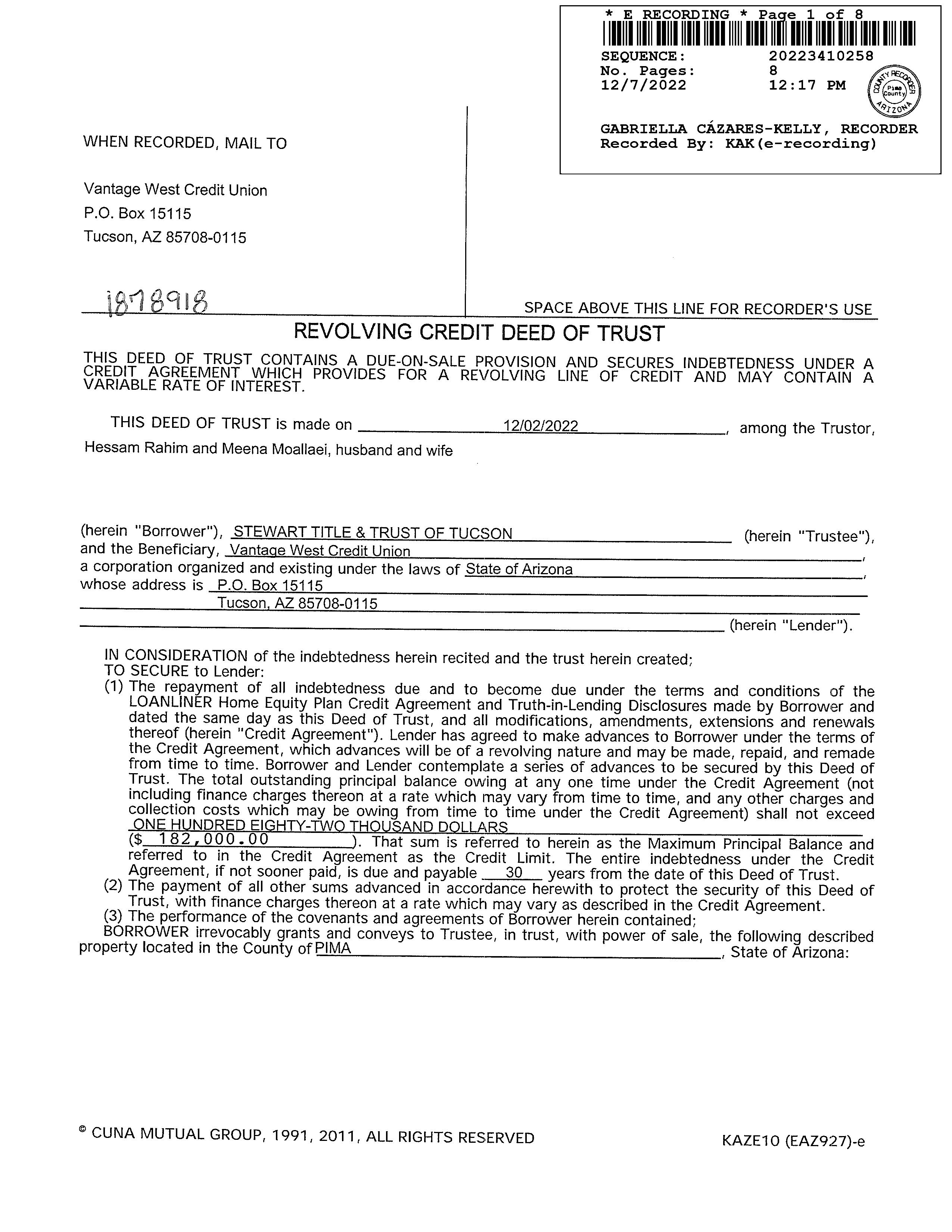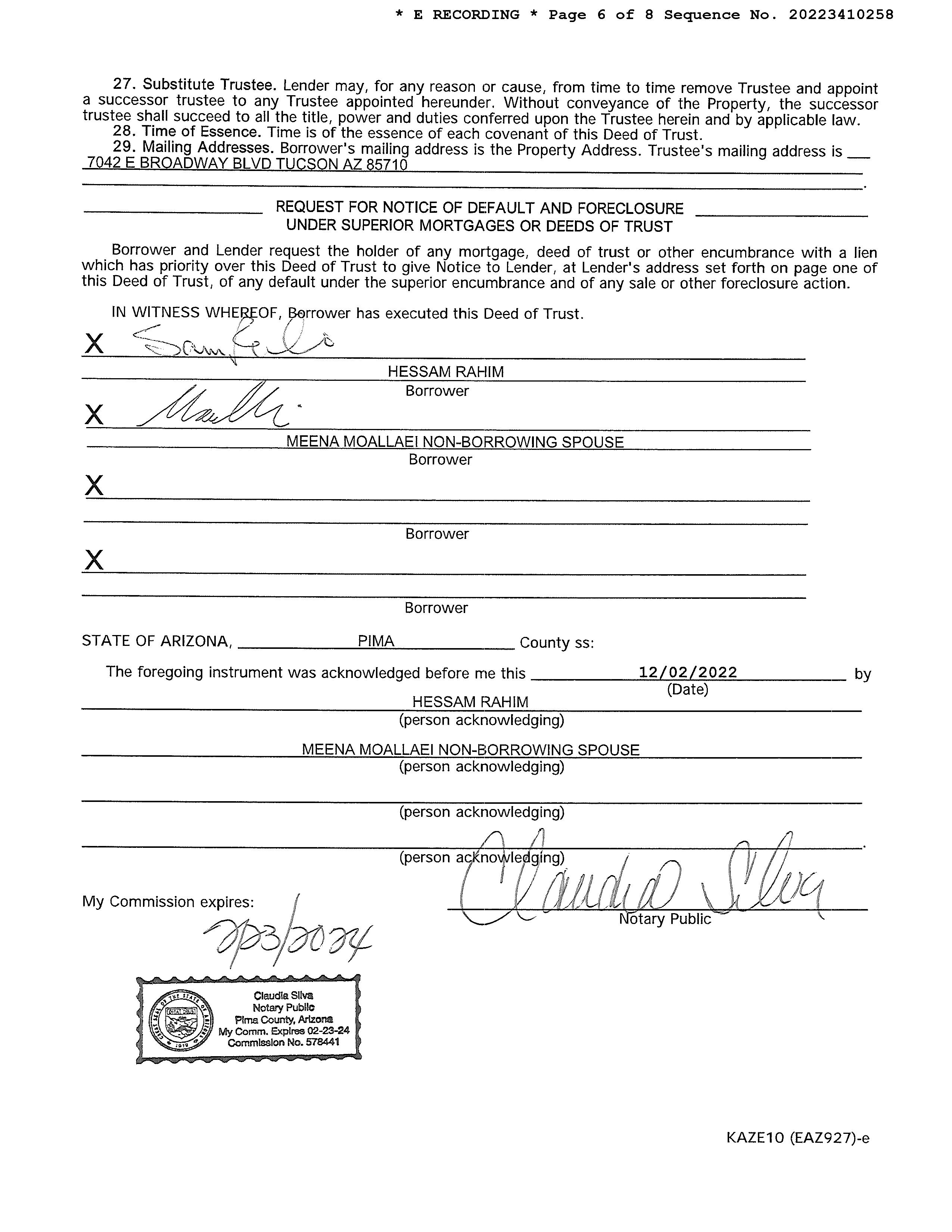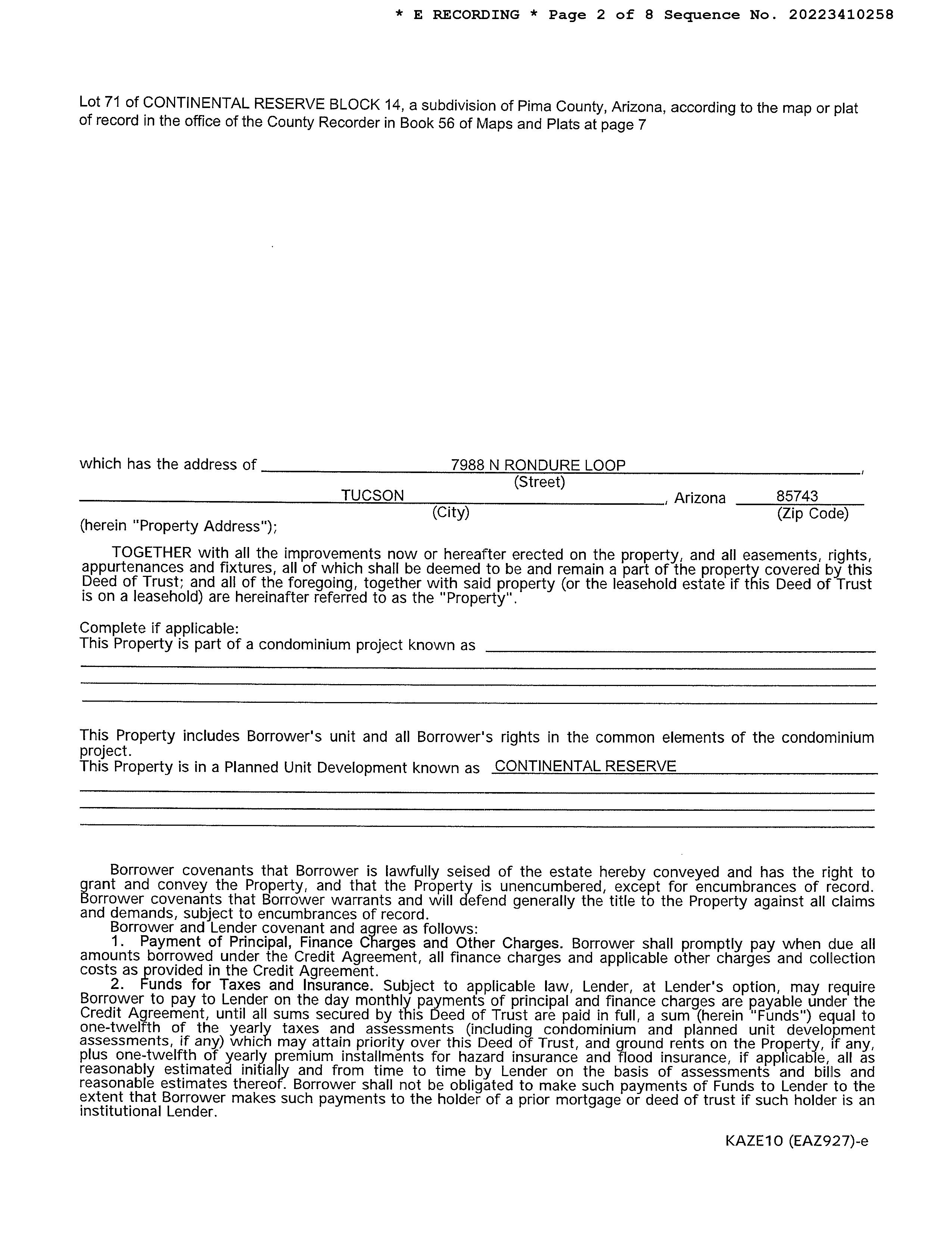Mailing Address : 7988 N Rondure Loop, Tucson AZ 85743-7414 R103