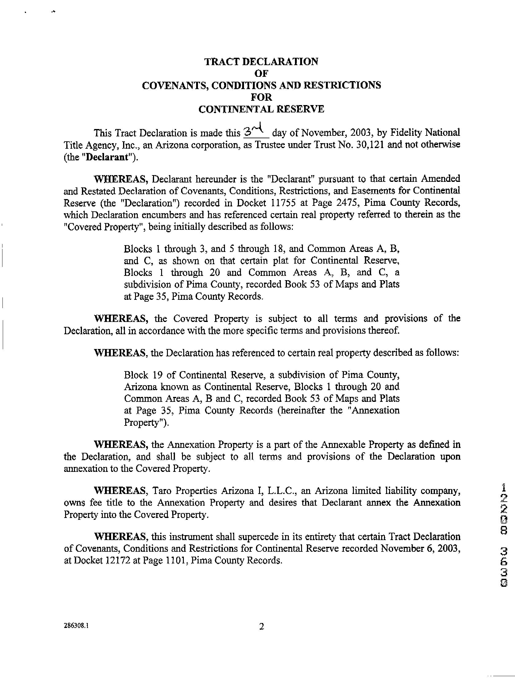 Subdivision : Continental Reserve