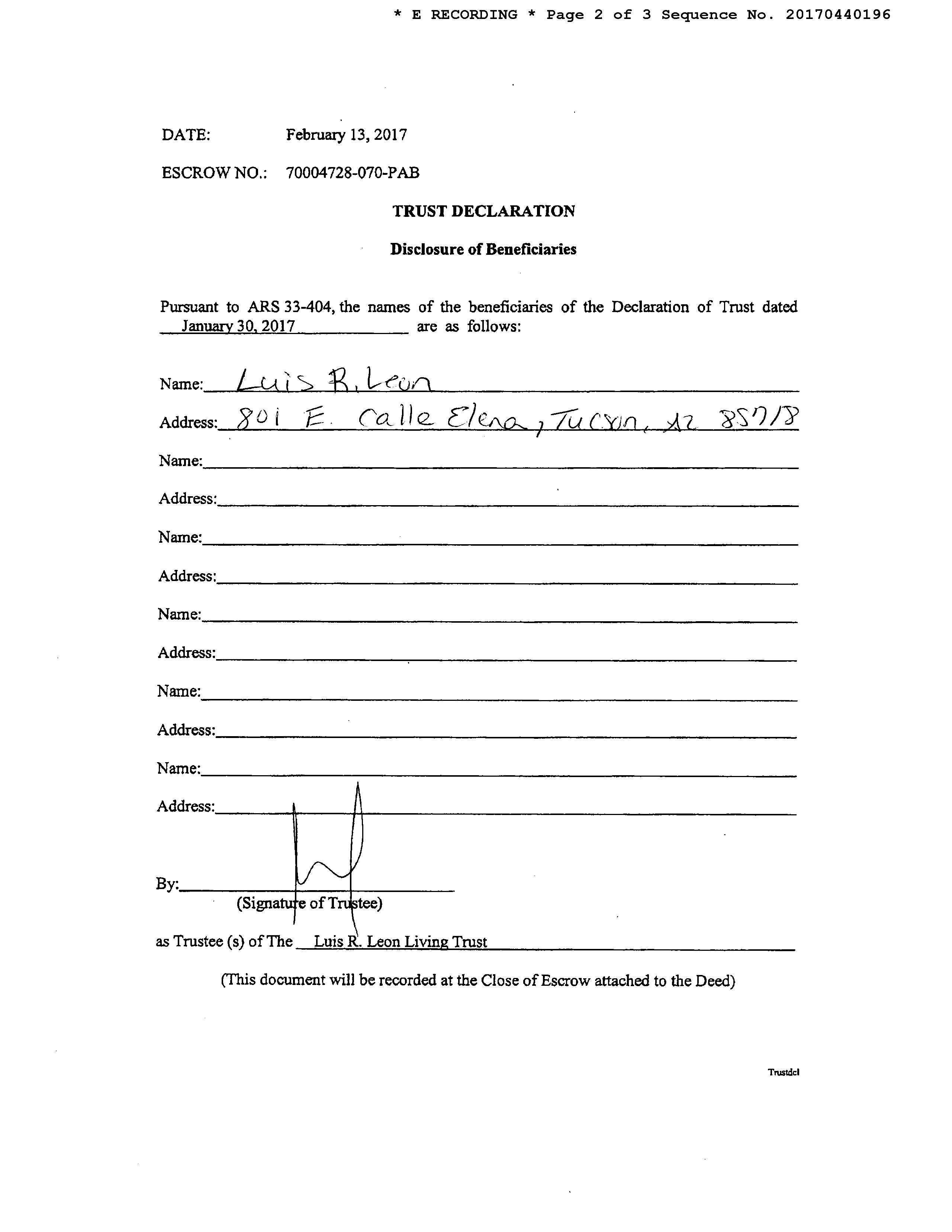 Owner Name : Leon Luis Qualified Personal Res Tr