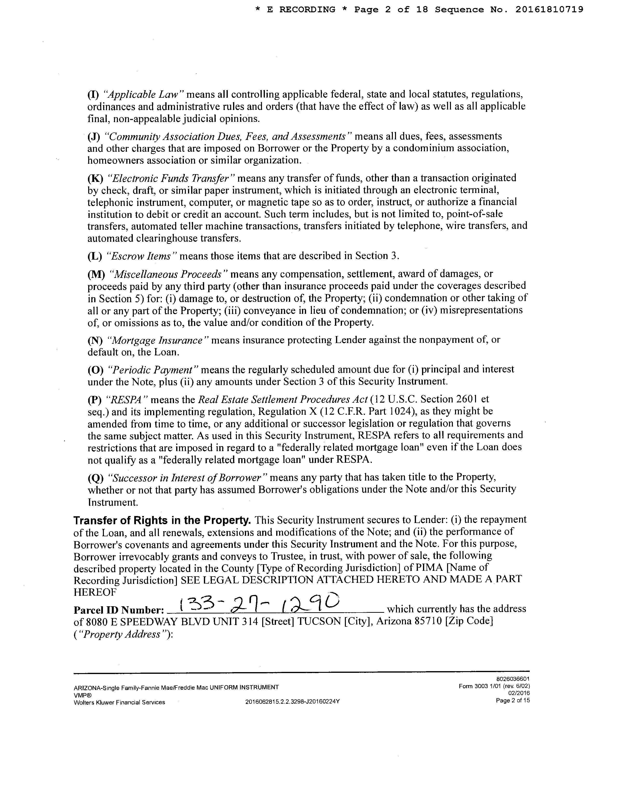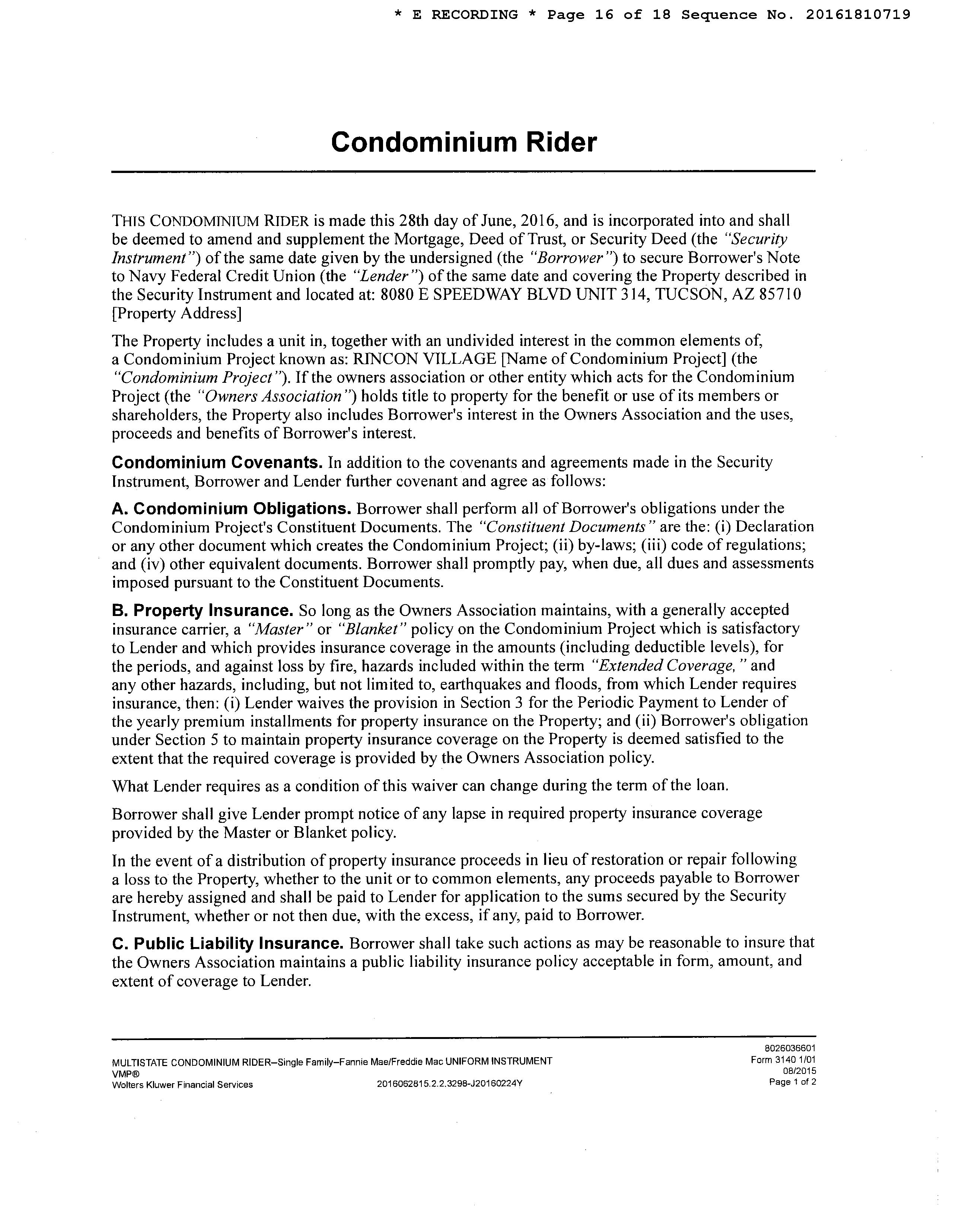 Subject Property : 8080 E Speedway Blvd # 314 Tucson AZ 85710
