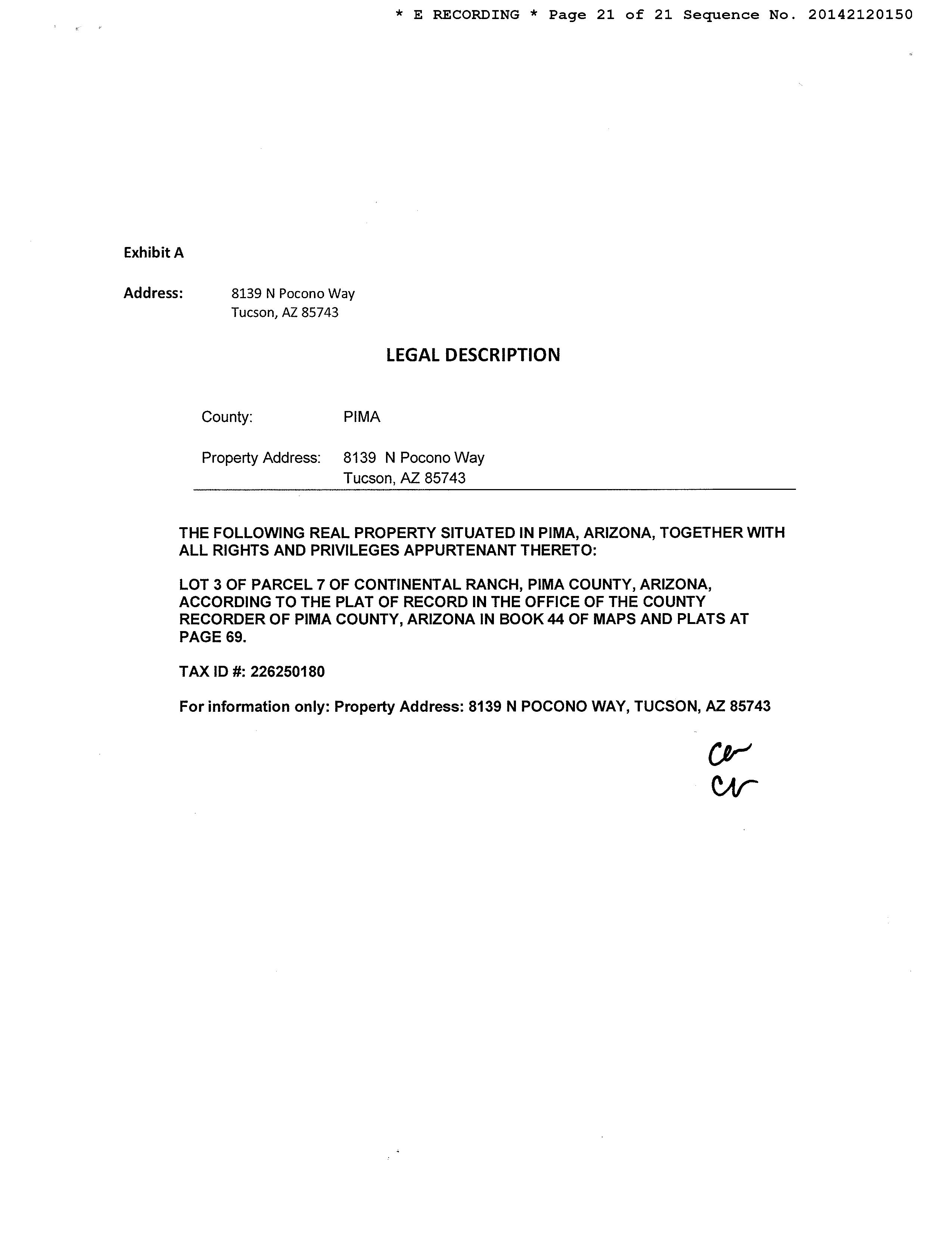 Subject Property : 8139 N Pocono Way Tucson AZ 85743