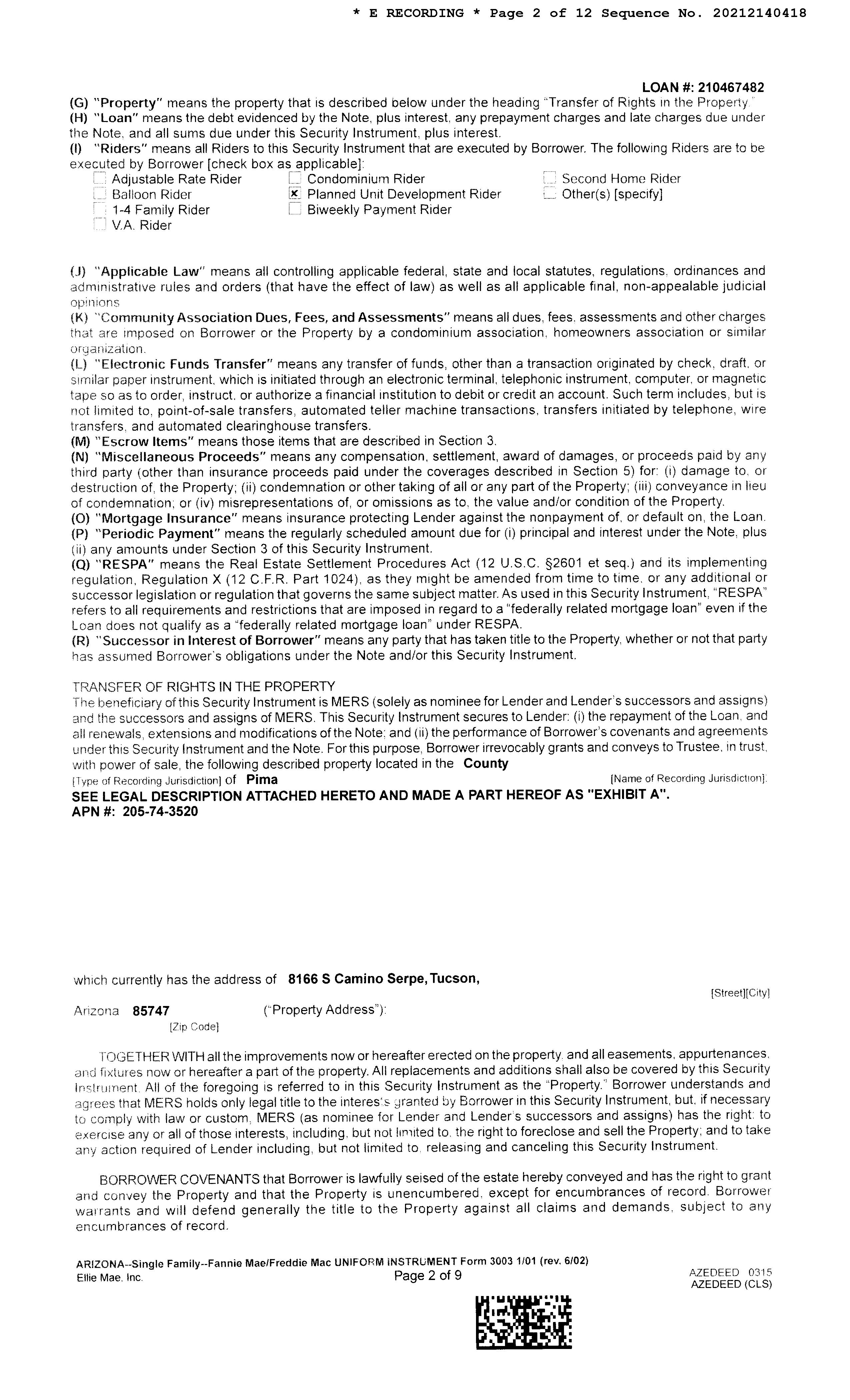 Recording/Sale Date : 12/12/2005 / 11/28/2005 1st Mtg Int. Rate/Type : 6.62% / Adjustable Int Rate Loan