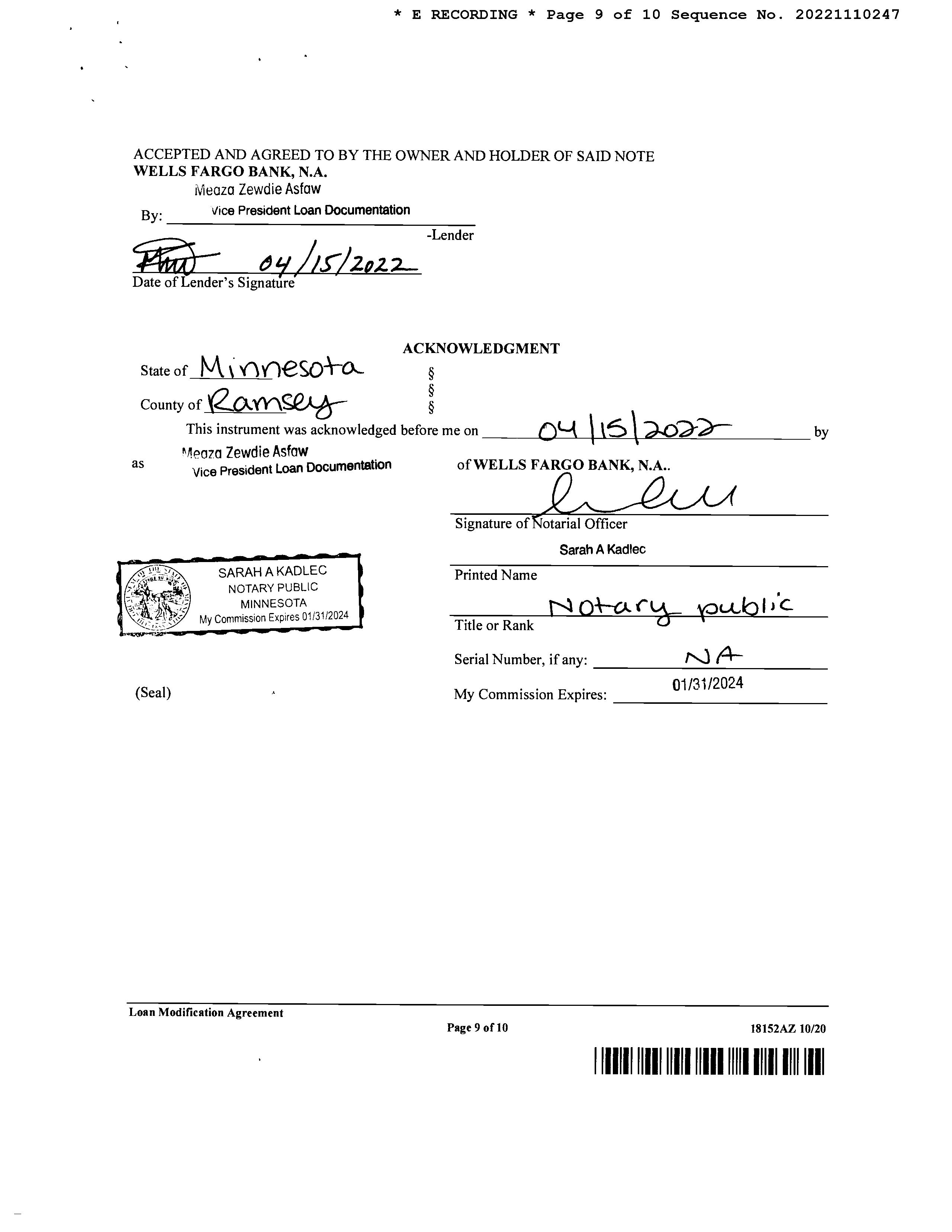 Delivers loan documents to escrow.