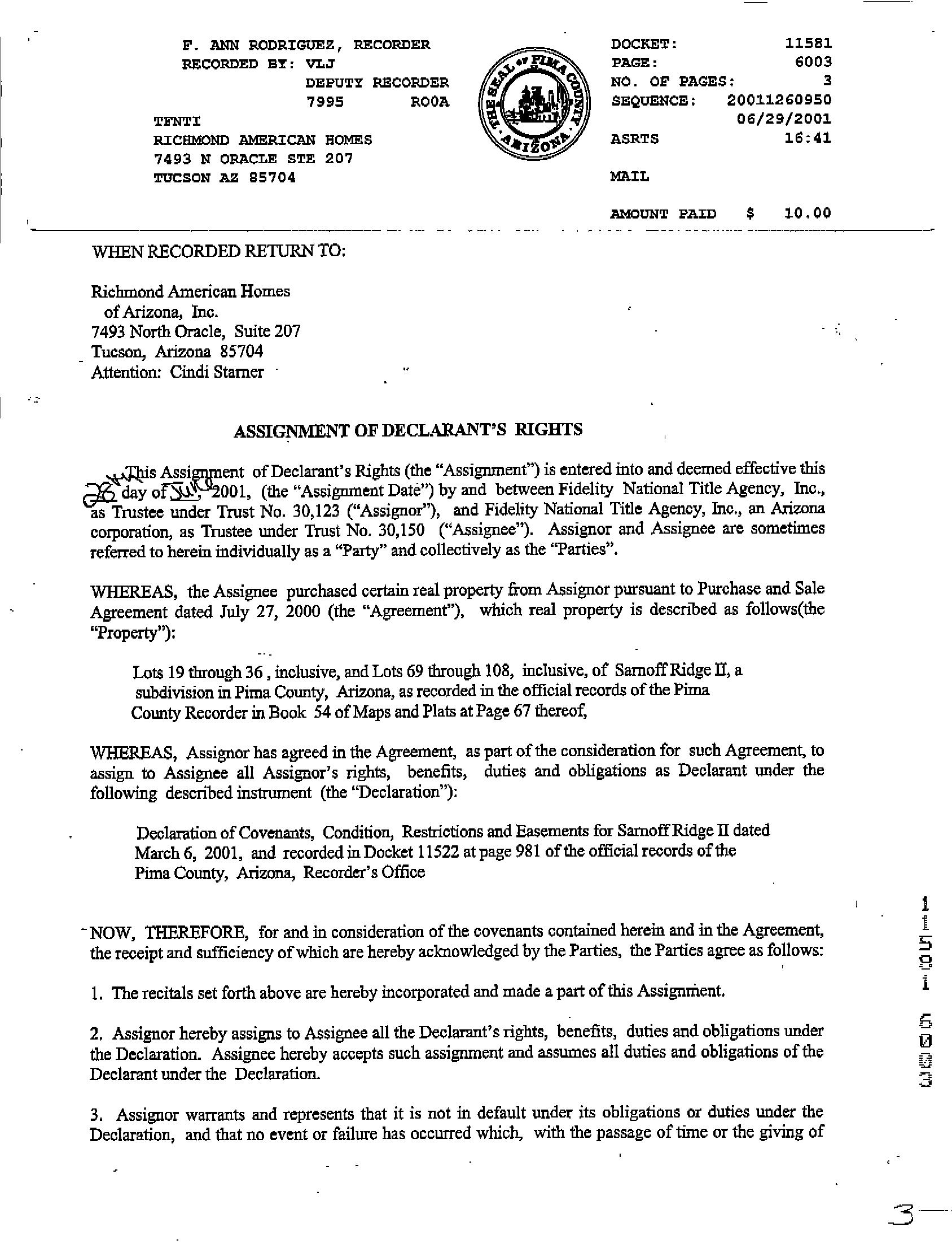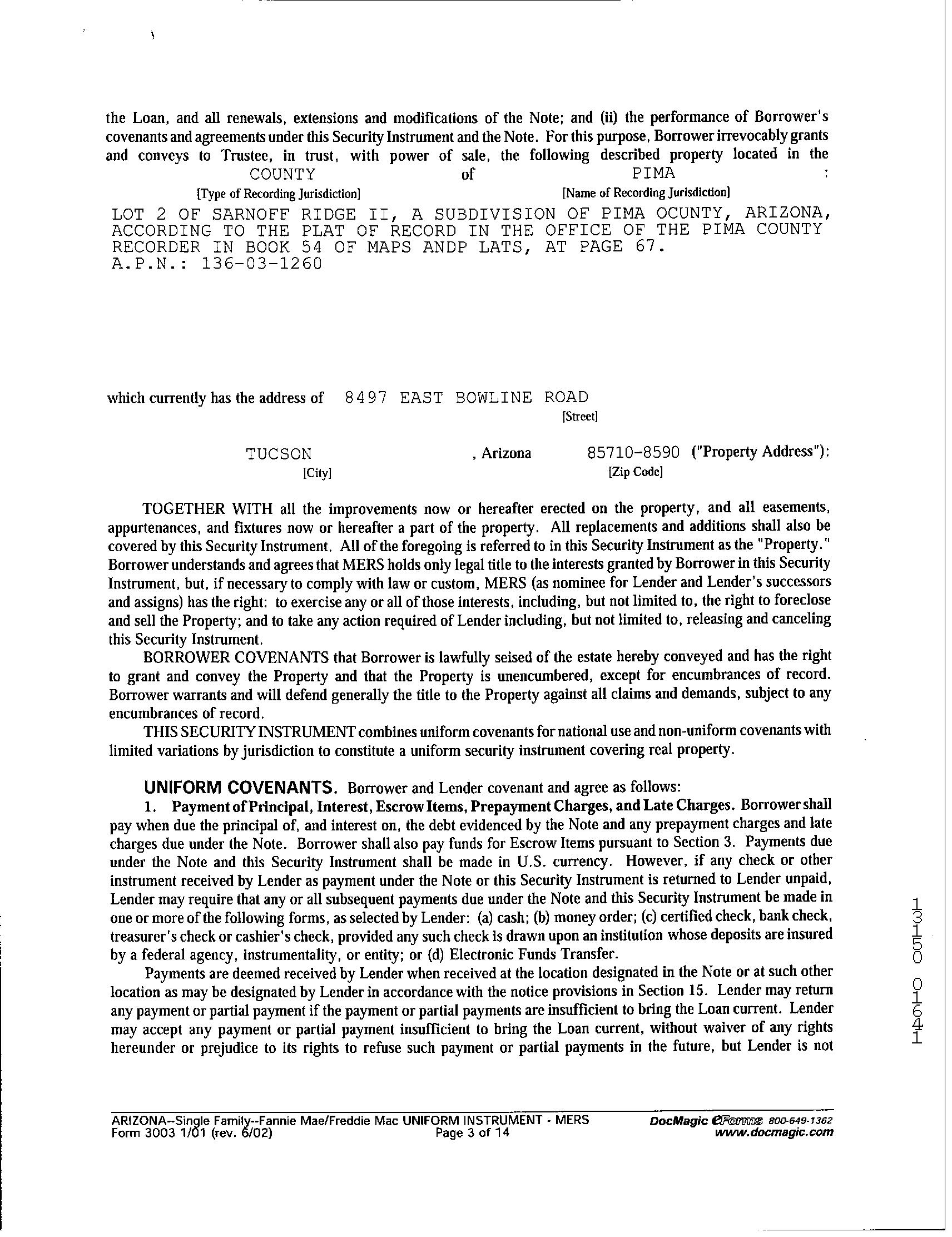 Mailing Address : 8497 E Bowline Rd, Tucson AZ 85710-8590 C065