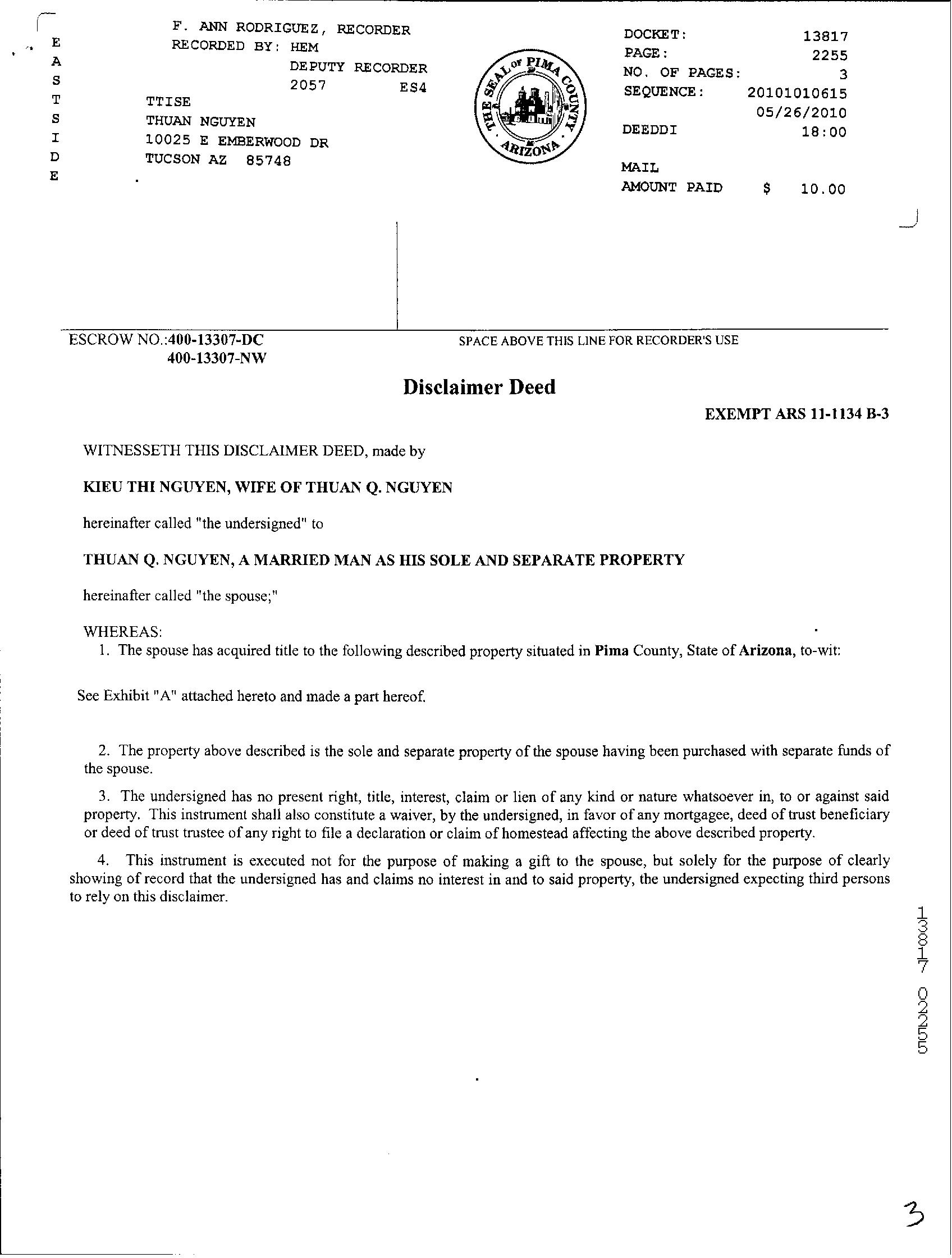 Prior Rec/Sale Date : 05/26/2010 / 05/24/2010