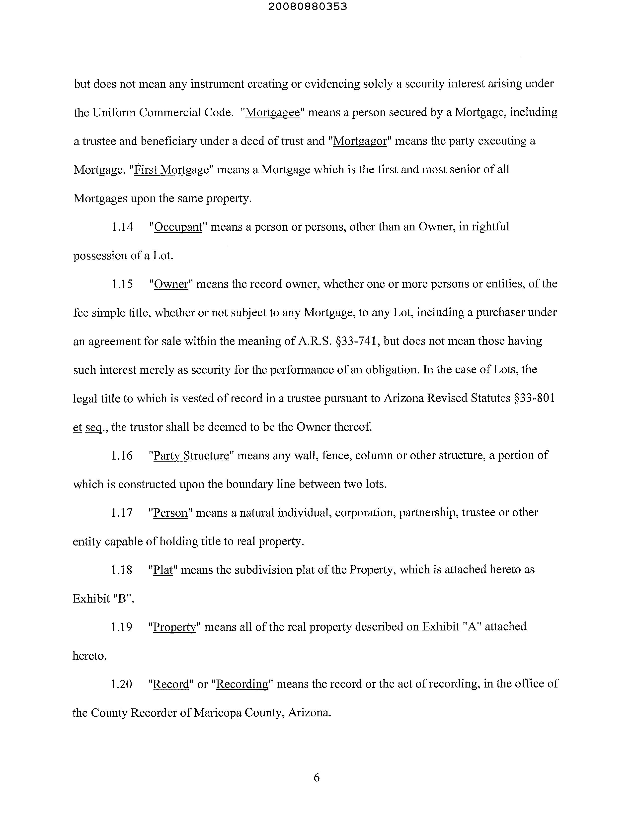 MARICOPA, AZ Document:RES AMD 2008.880353 Page:6 of 45 Printed on:1/19/2023 2:36 PM Branch :FC0 User :JSTI