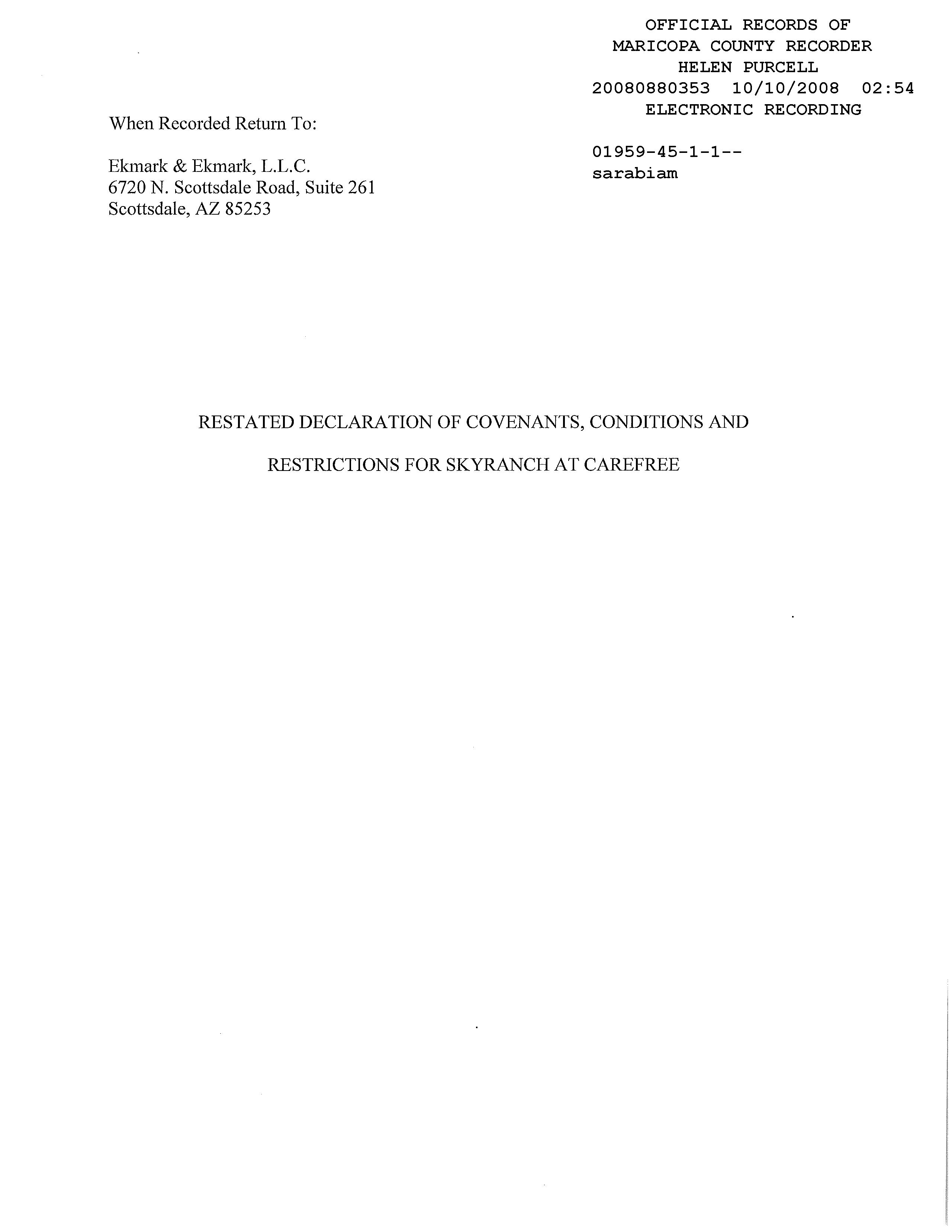 MARICOPA, AZ Document:RES AMD 2008.880353 Page:1 of 45 Printed on:1/19/2023 2:36 PM Branch :FC0 User :JSTI