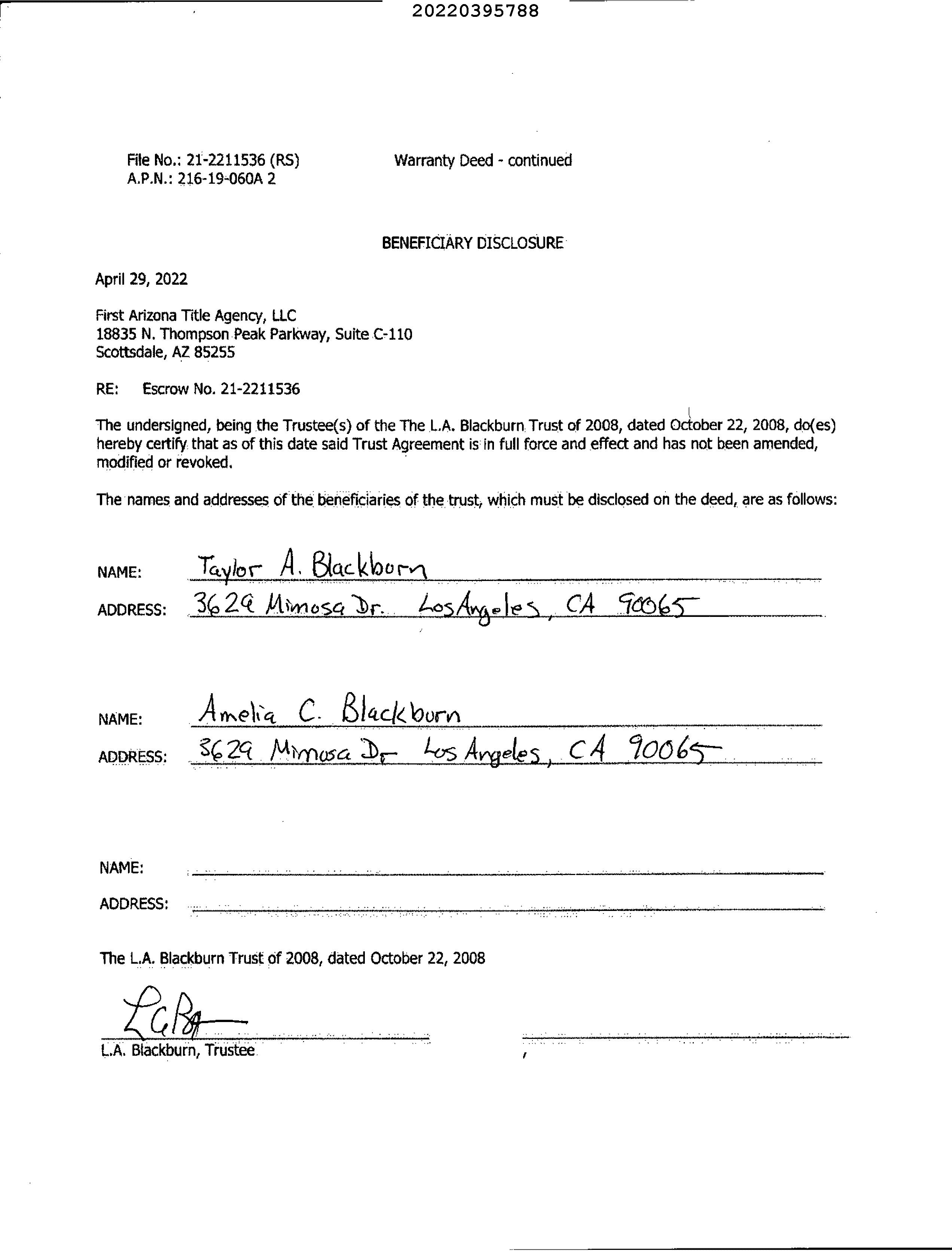 Customer Name : Lisa Mrazek Customer Company Name : First American Title Insurance Company Prepared On : 04/25/2023