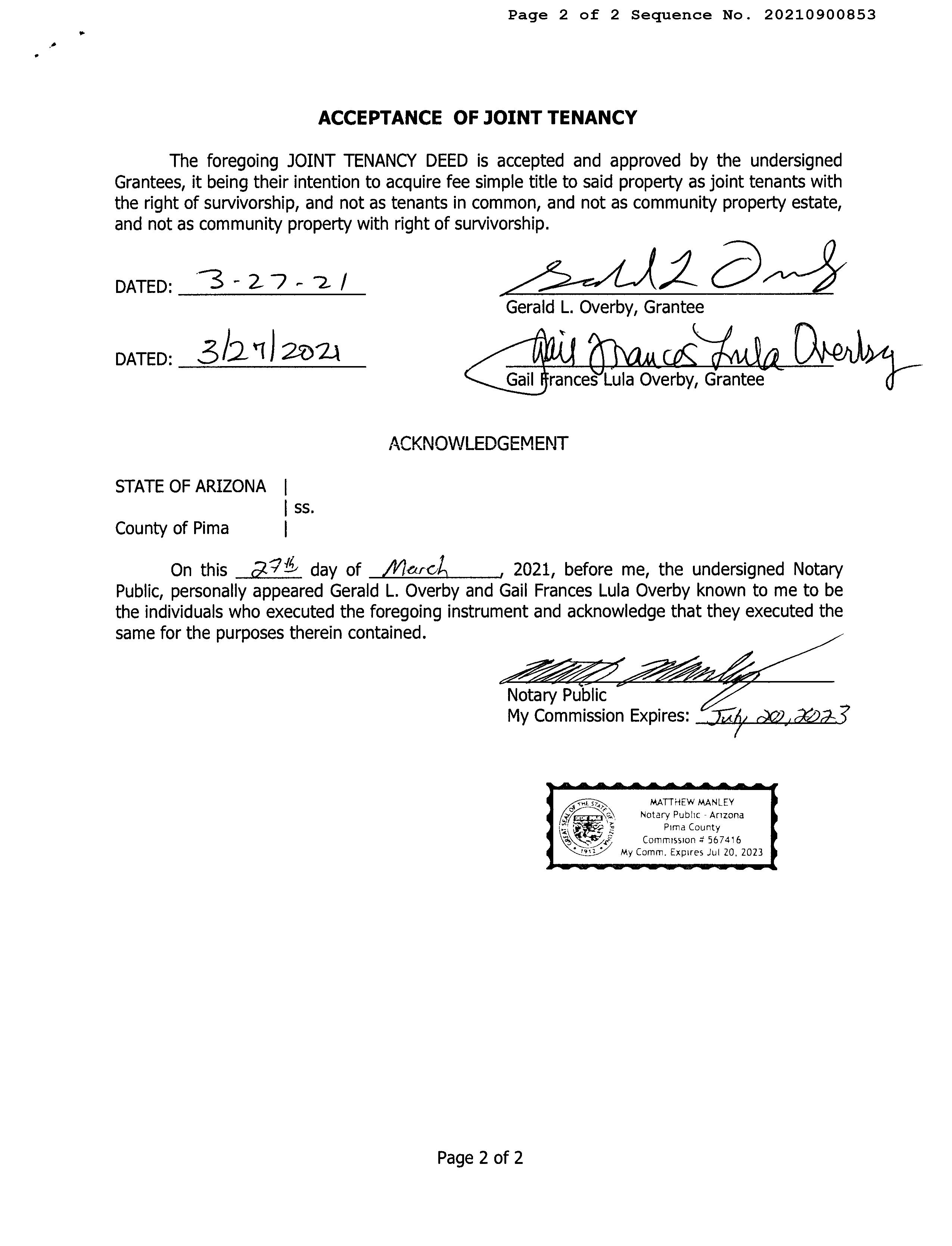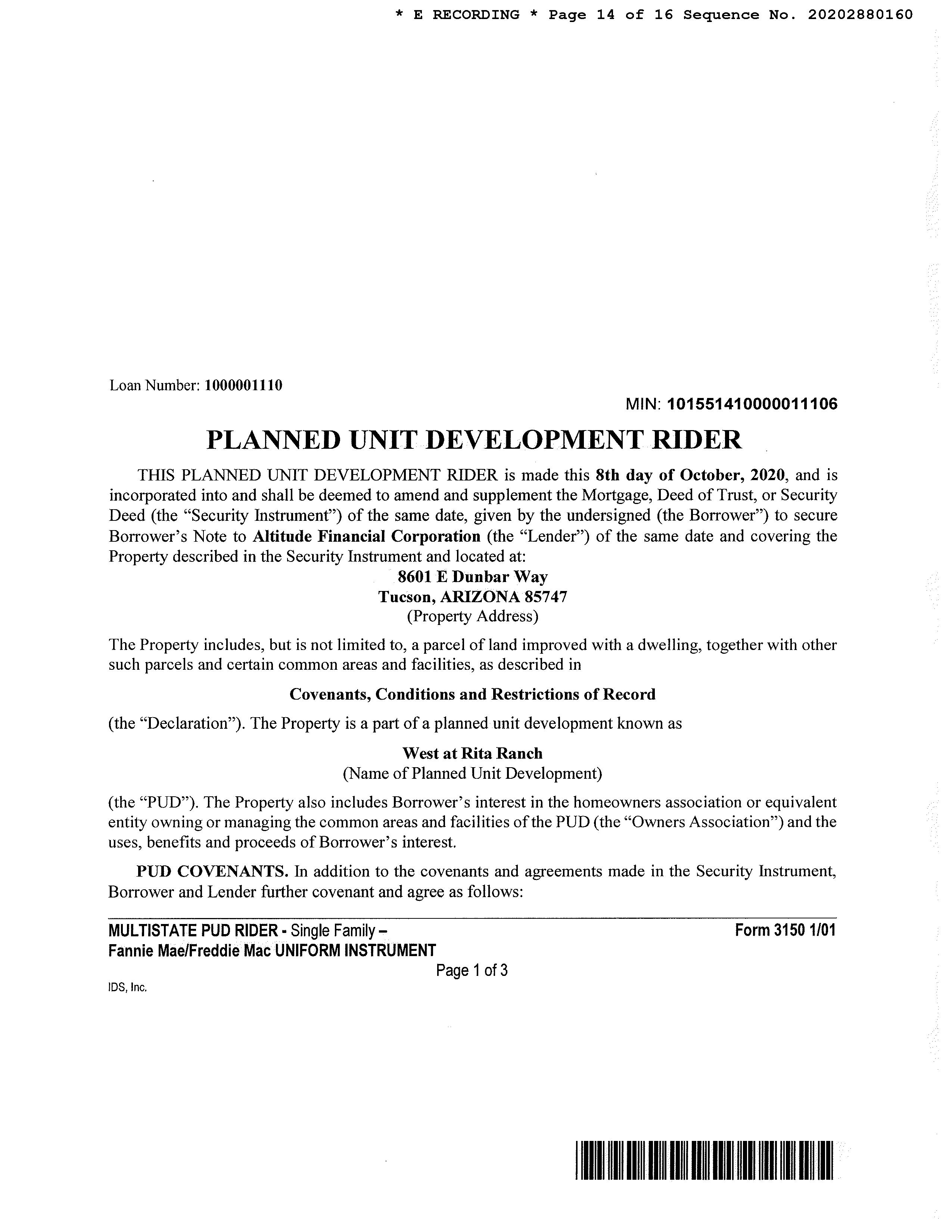 Mailing Address : 8601 E Dunbar Way, Tucson AZ 85747-5603 R098