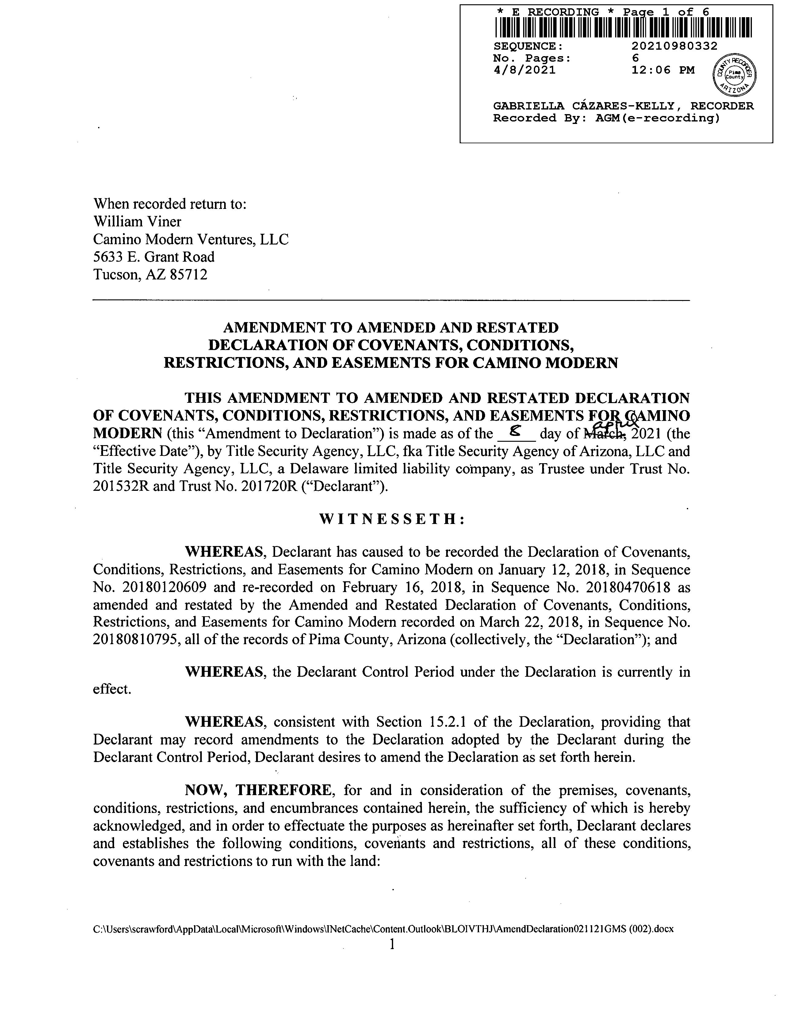 ©2021 First American Financial Corporation and/or its affiliates. All rights reserved. | NYSE: FAF 05252610821 COVENANTS, CONDITIONS & RESTRICTIONS prepared for : First American Title Insurance Company, and the operating divisions thereof, make no express or implied warranty respecting the information presented and assume no responsibility for errors or omissions. First American, the eagle logo, First American Title, and firstam.com are registered trademarks or trademarks of First American Financial Corporation and/or its affiliates.