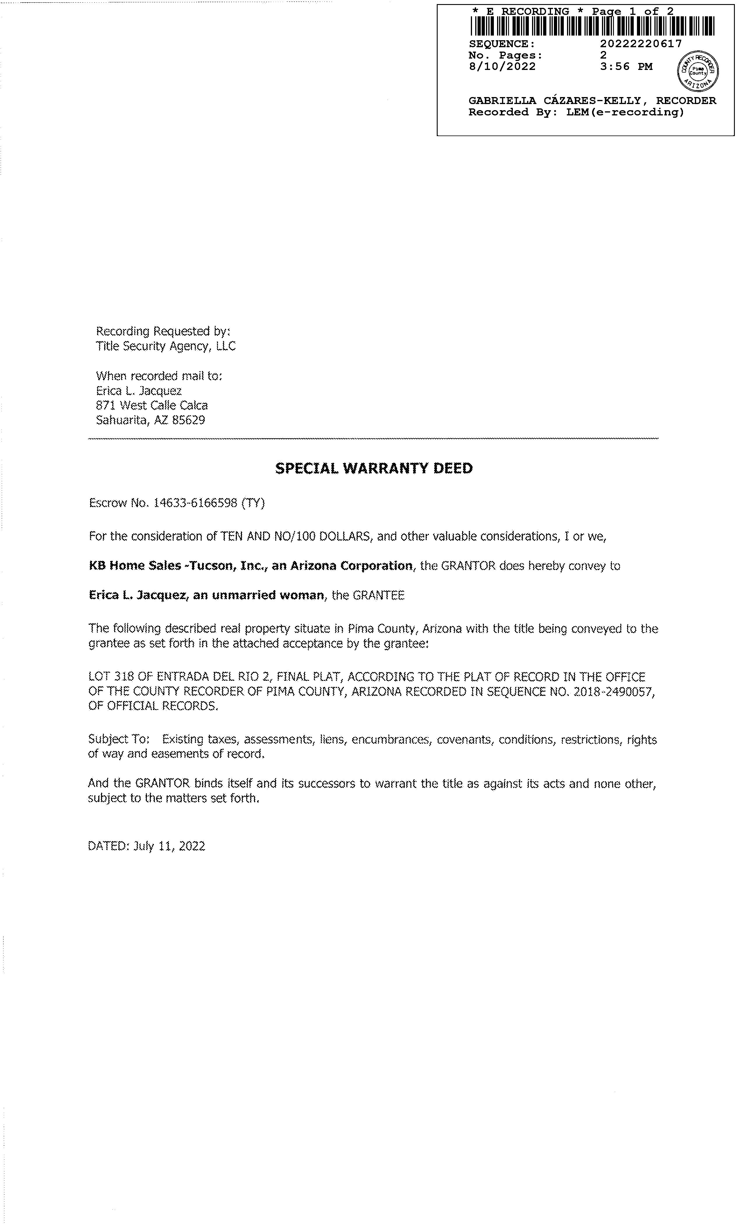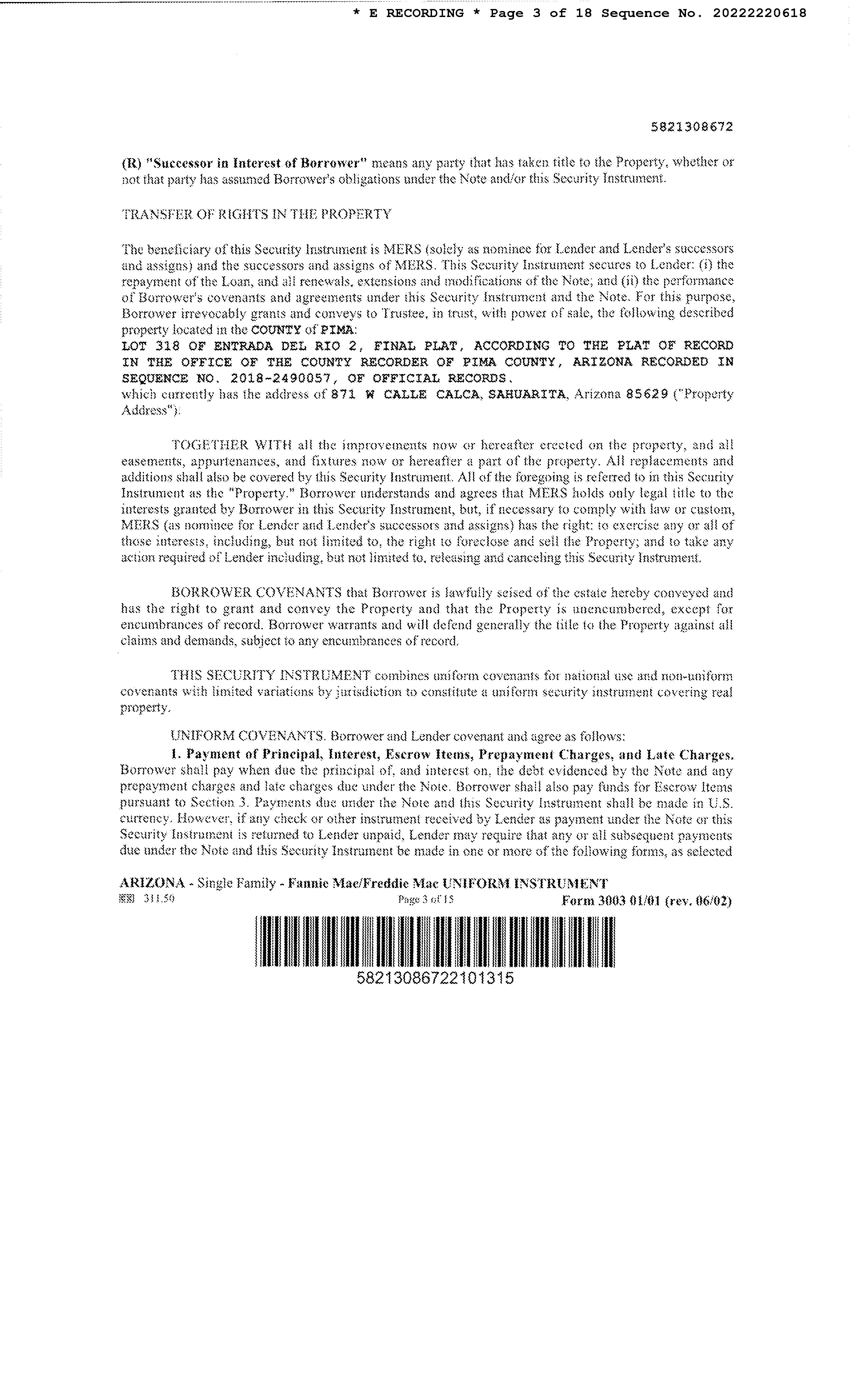 Legal Description : Entrada Del Rio 2 Sq20182490057 Lot 318