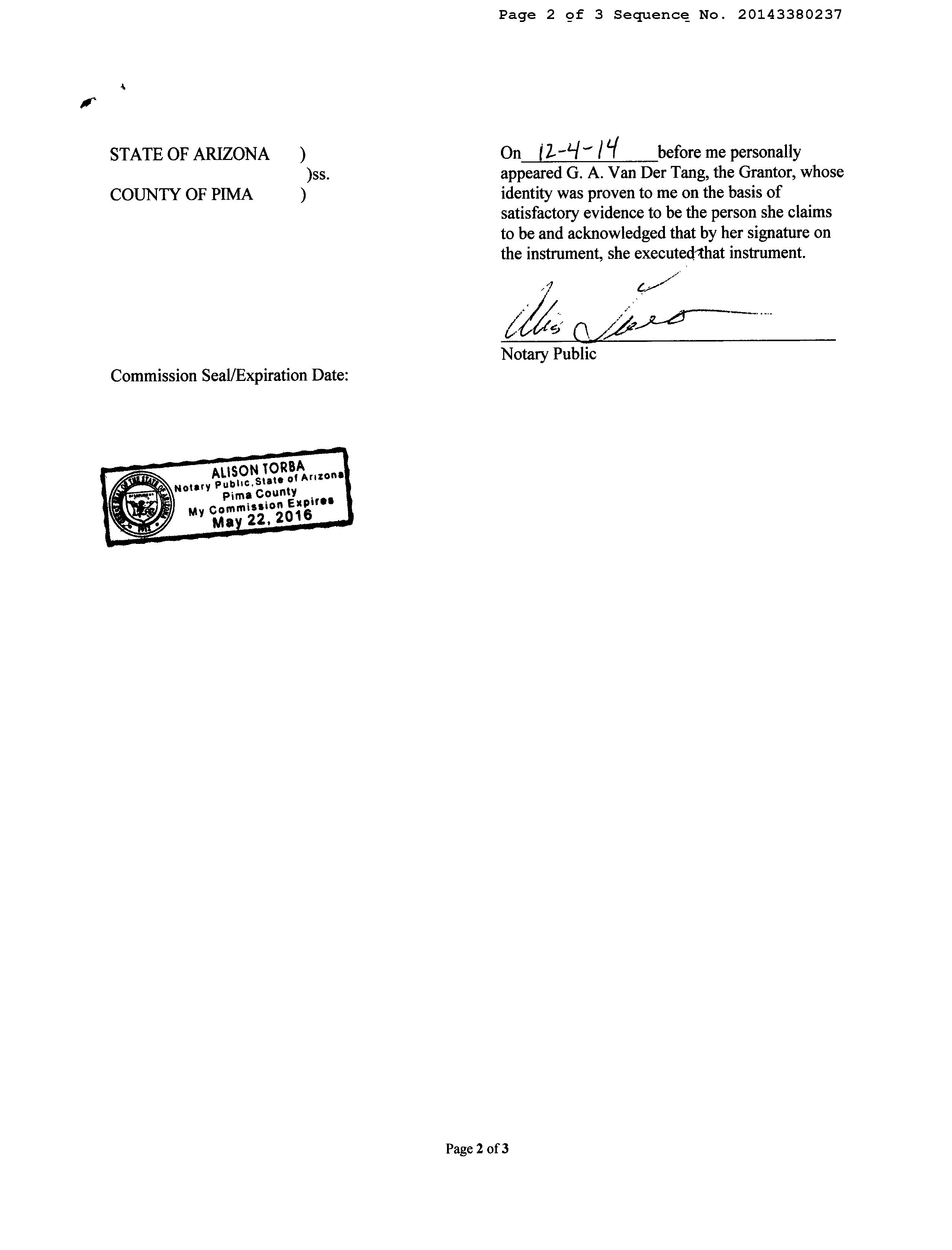 Recording/Sale Date : 12/04/2014 / 12/04/2014 Deed Type : Sw Document # : 3380237