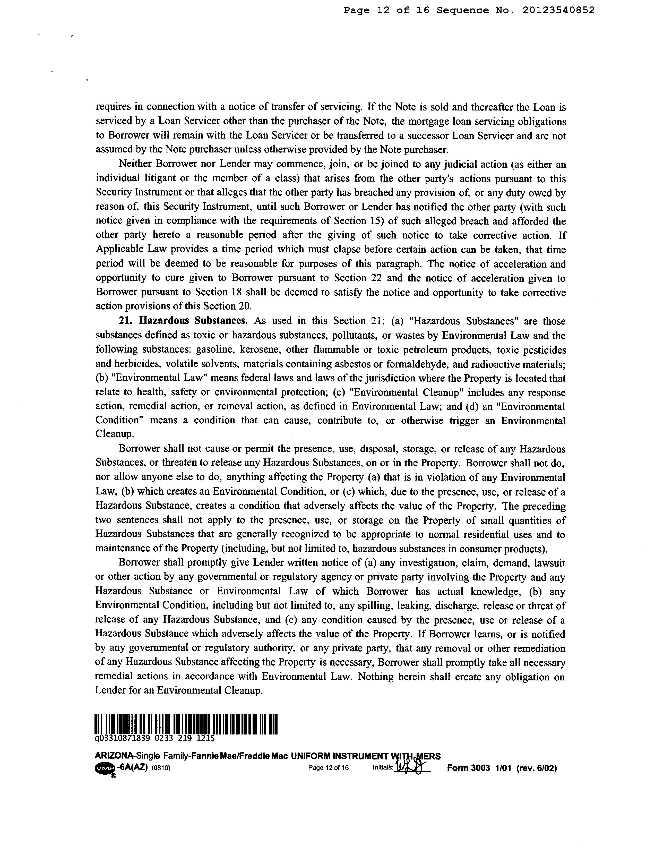 Prior 1st Mtg Rate/Type : / Adjustable Int Rate Loan