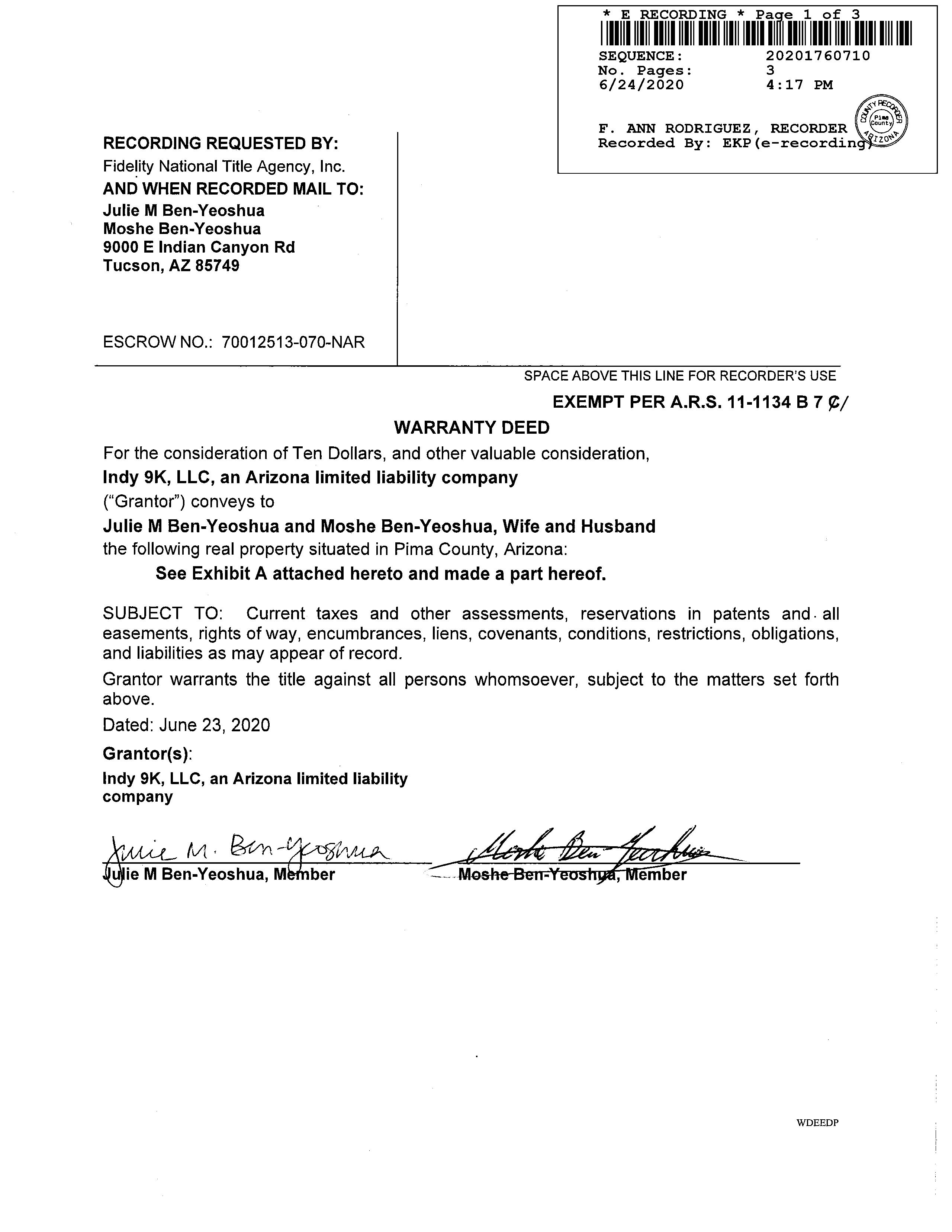 Deed Type : Warranty Deed