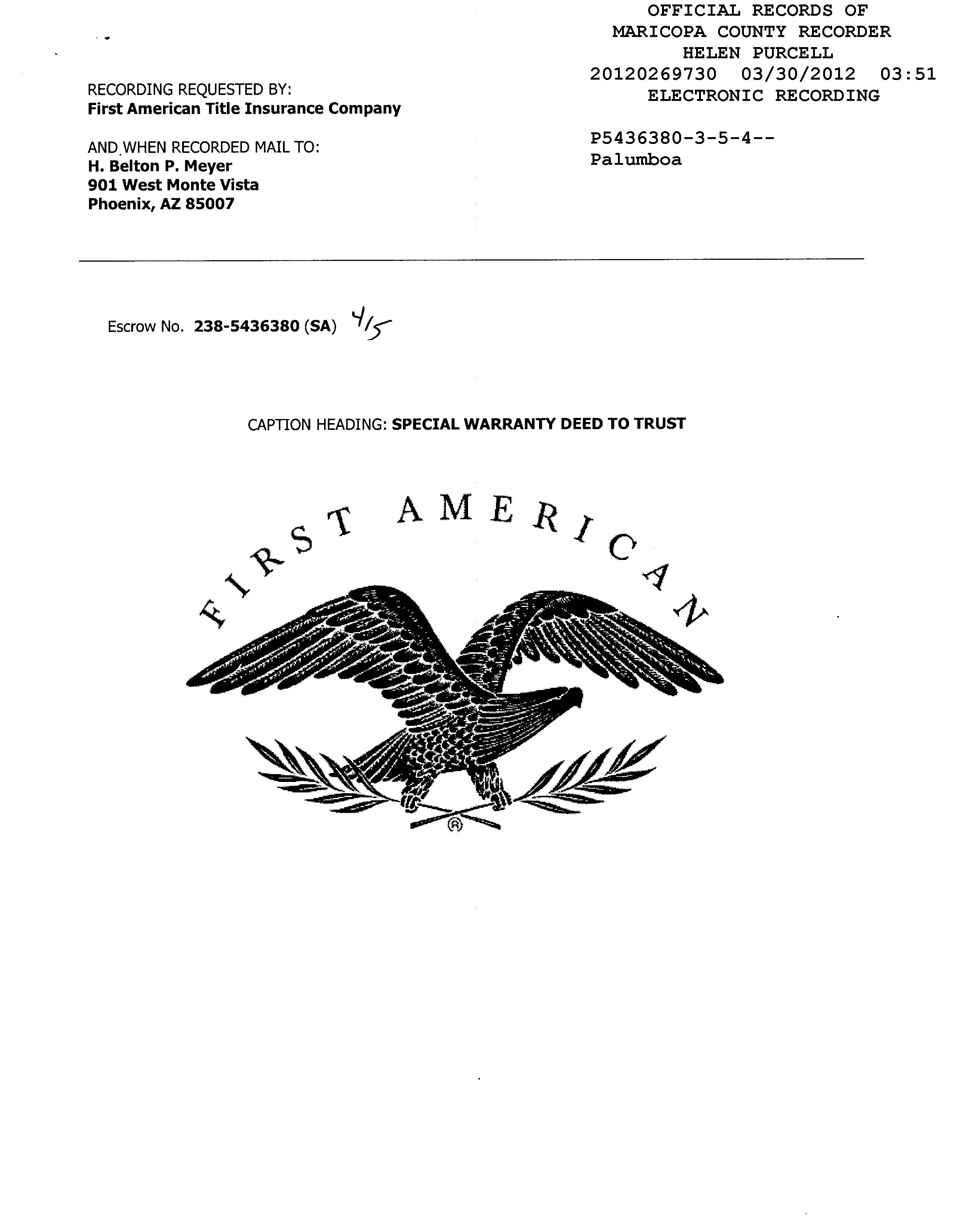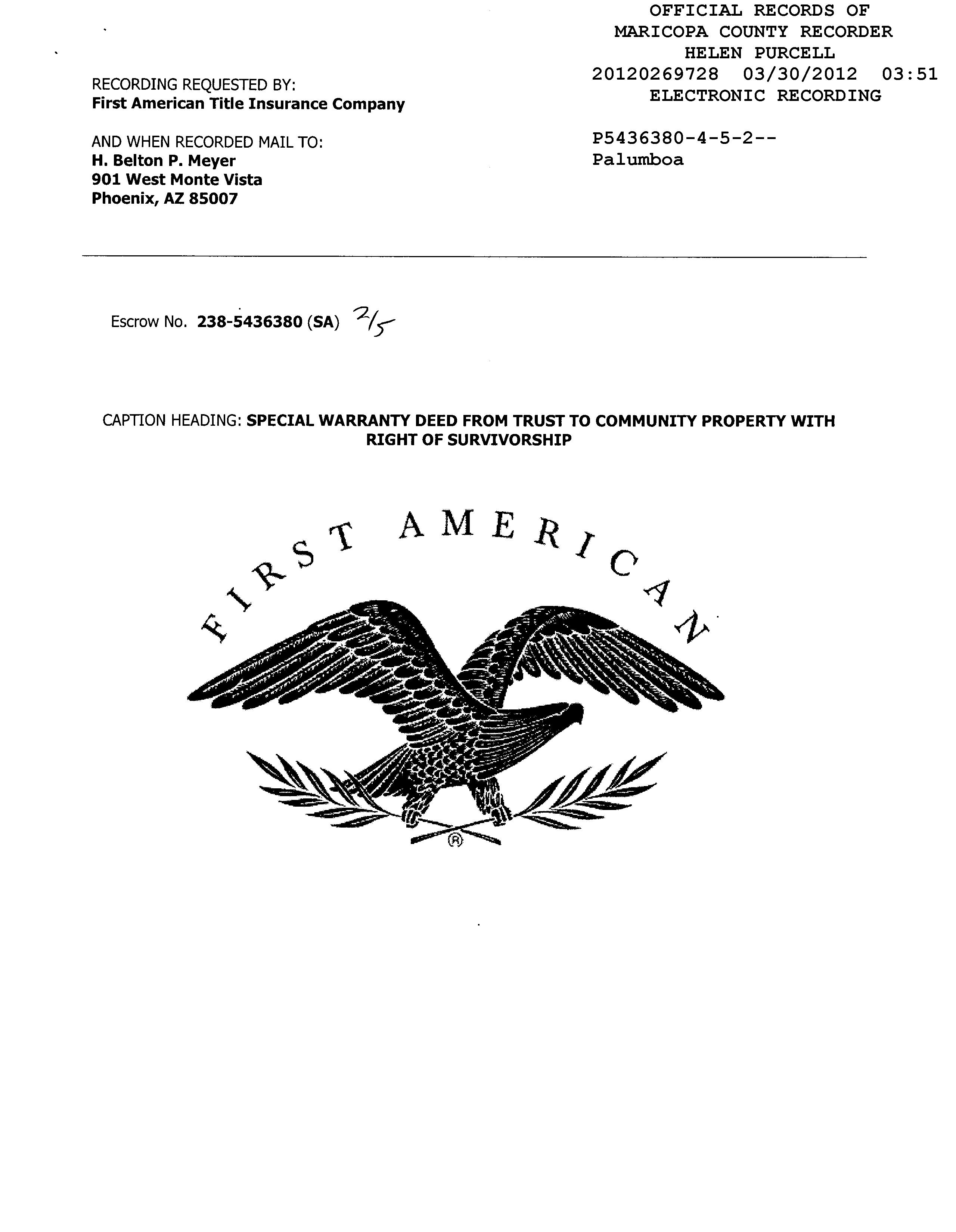 OWNER: MEYER H BELTON P/MARION A TR 2012 269730 03/30/2012 SITUS: 901 W MONTE VISTA RD PHOENIX