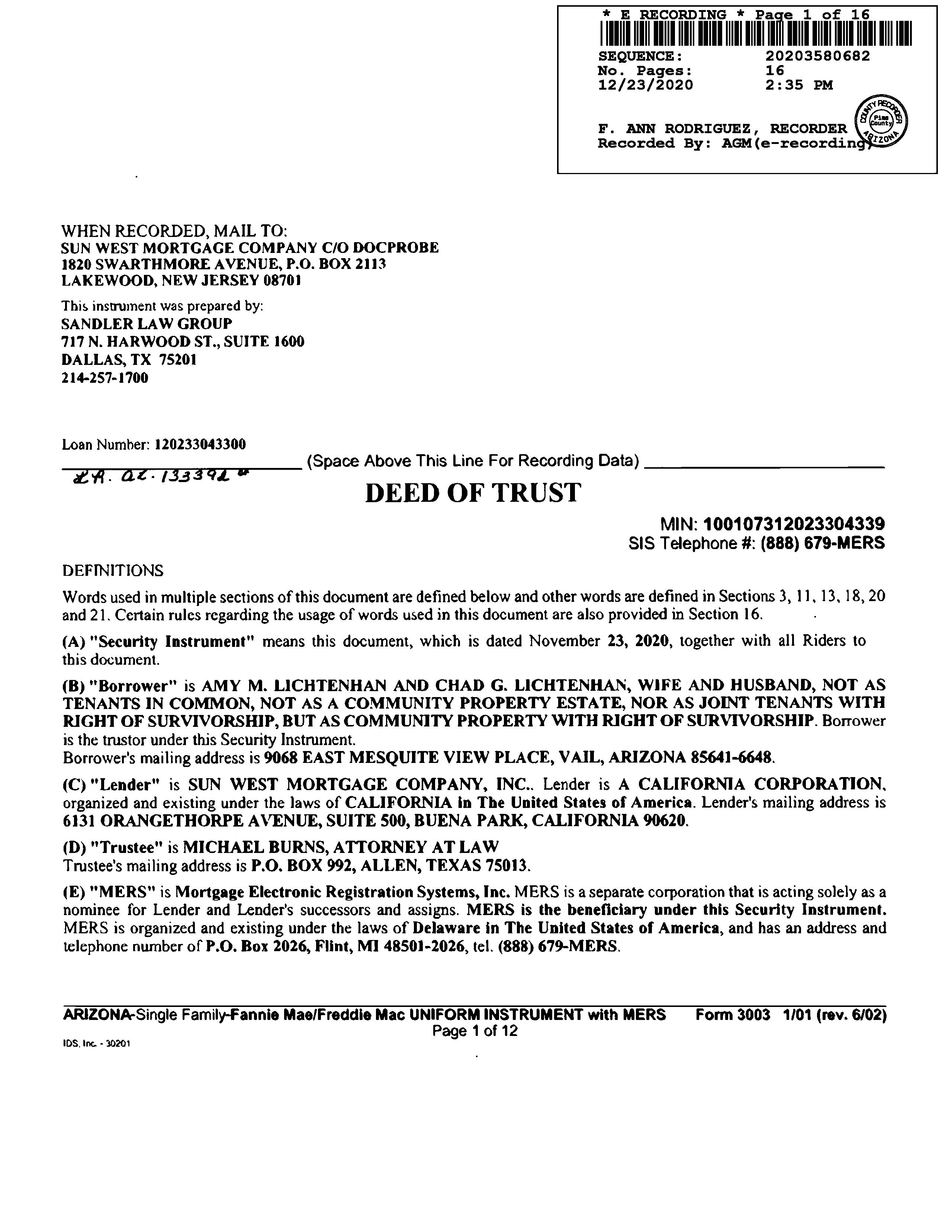 Owner Name: Lichtenhan Amy M /Lichtenhan Chad G