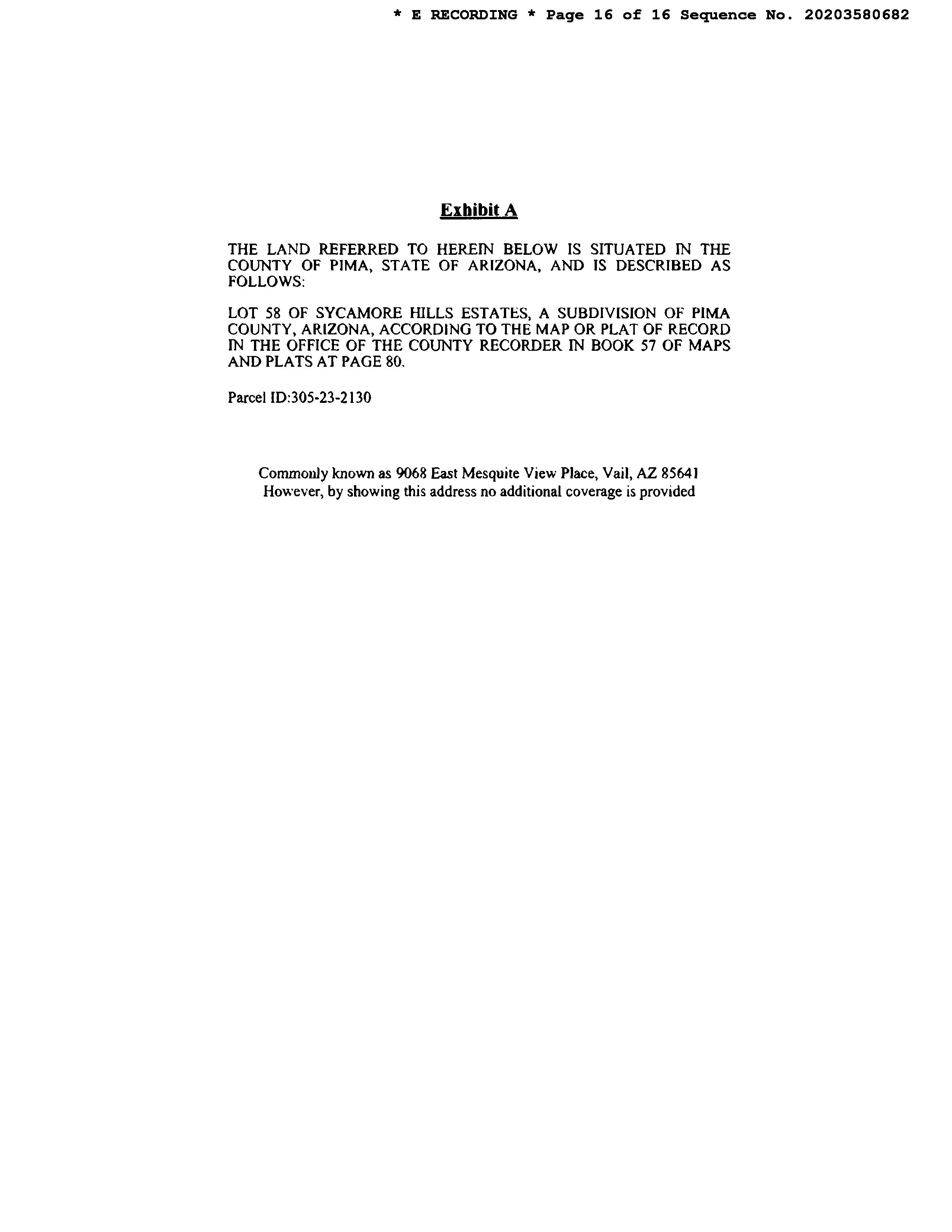 Subject Property : 9068 E Mesquite View Pl Vail AZ 85641