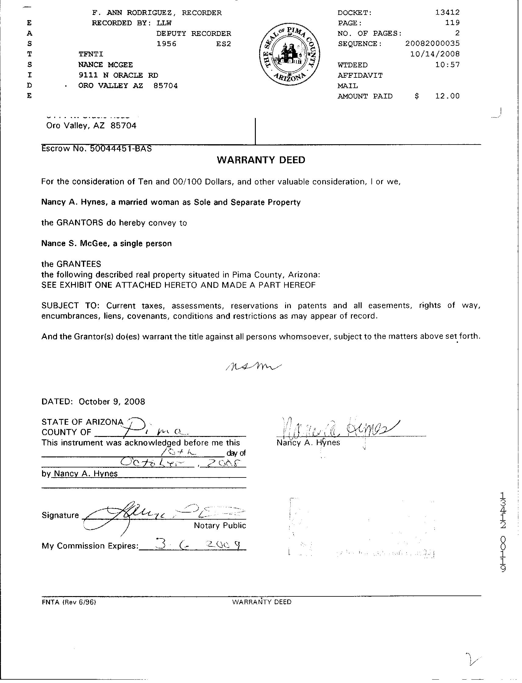Mailing Address : 9111 N Oracle Rd #162, Tucson AZ 85704-7401 C042