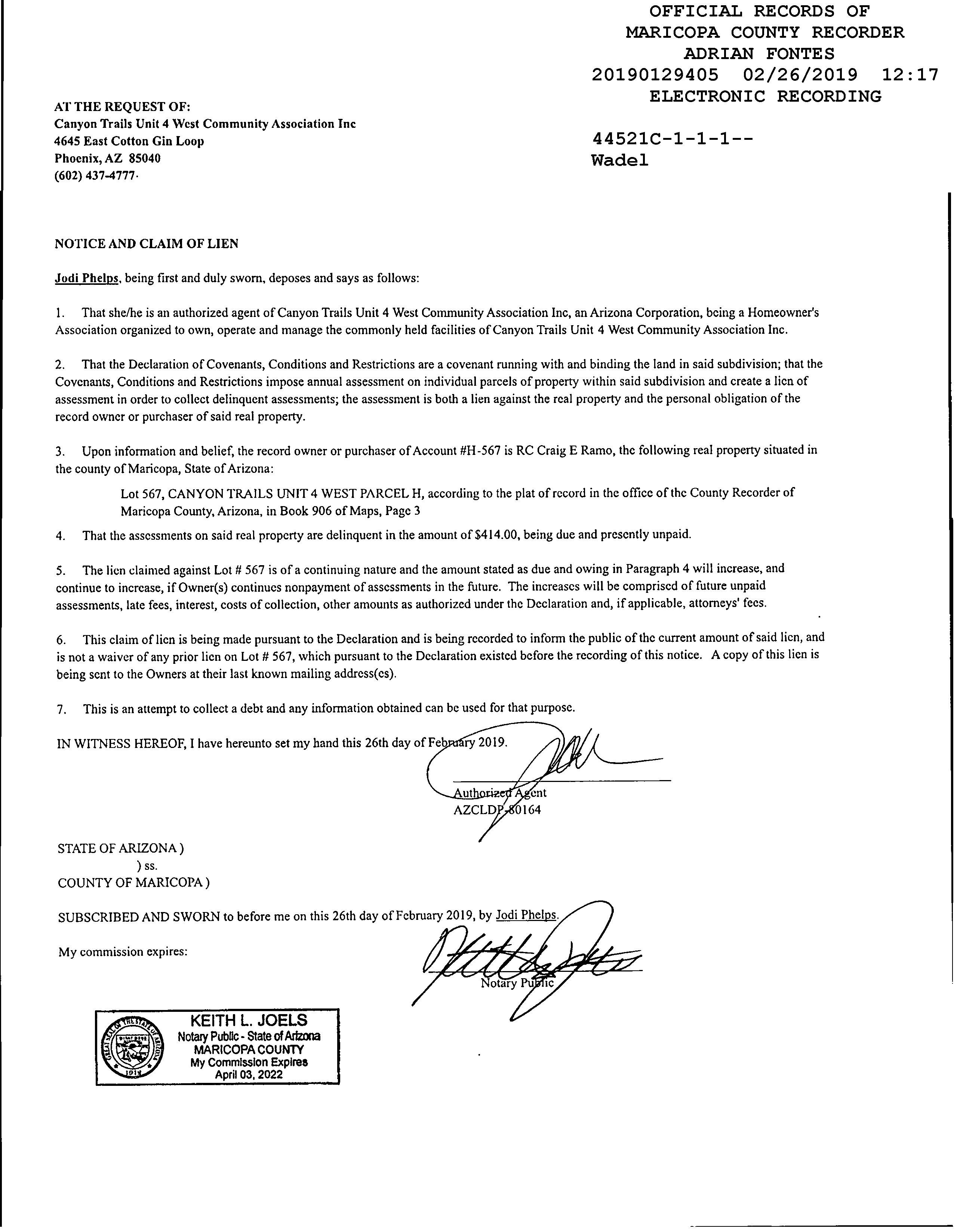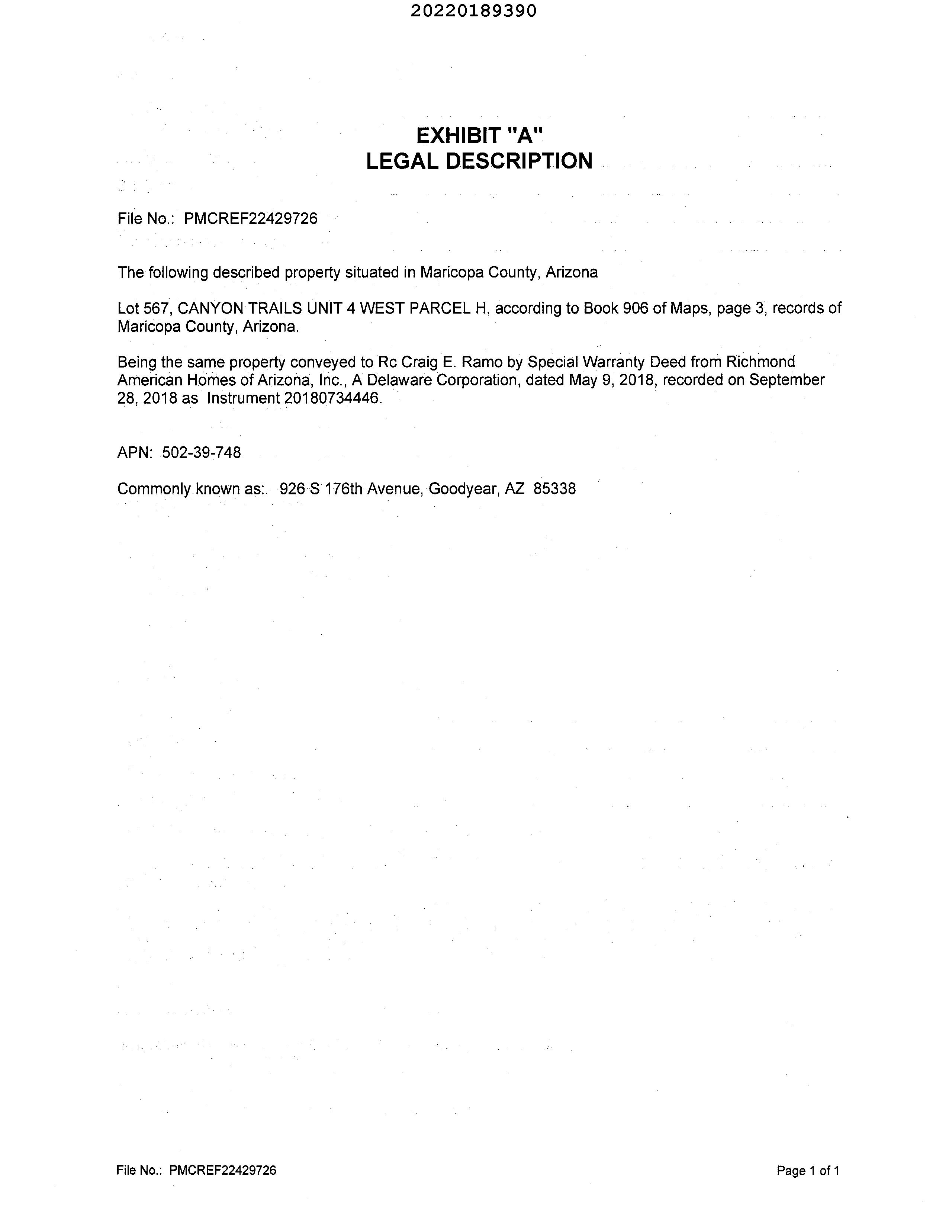 Legal Description : Lot 567 Canyon Trails Unit 4 West Parcel H Mcr 906-03