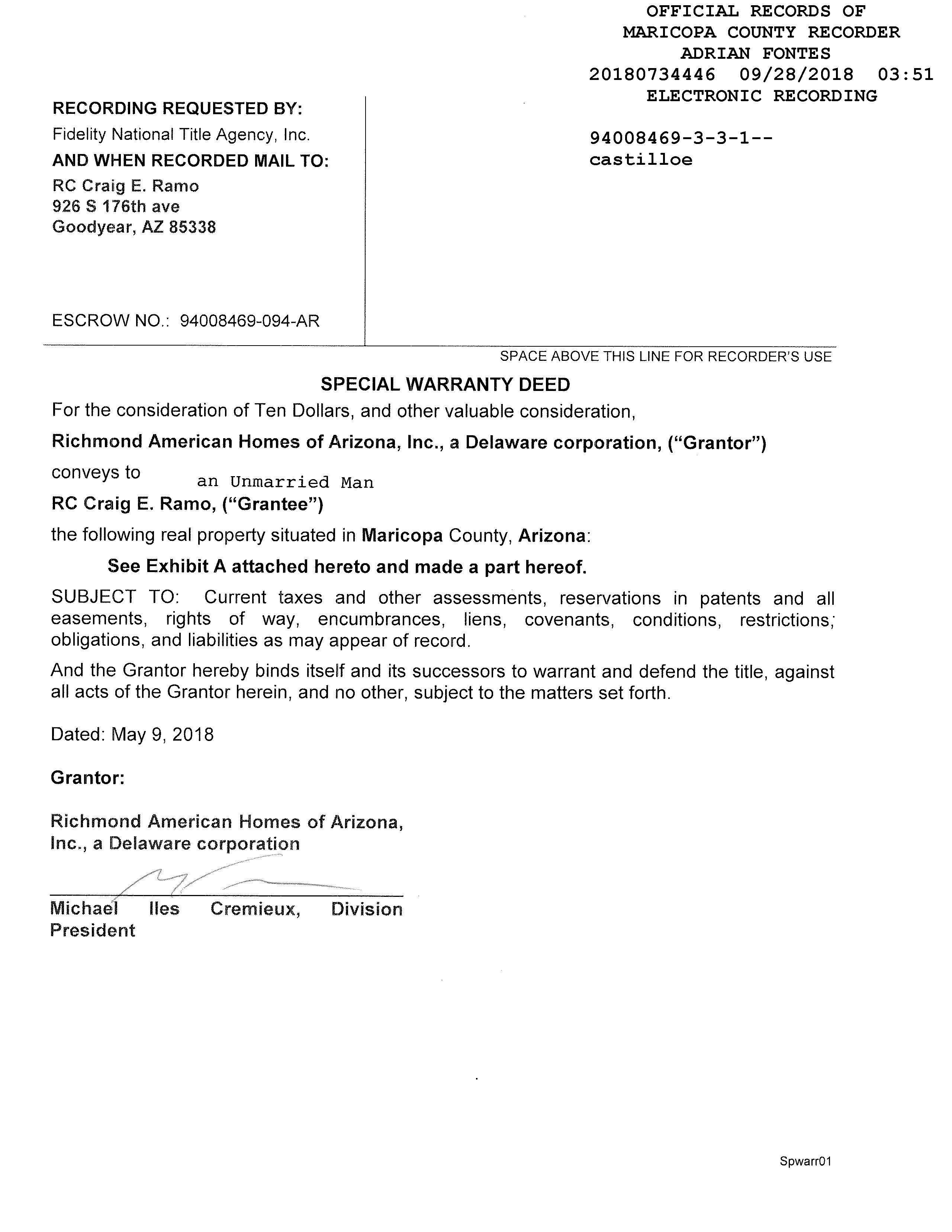 Prior Deed Type : Special Warranty Deed Customer Name : Jeremiah Stiffler Customer Company Name : First American Prepared On : 07/30/2024