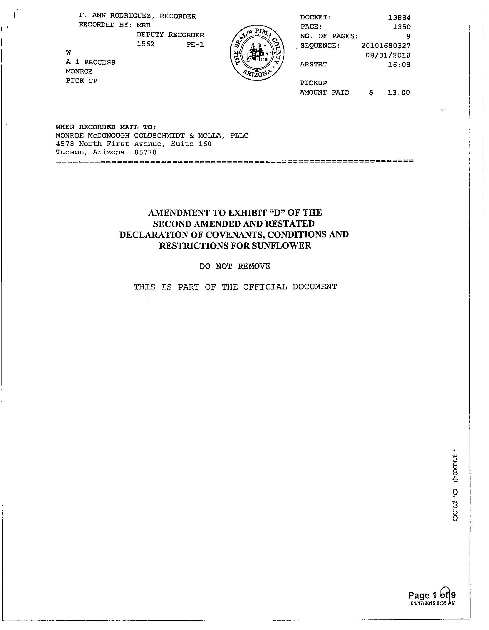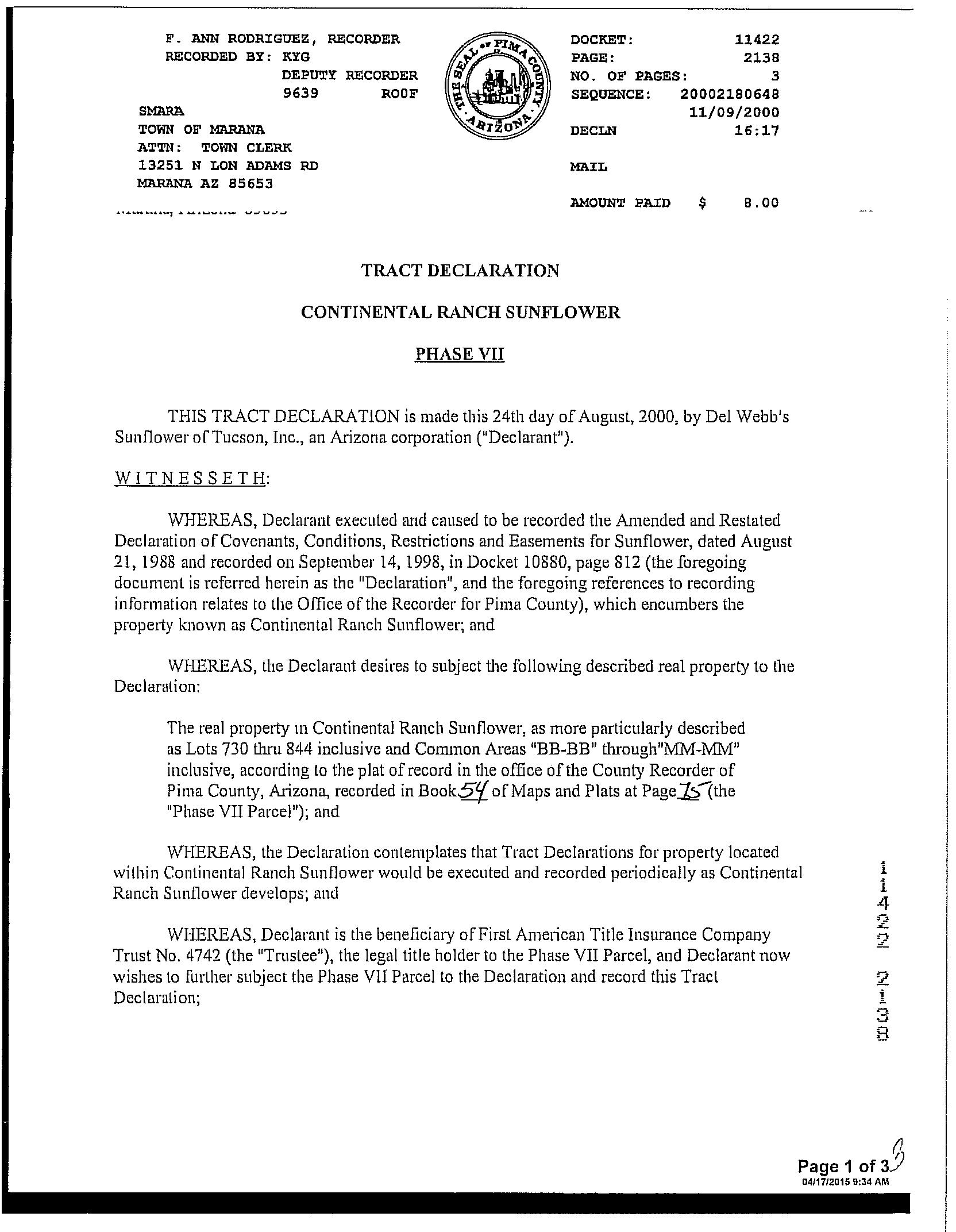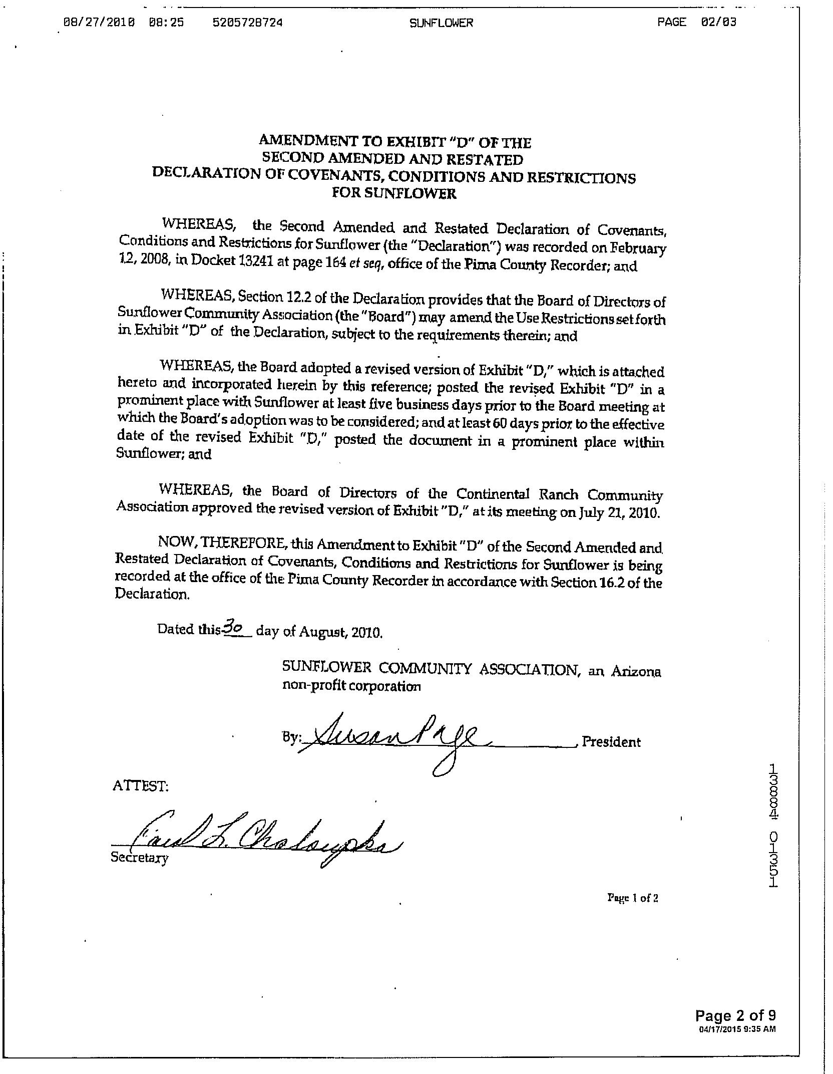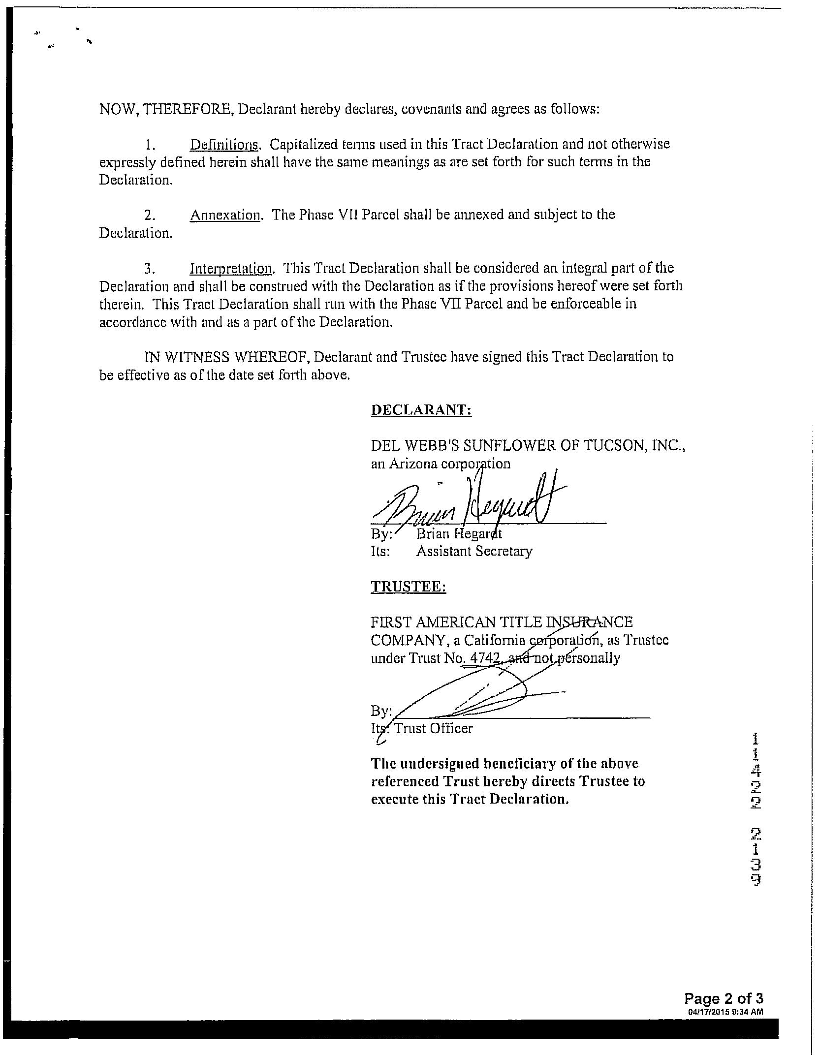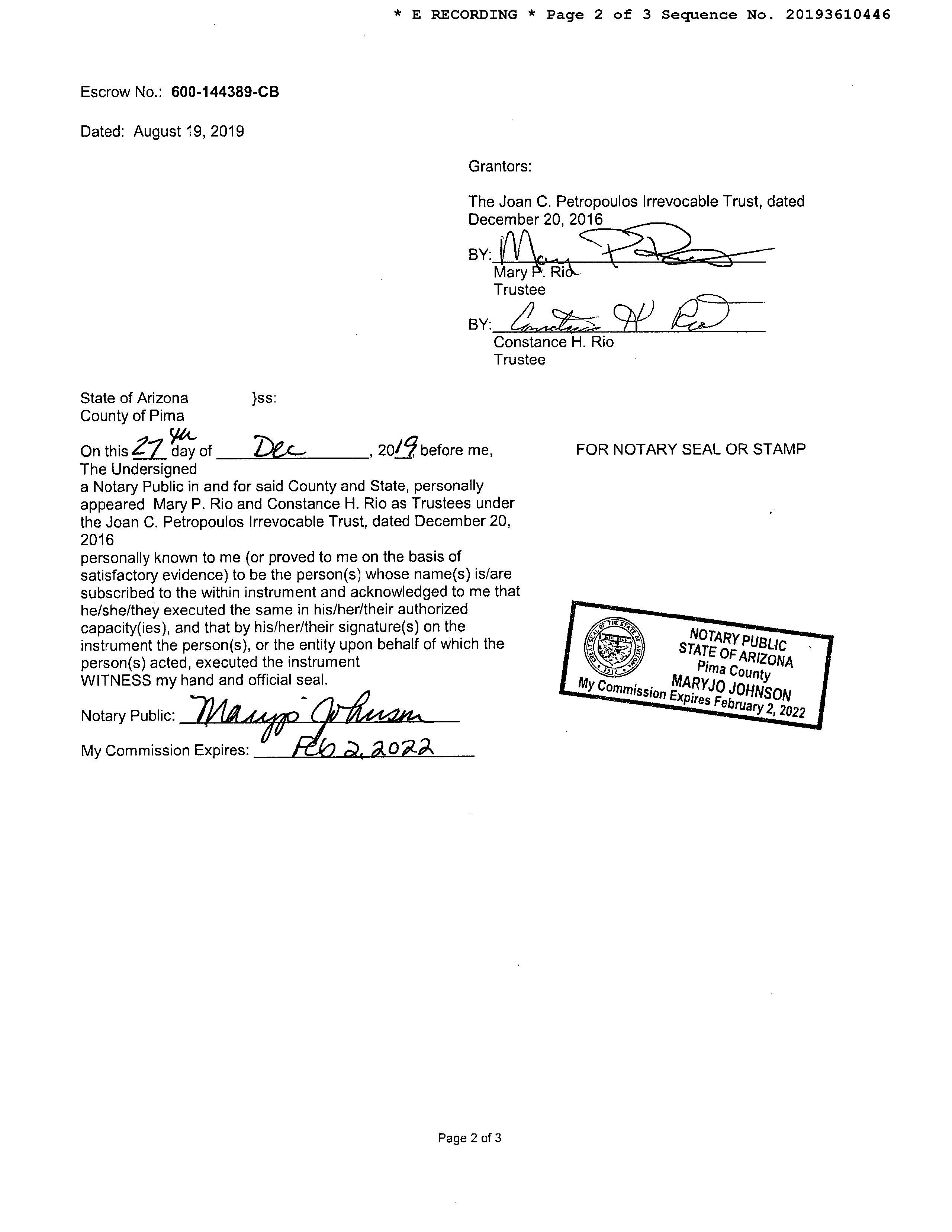 #20 9275 N Whispering Shadows Way Tucson Az 85743 Owner Name: Varon George M / APN / Alternate APN: 226-10-2000 / Deed Type: Warranty Deed Land Use: Sfr Subdivision / Tract: Continental Ranch Sunflower 03 / Lot Size: 4,725 Year Built / Eff: 2001 / Rec. Date / Price: 05/05/2022 / $327,000 Living Area: 1,156 # of units: Document #: 1250575 Bedrooms: Pool: Total Tax Value: $159,674 Bath(F/H): / Customer Name : Lisa Mrazek Customer Company Name : First American Title Insurance Company Prepared On : 09/01/2022 © 2022 CoreLogic. All rights reserved