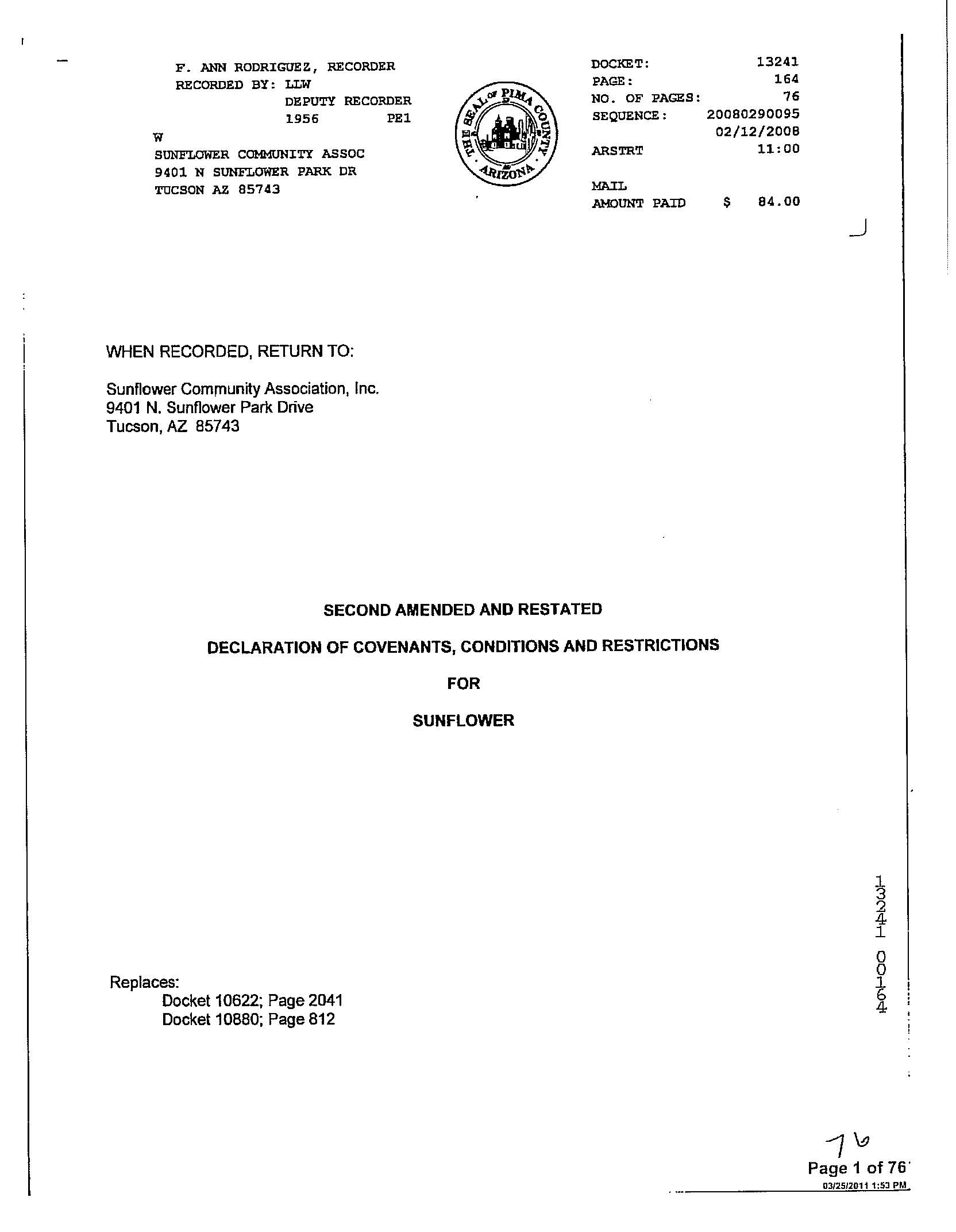 Owner Name: Mendoza Narciso / APN / Alternate APN: 226-11-4380 / Deed Type: Warranty Deed Land Use: Sfr Subdivision / Tract: Continental Ranch / Lot Size: 8,712 Year Built / Eff: 1998 / Rec. Date / Price: 08/17/2022 / $310,000 Living Area: 1,152 # of units: Document #: 2290282 Bedrooms: Pool: Total Tax Value: $157,462 Bath(F/H): / #13 7993 W Greensleeves Way Tucson Az 85743